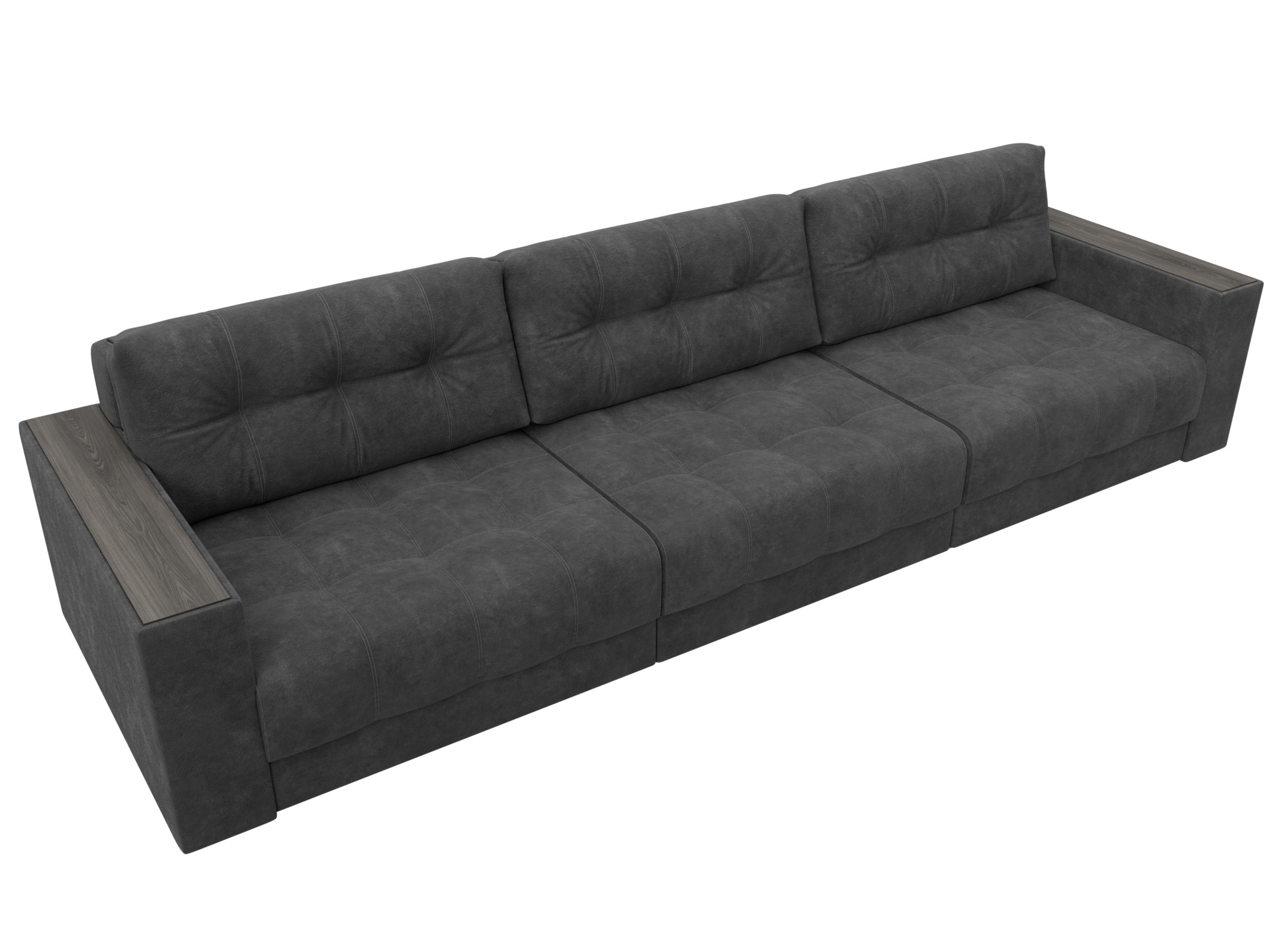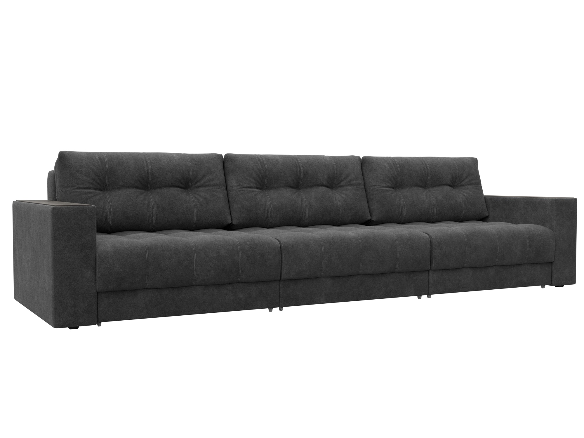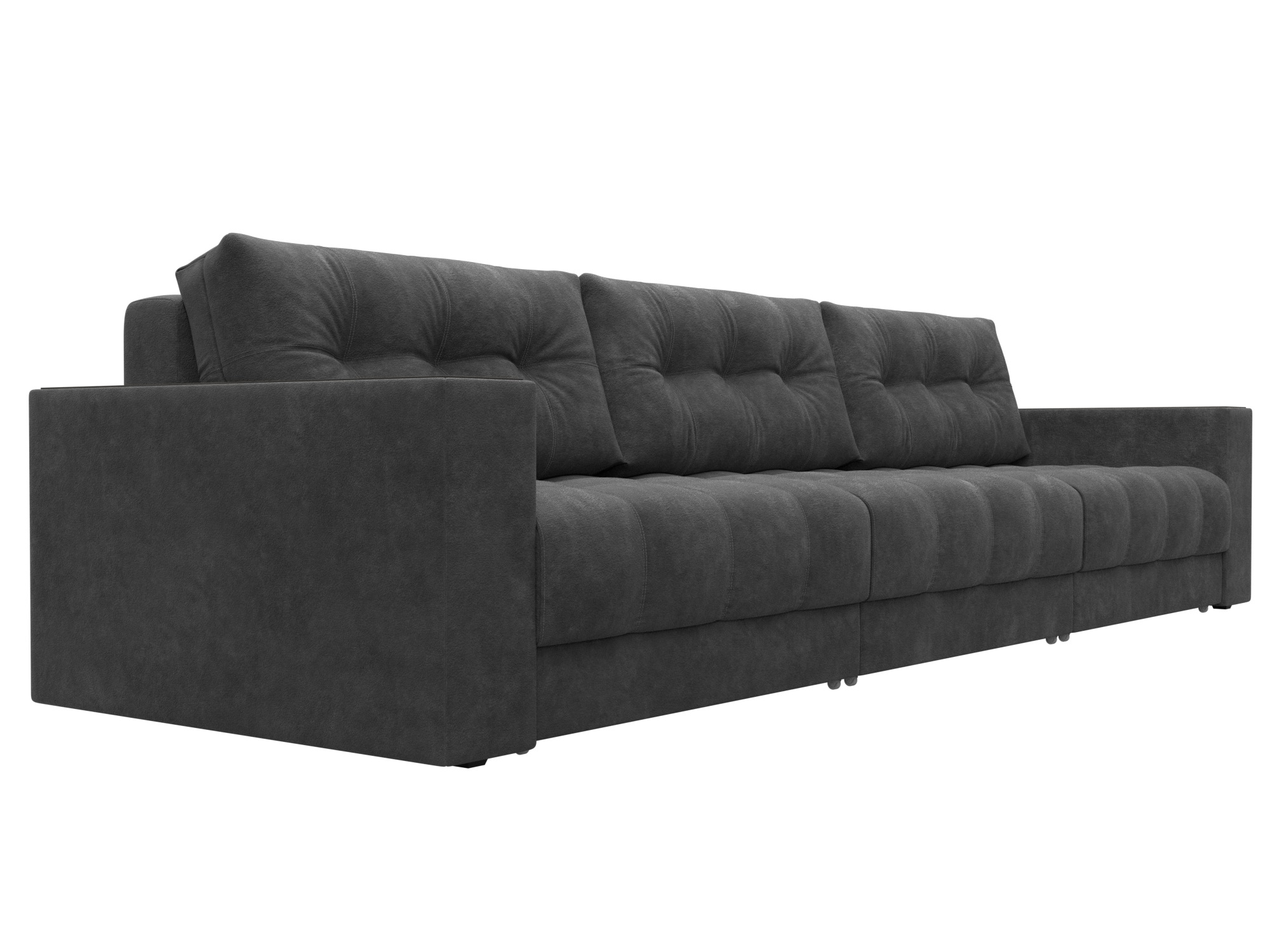 Диван прямой с декором Лига-049 НПБ Лонг, BRUT 16 темно-серый, Велюр