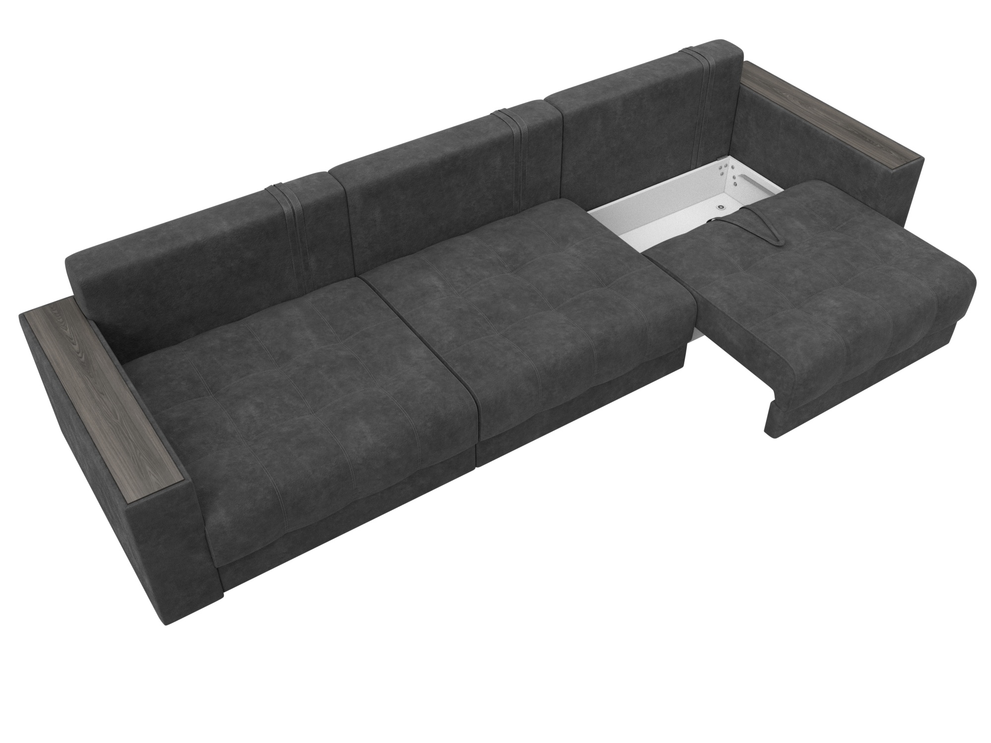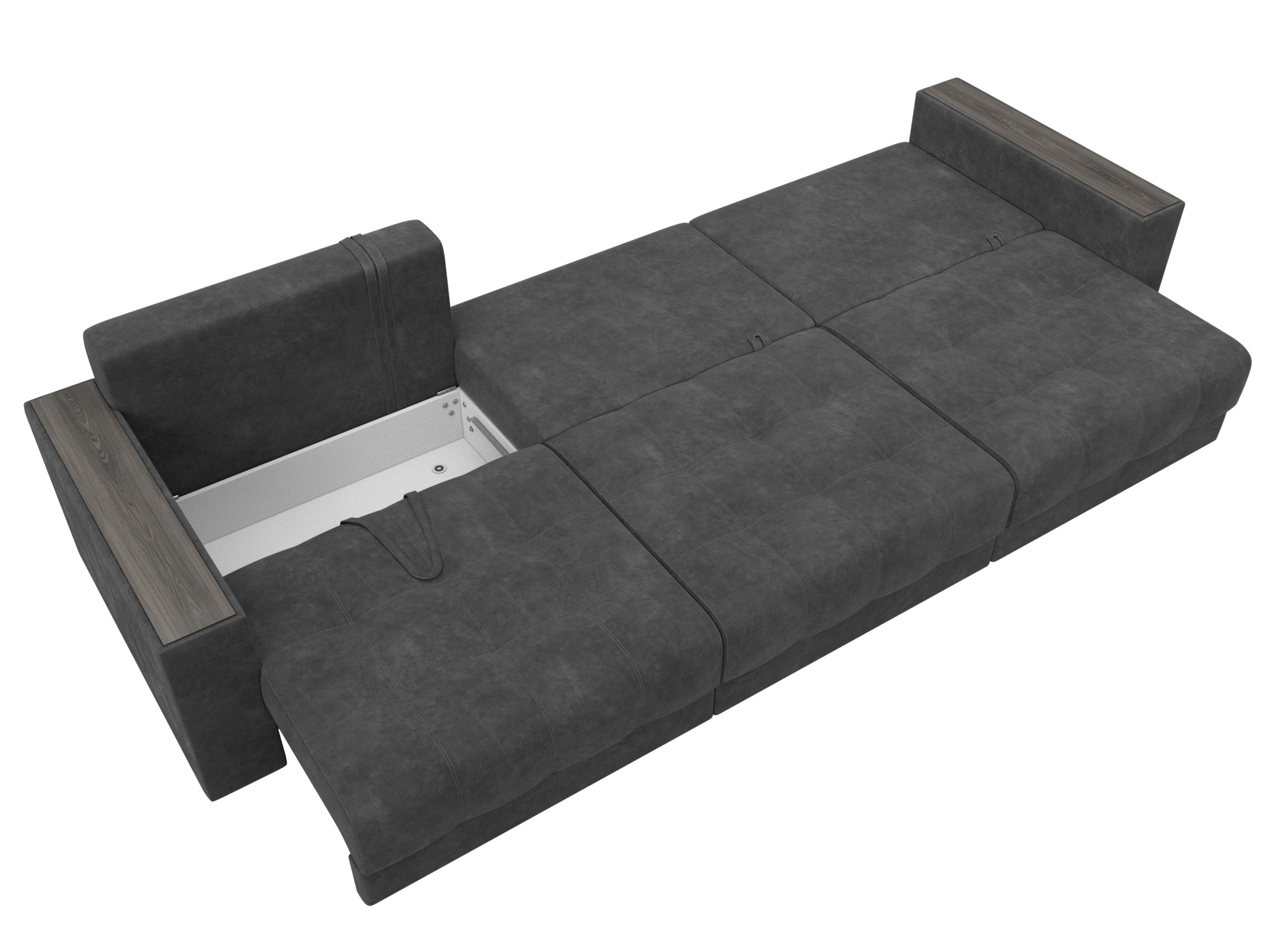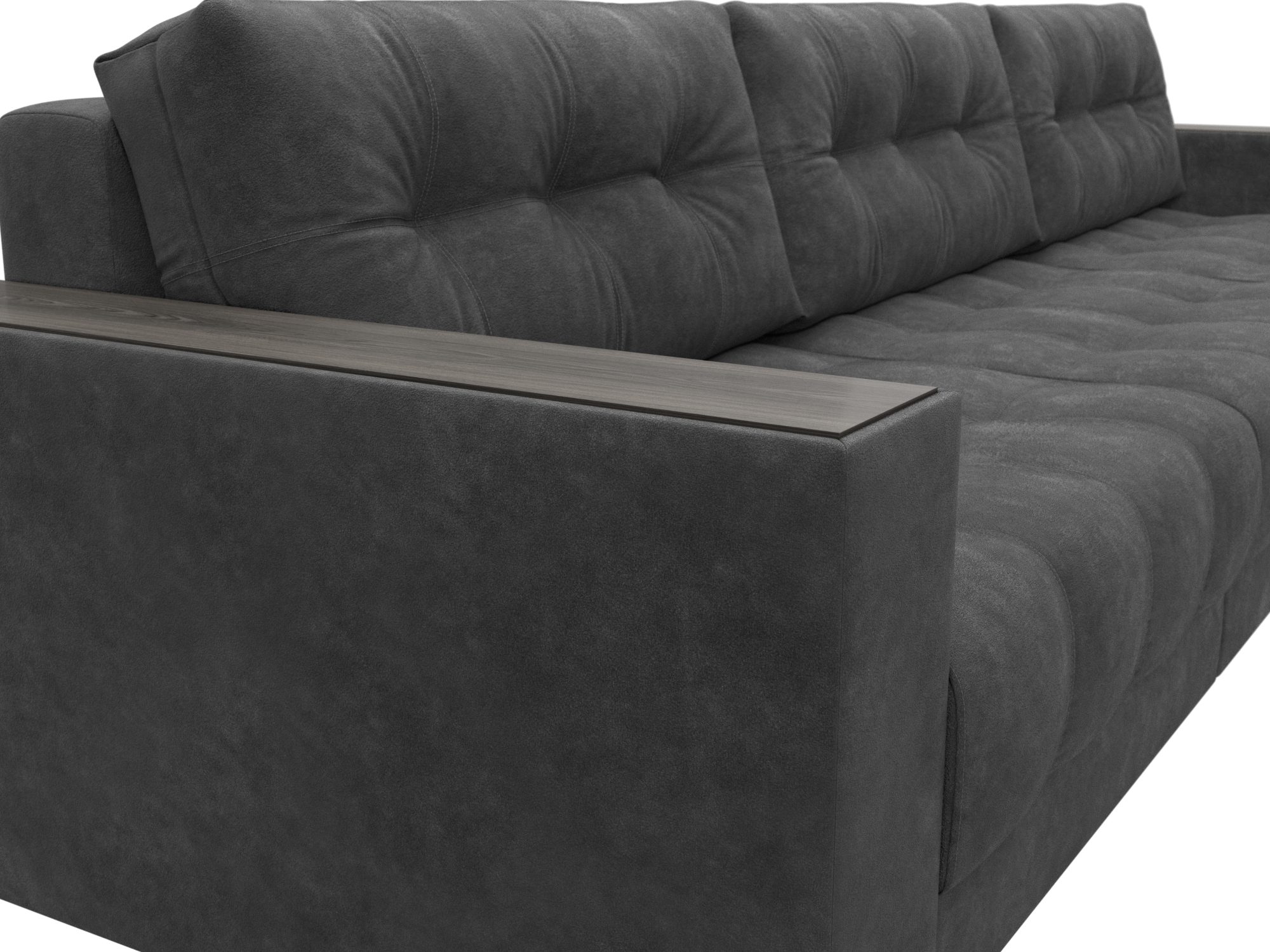 Диван прямой с декором Лига-049 НПБ Лонг, BRUT 16 темно-серый, Велюр