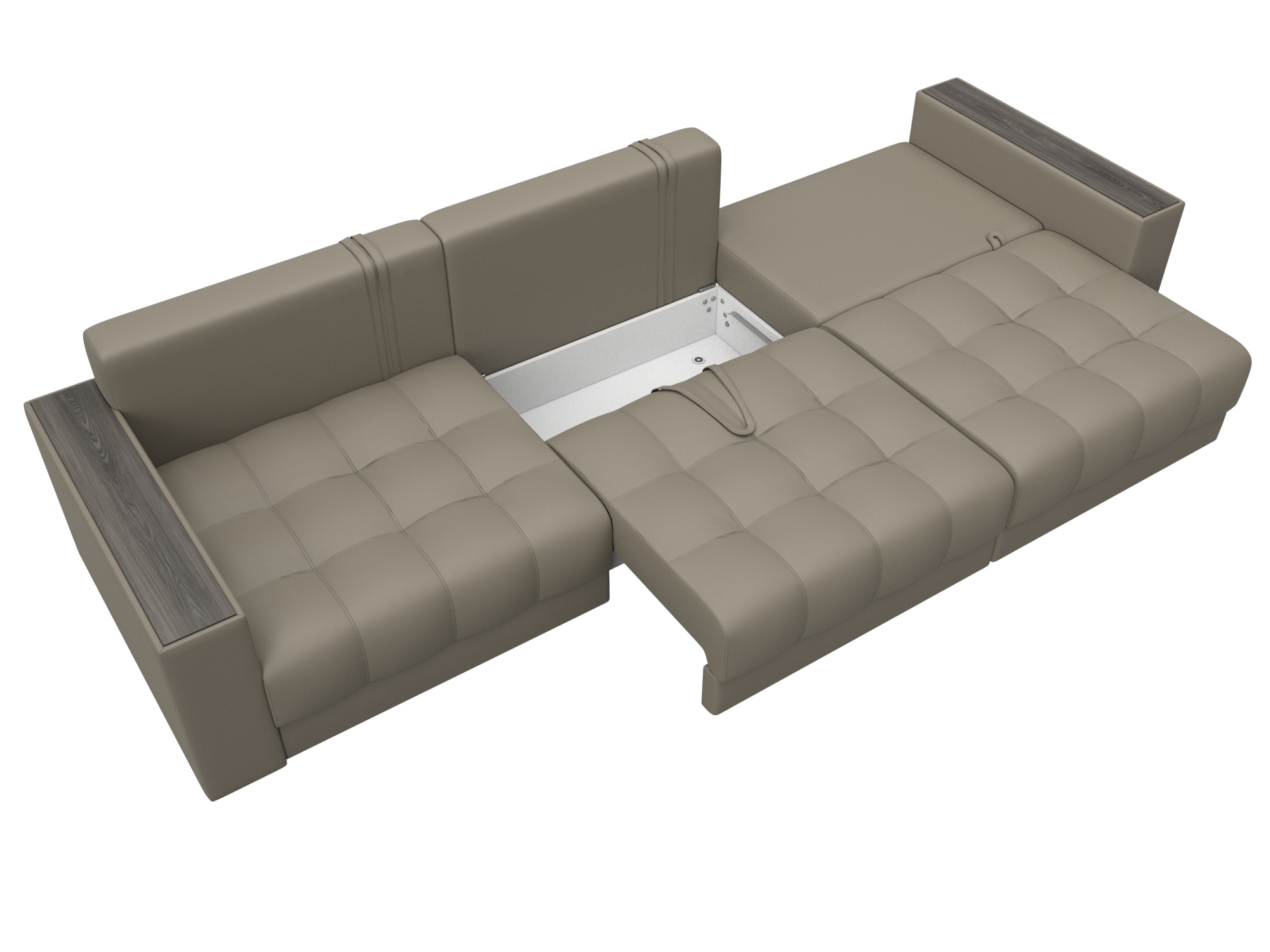 Диван прямой с декором Лига-049 НПБ Лонг, GRIFON 04 бежевый, Экокожа