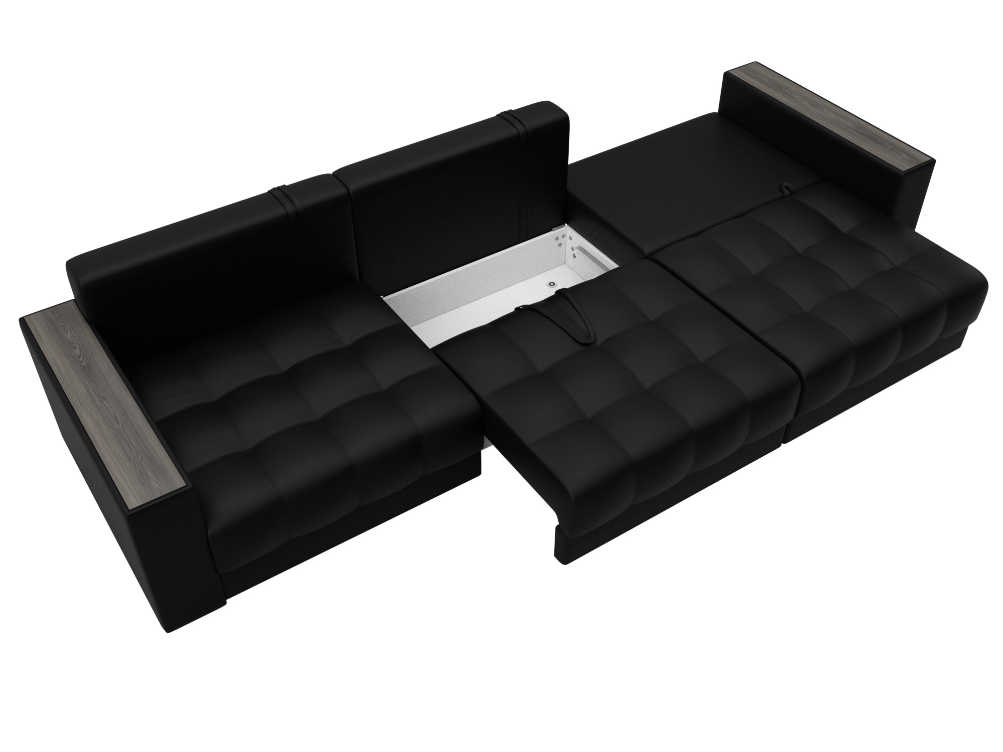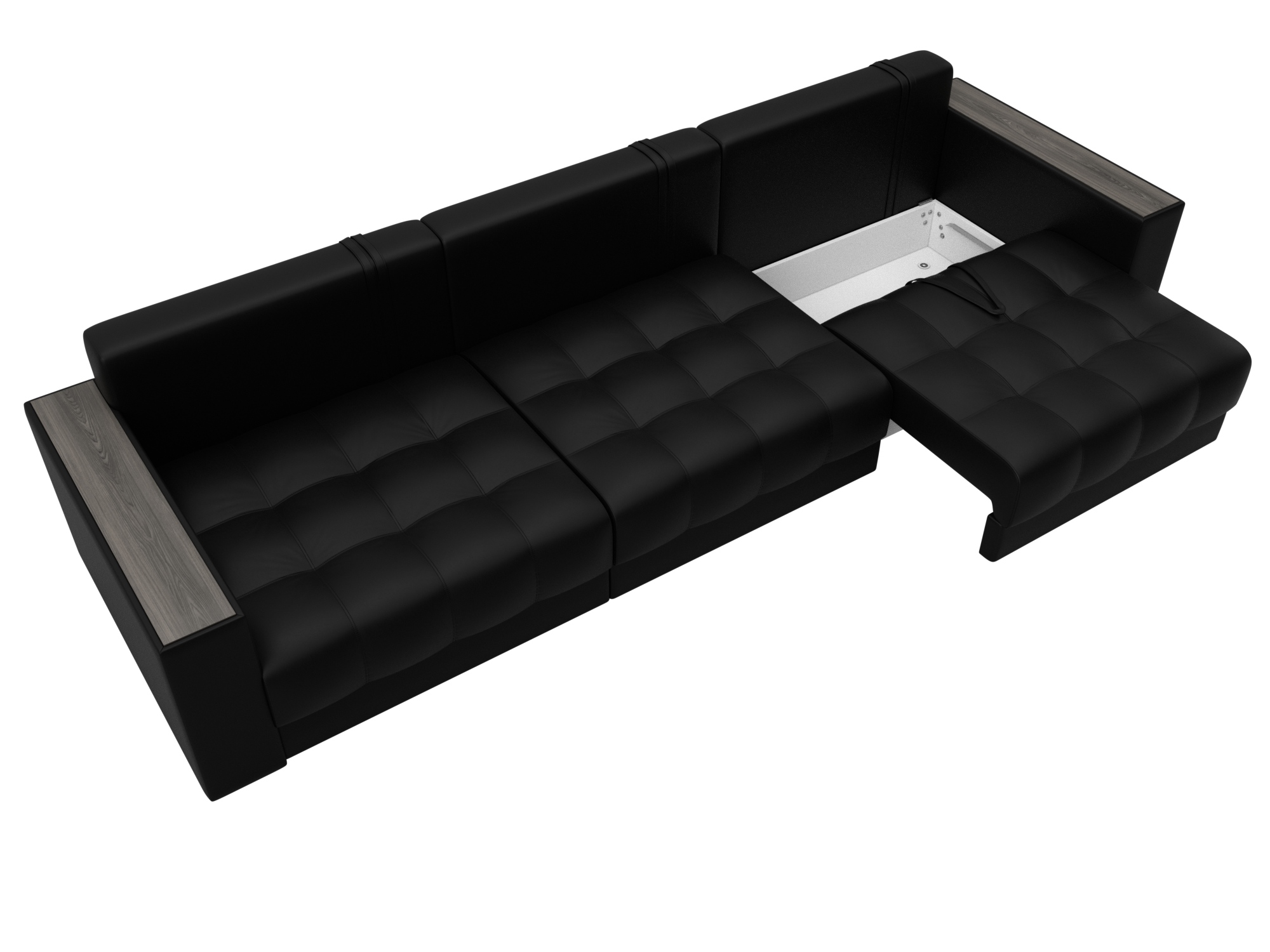 Диван прямой с декором Лига-049 НПБ Лонг, GRIFON 18 черный, Экокожа