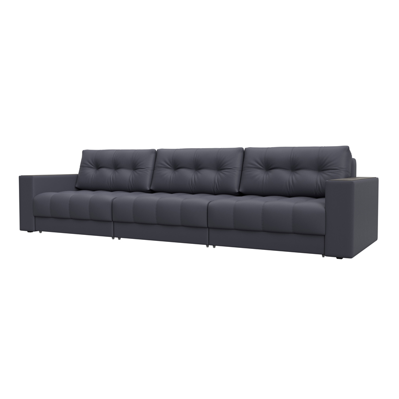 Диван прямой с декором Лига-049 НПБ Лонг, GRIFON 15 серый, Экокожа