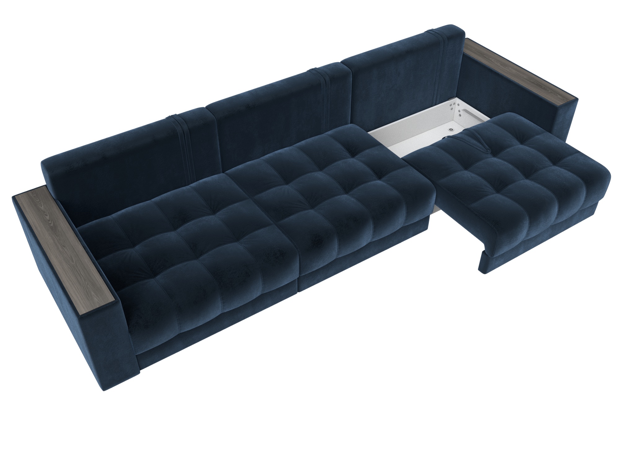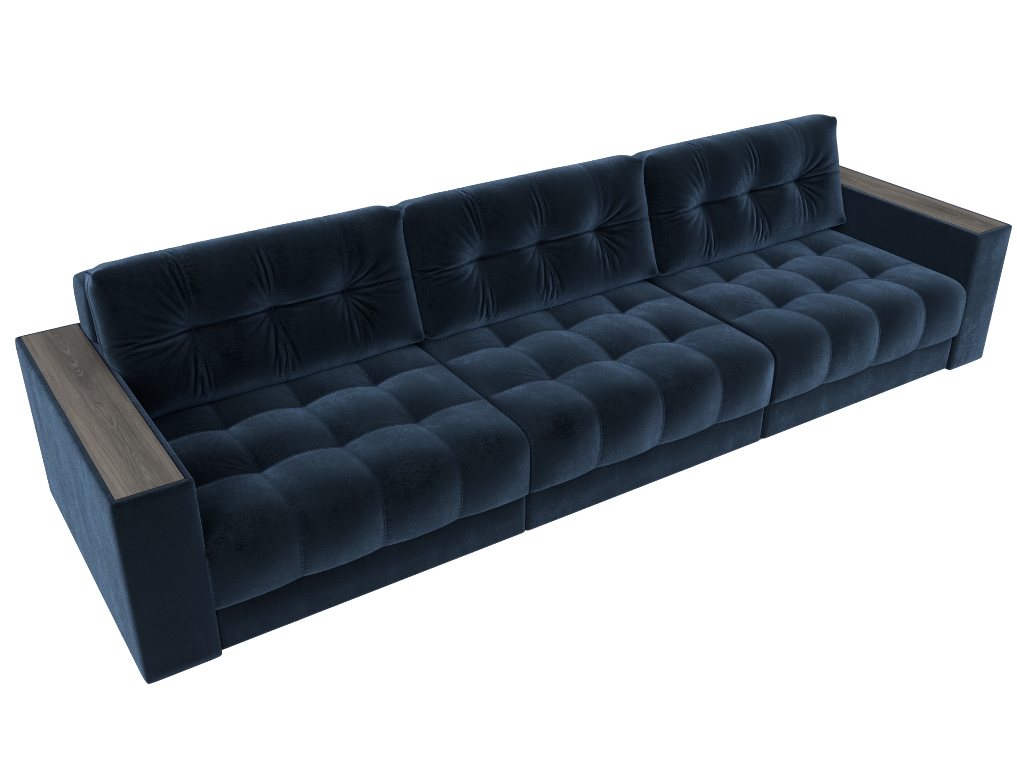 Диван прямой с декором Лига-049 НПБ Лонг, TOWER 13 синий, Велюр