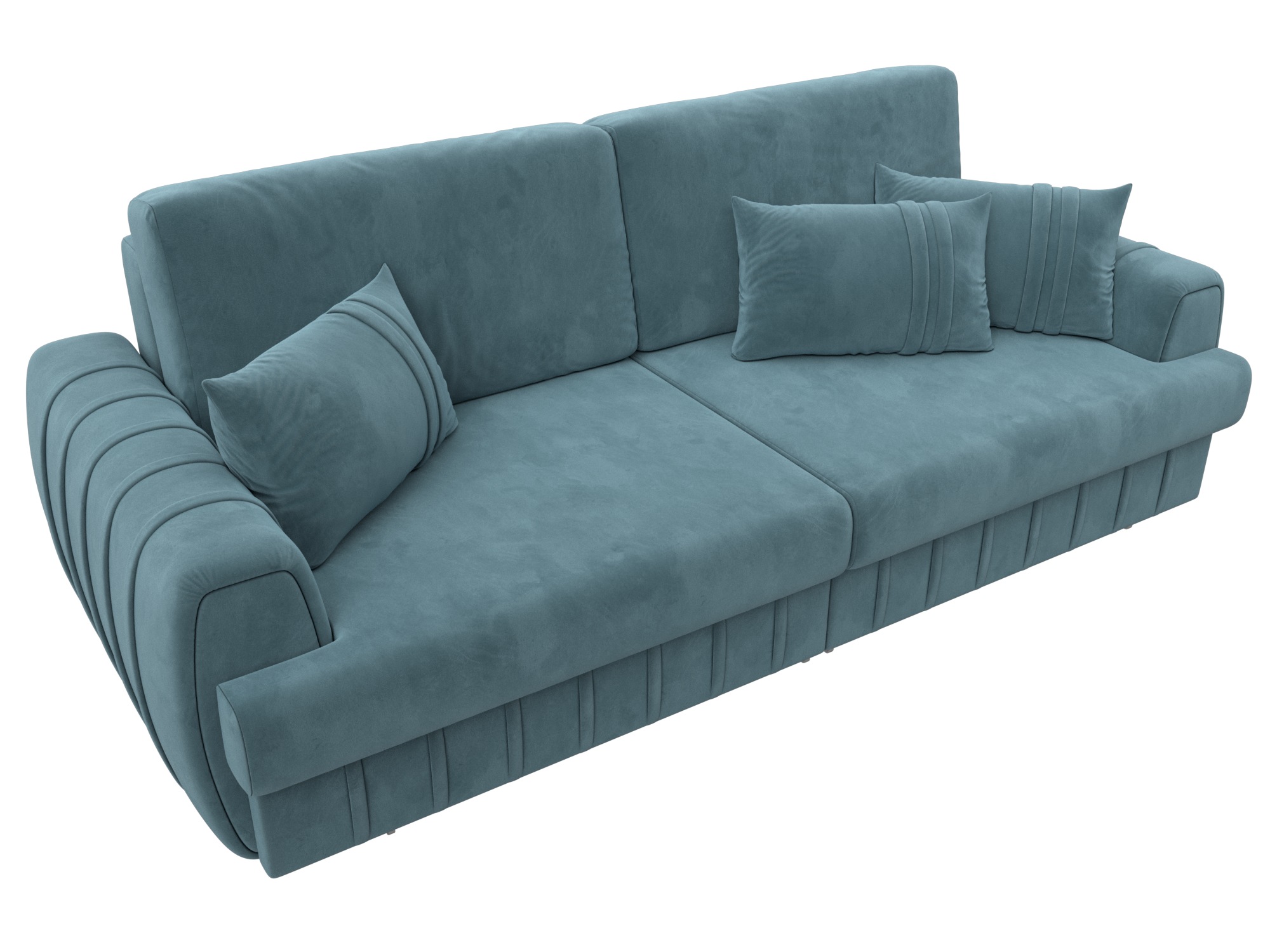 Диван прямой Лига-057 НПБ, SEVEN 113 бирюзовый, Велюр