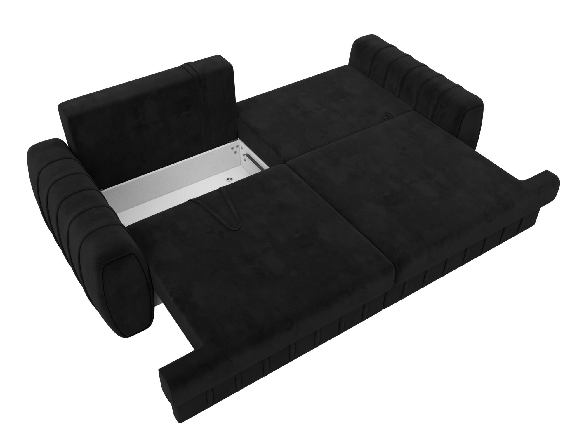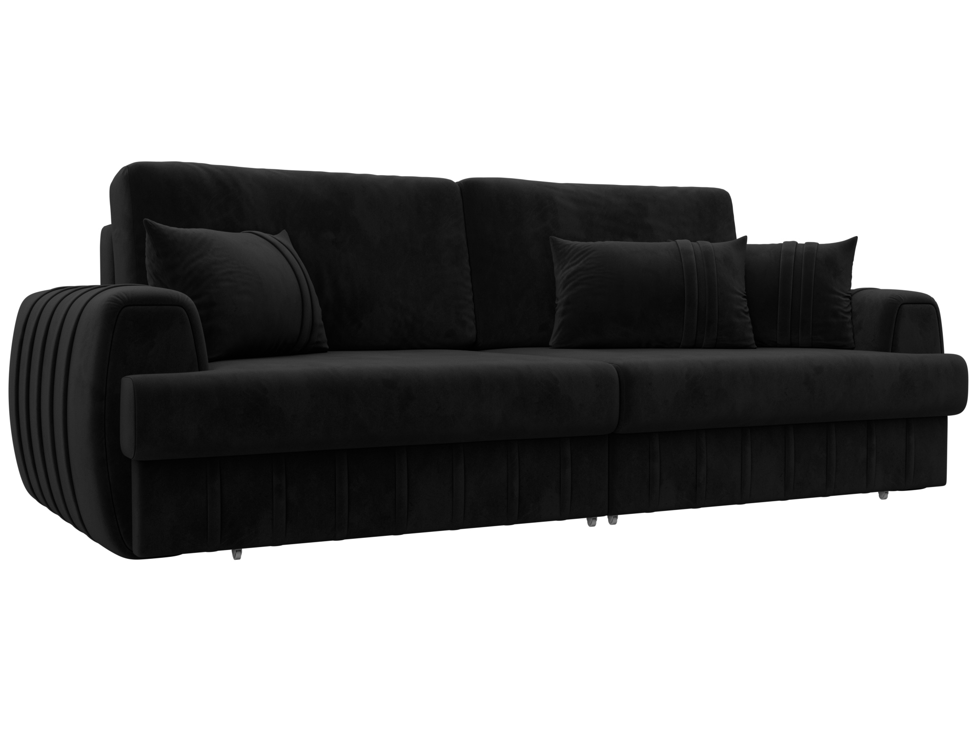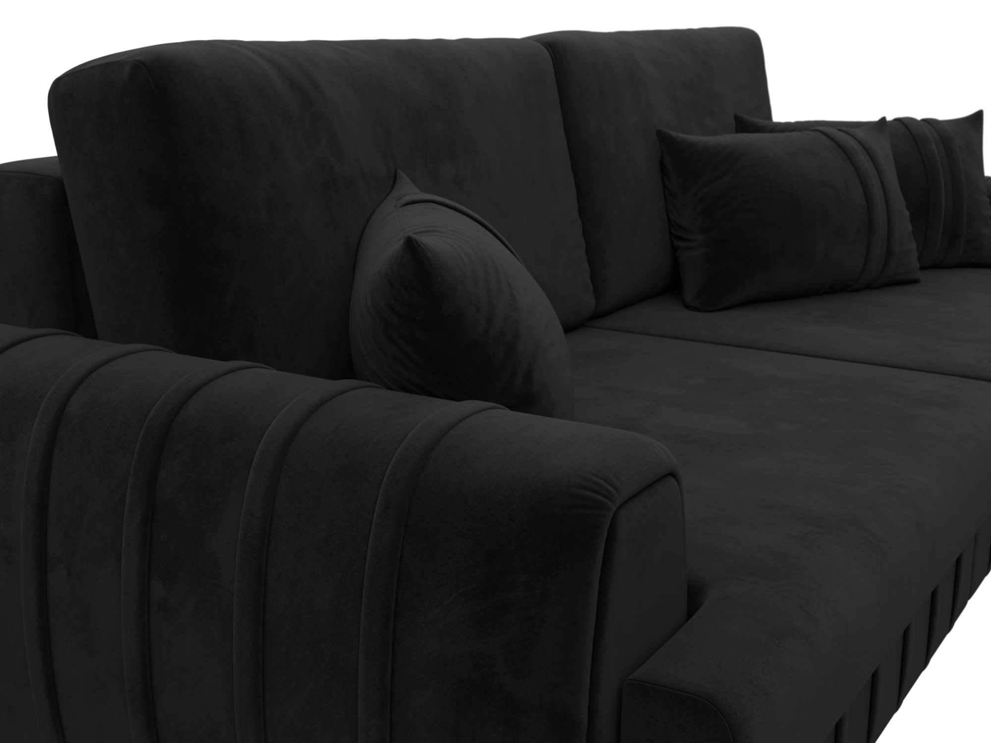 Диван прямой Лига-057 НПБ, SEVEN 35 черный, Велюр