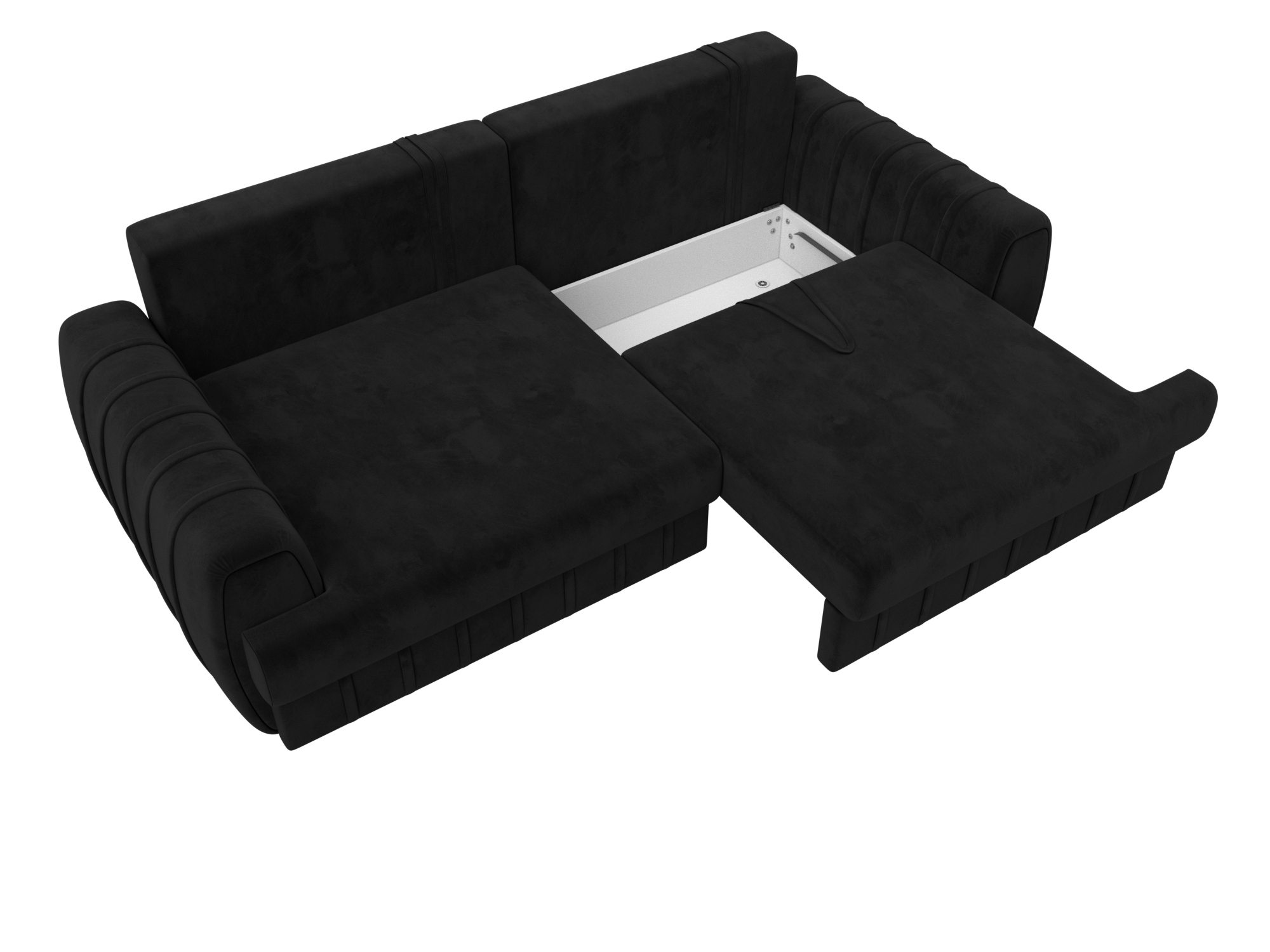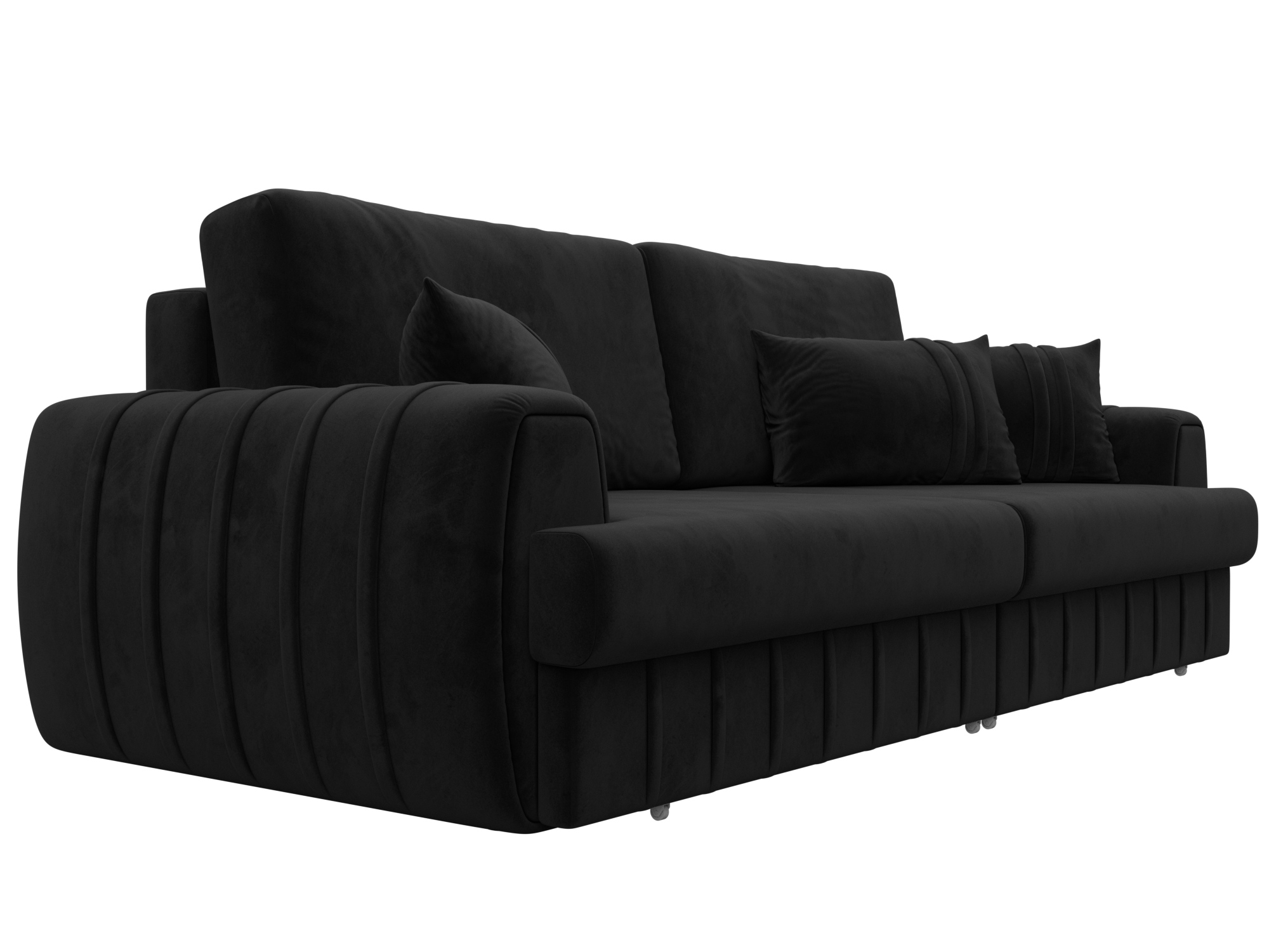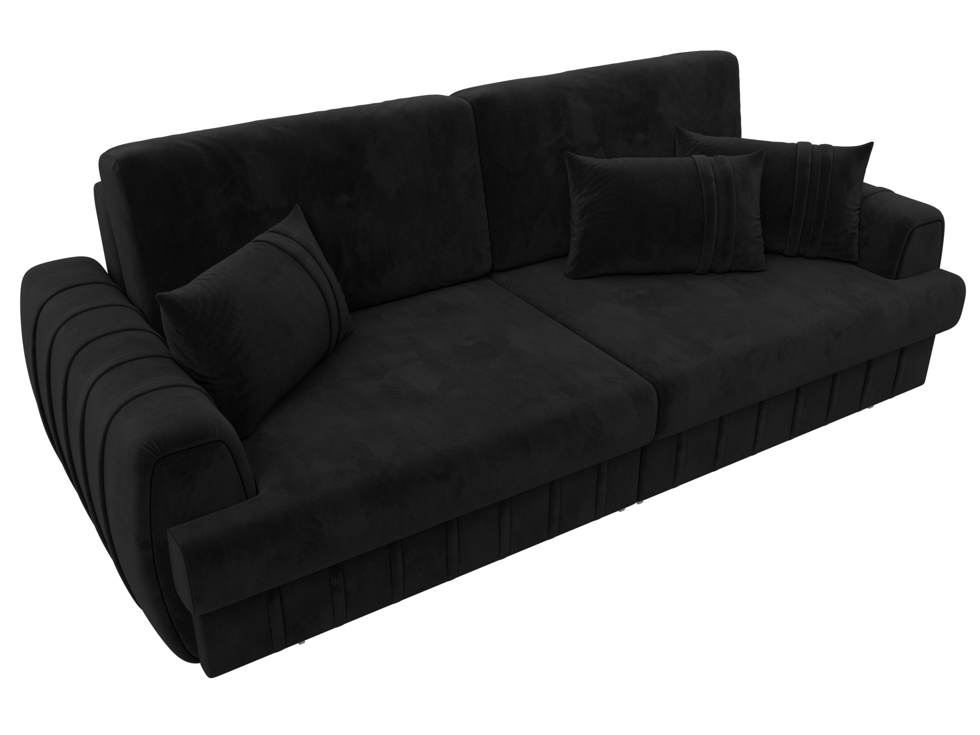 Диван прямой Лига-057 НПБ, SEVEN 35 черный, Велюр