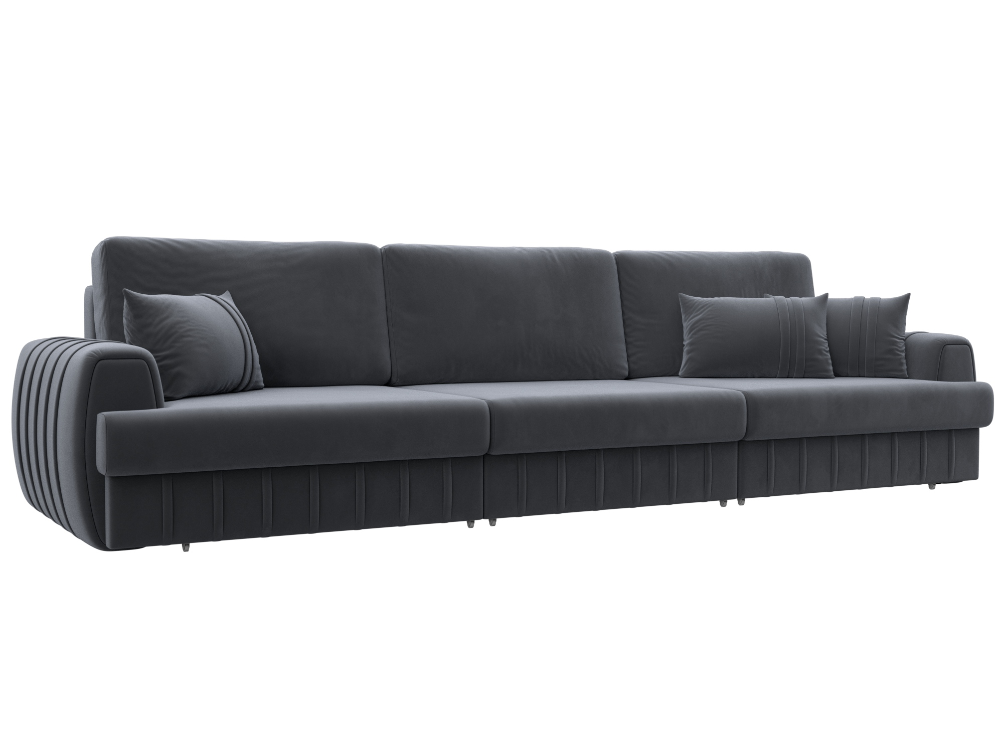 Диван прямой Лига-057 НПБ Лонг, SEVEN 17 серый, Велюр