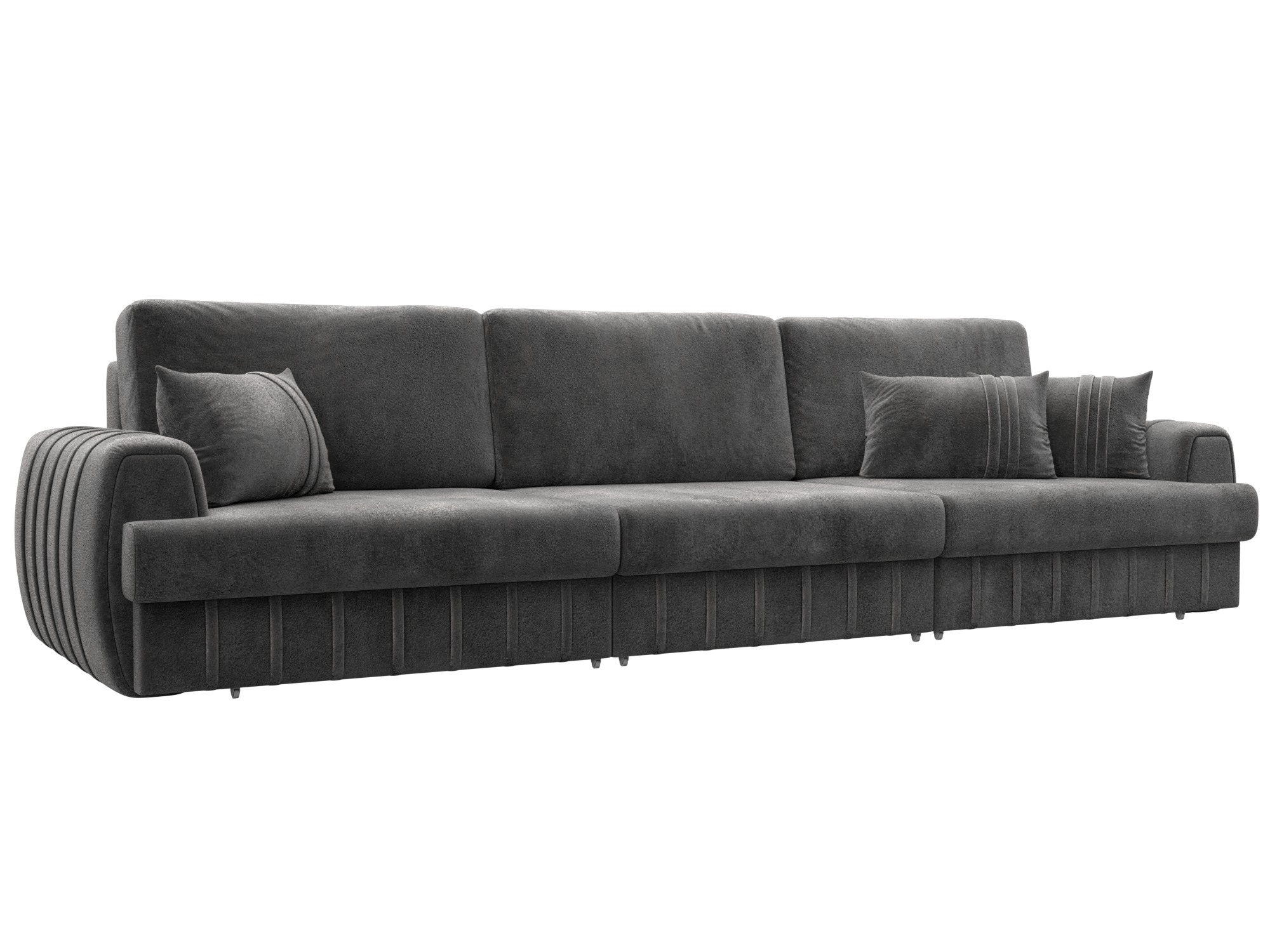 Диван прямой Лига-057 НПБ Лонг, TOWER 10 серый, Велюр