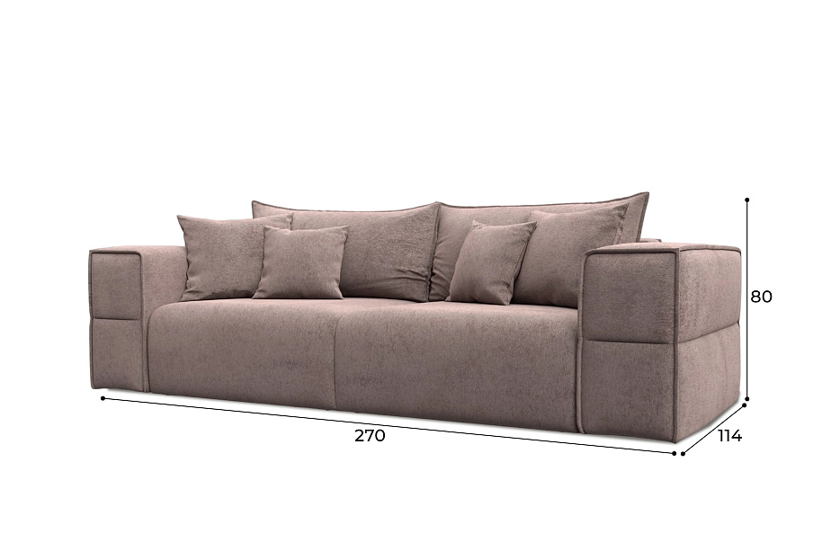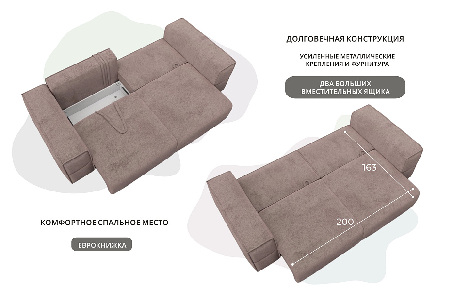 При габаритах: 270х80х114 см подойдет для комнат любых размеров, легко раскладывается, обеспечивая спальное место 163x200 см.