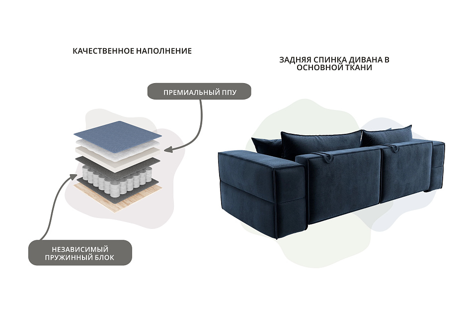 Пенополиуретан обеспечивает плавность и удобство форм, комфорт во время эксплуатации. Комбинация из разного типа тканевых волокон продлевает срок службы. Верхняя мебельная ткань имеет эффектный внешний вид и отличается простотой в уходе. - Средний размер