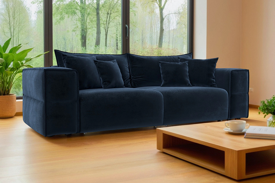 Диван прямой Лига-058 НПБ, TOWER 13 синий, Велюр