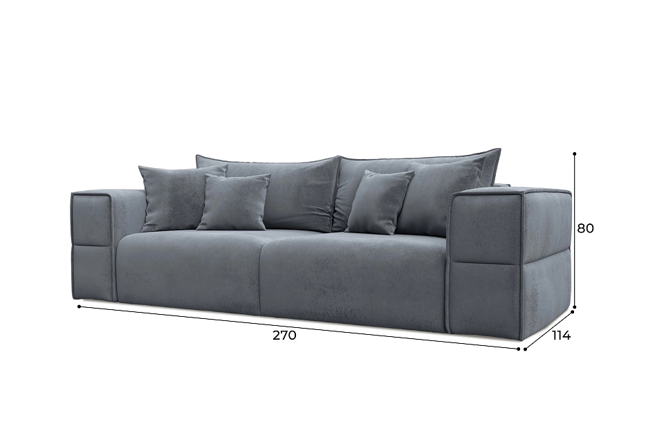 При габаритах: 270х80х114 см подойдет для комнат любых размеров, легко раскладывается, обеспечивая спальное место 163x200 см.