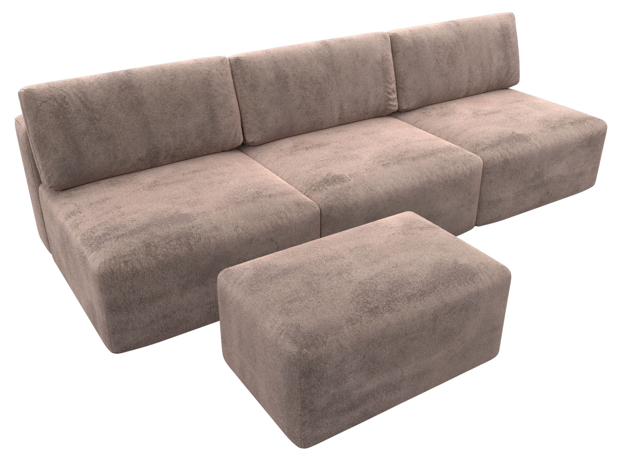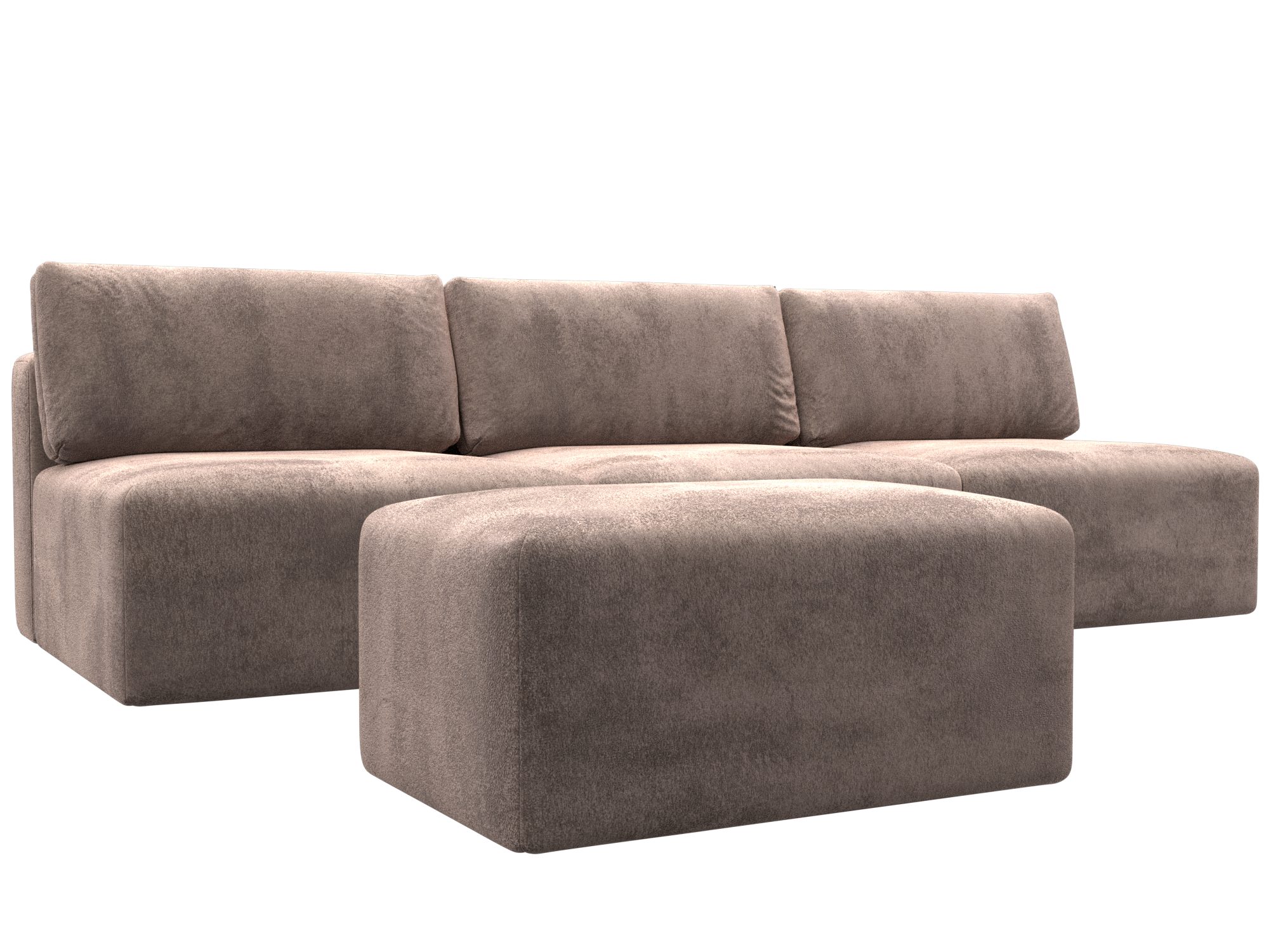 Диван прямой модульный с пуфом Лига-060 НПБ Лонг, TOWER 05 бежевый, Велюр