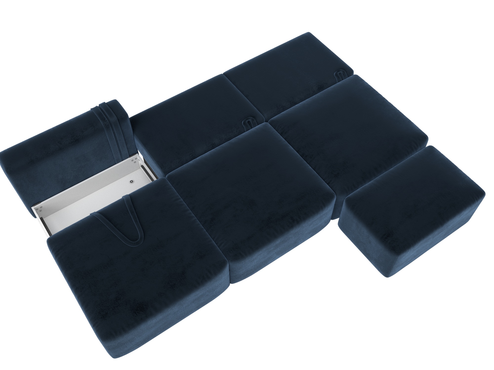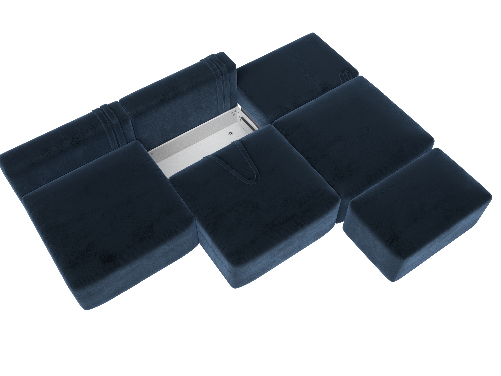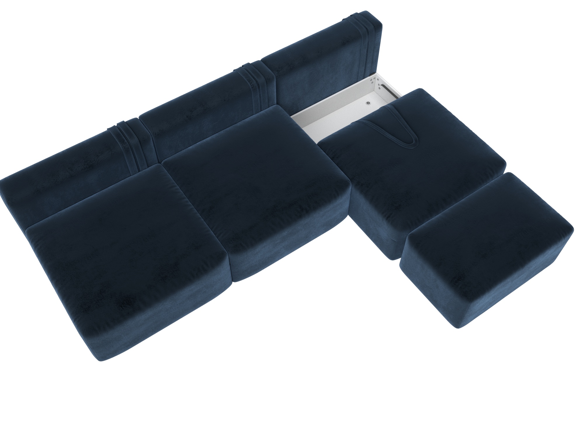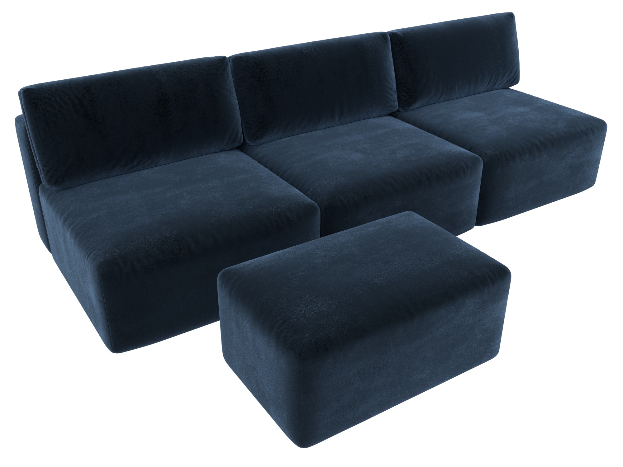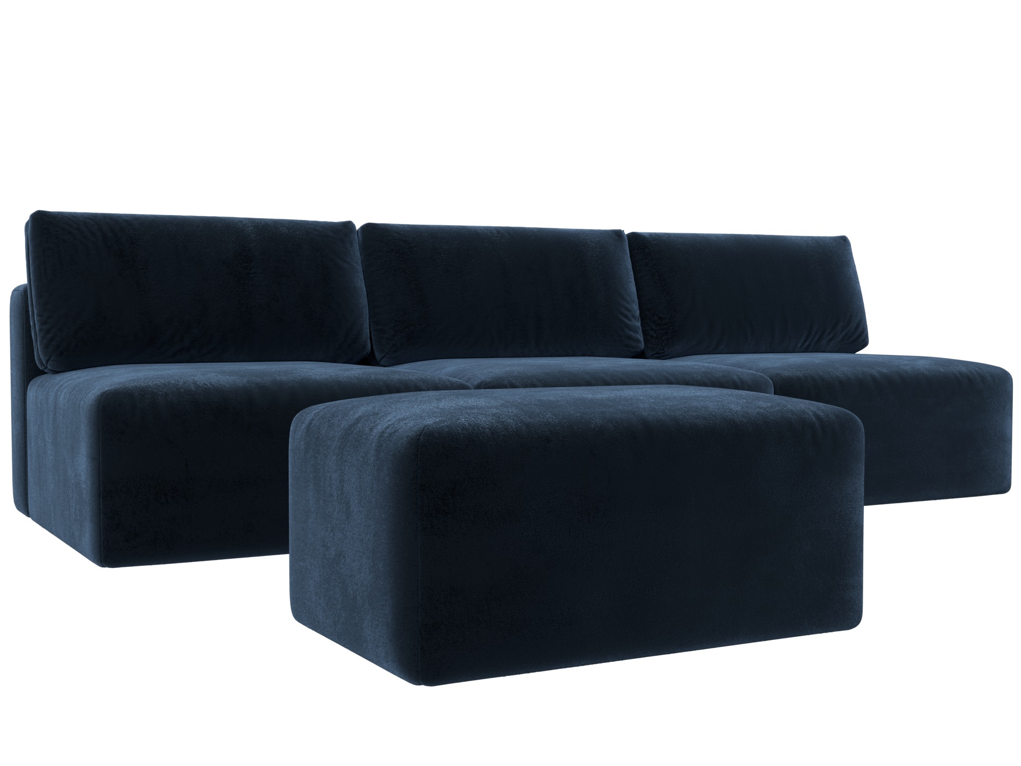 Диван прямой модульный с пуфом Лига-060 НПБ Лонг, TOWER 13 синий, Велюр
