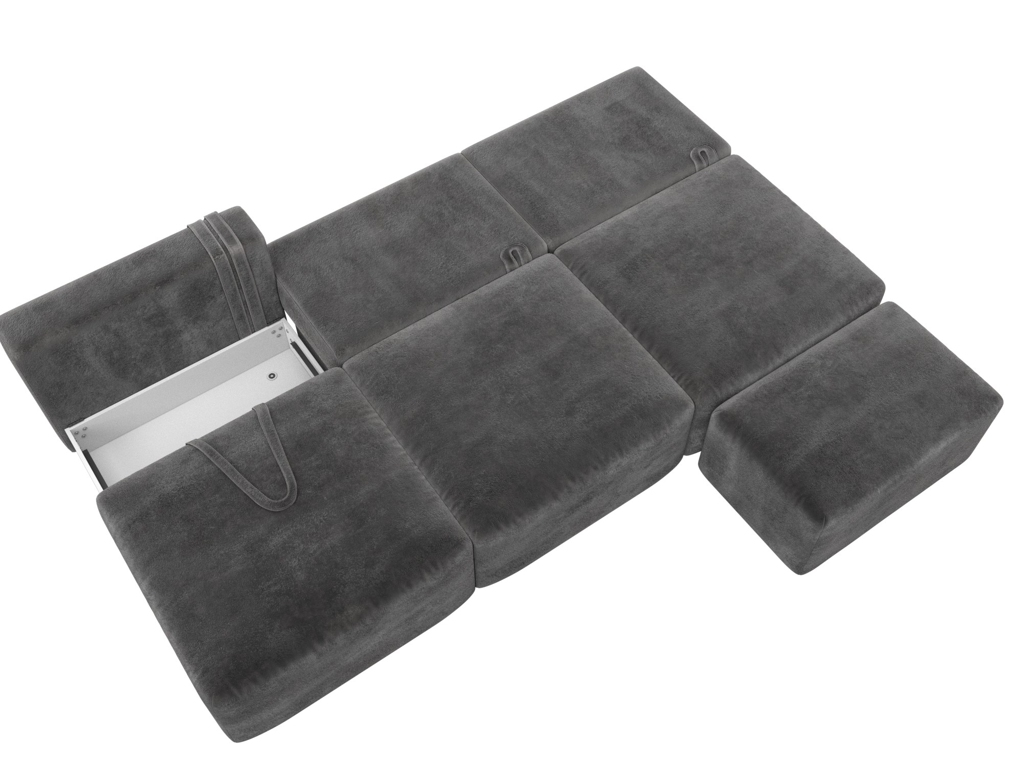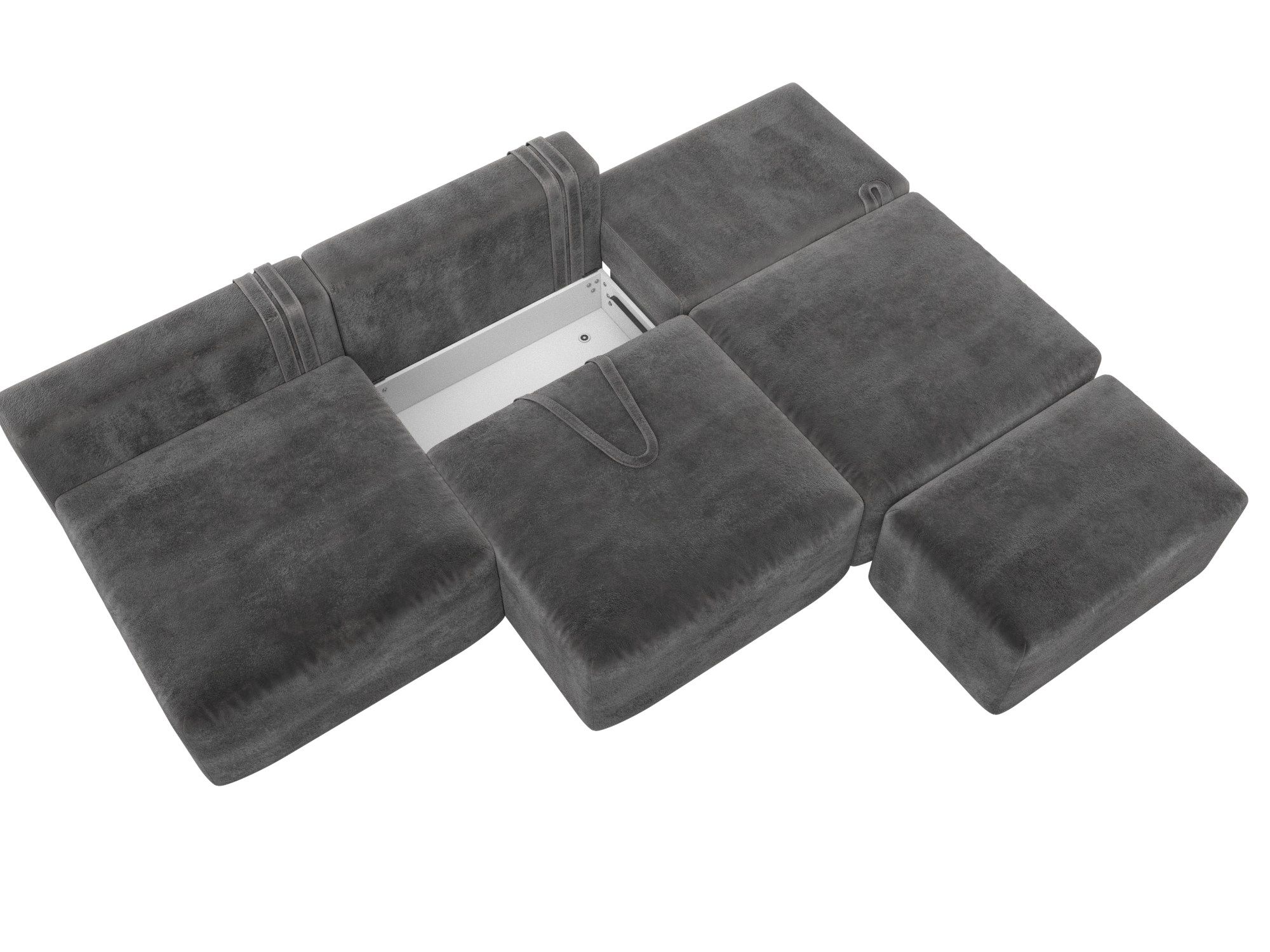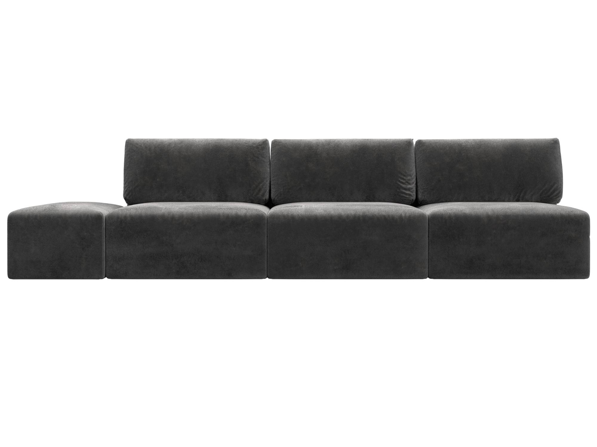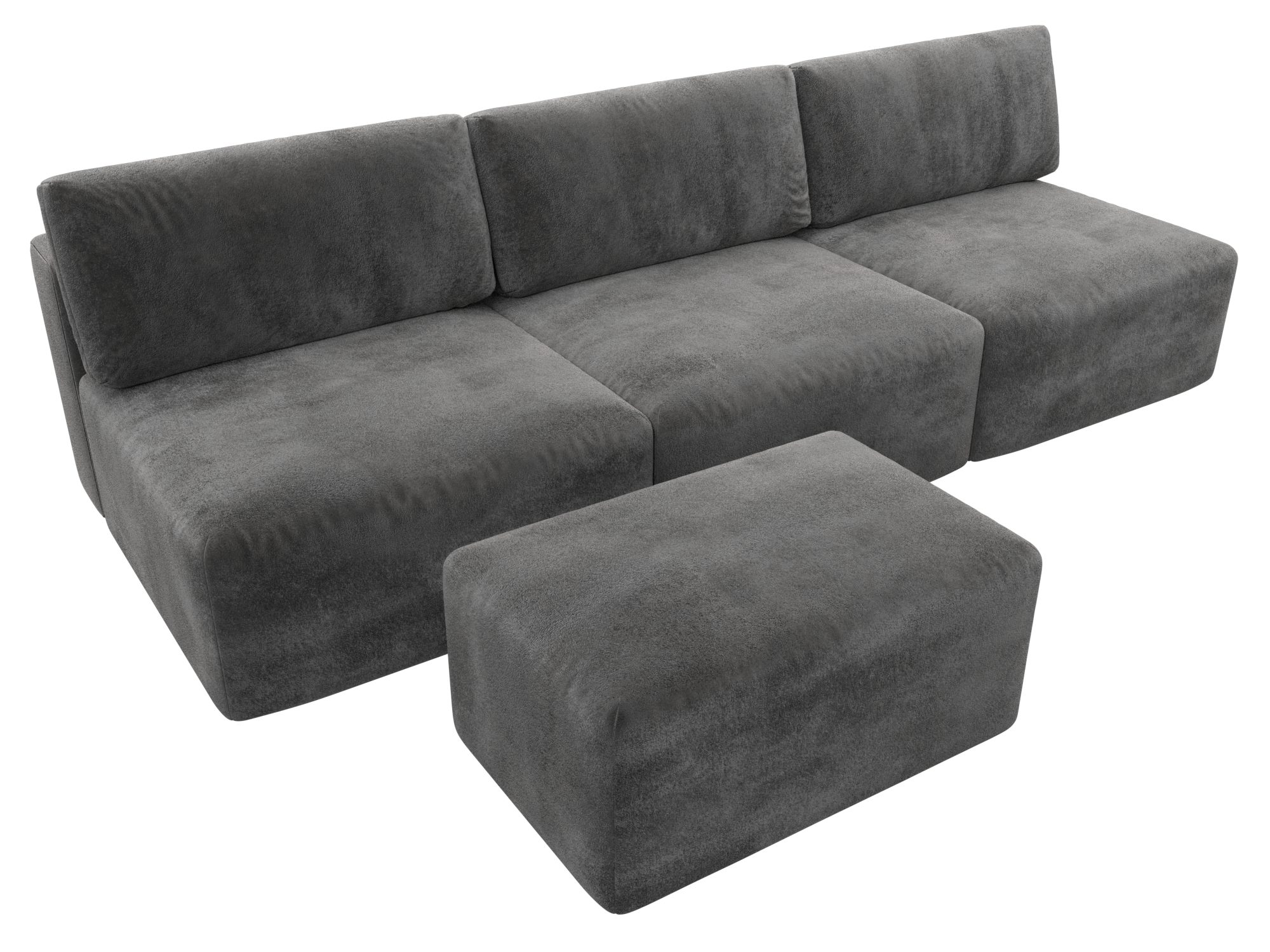 Диван прямой модульный с пуфом Лига-060 НПБ Лонг, TOWER 10 серый, Велюр