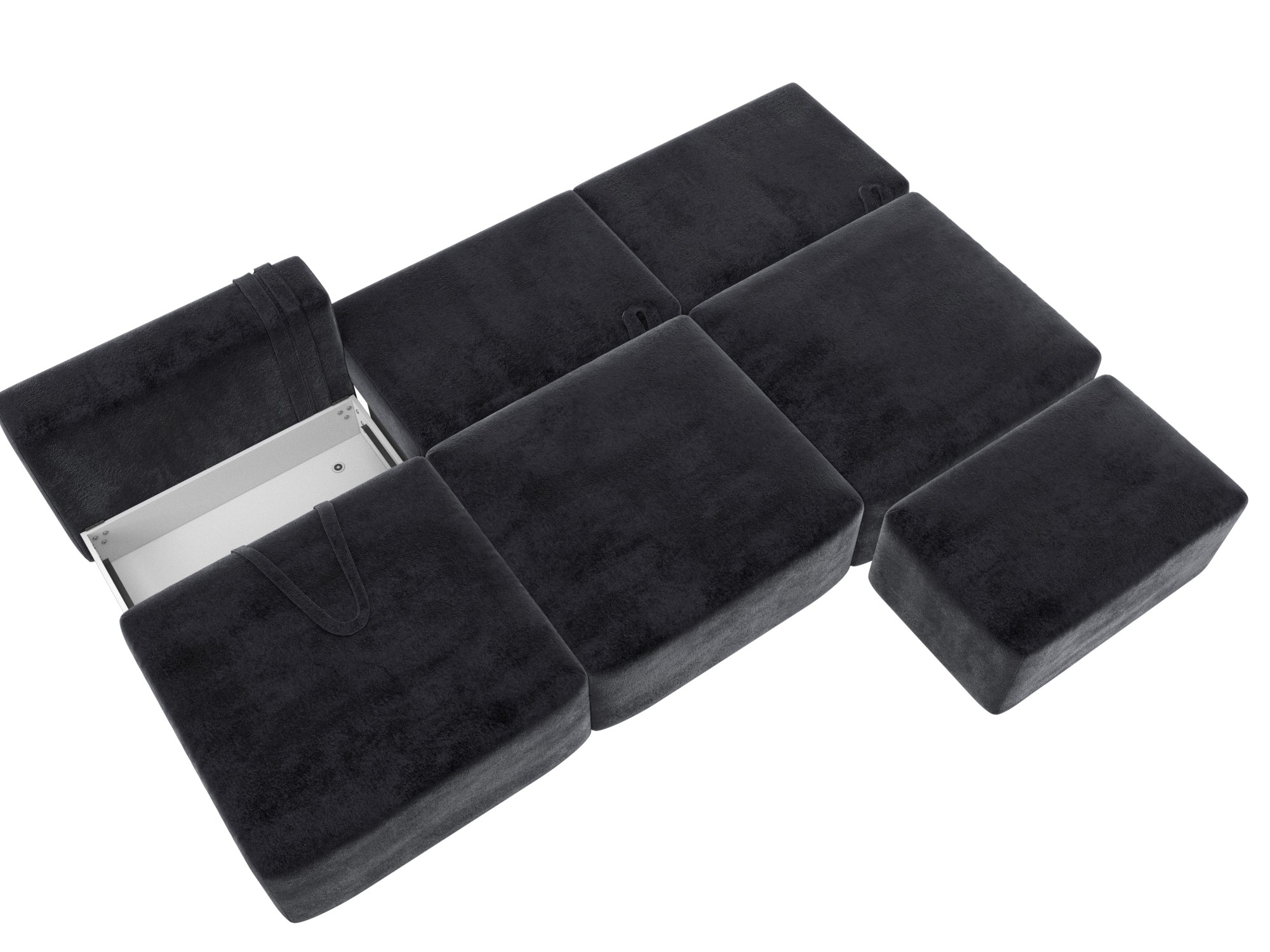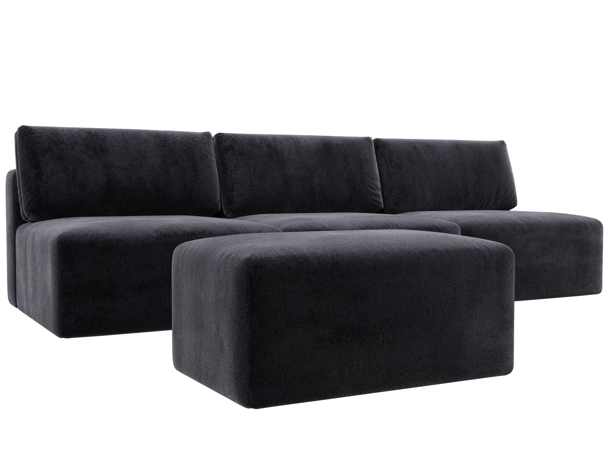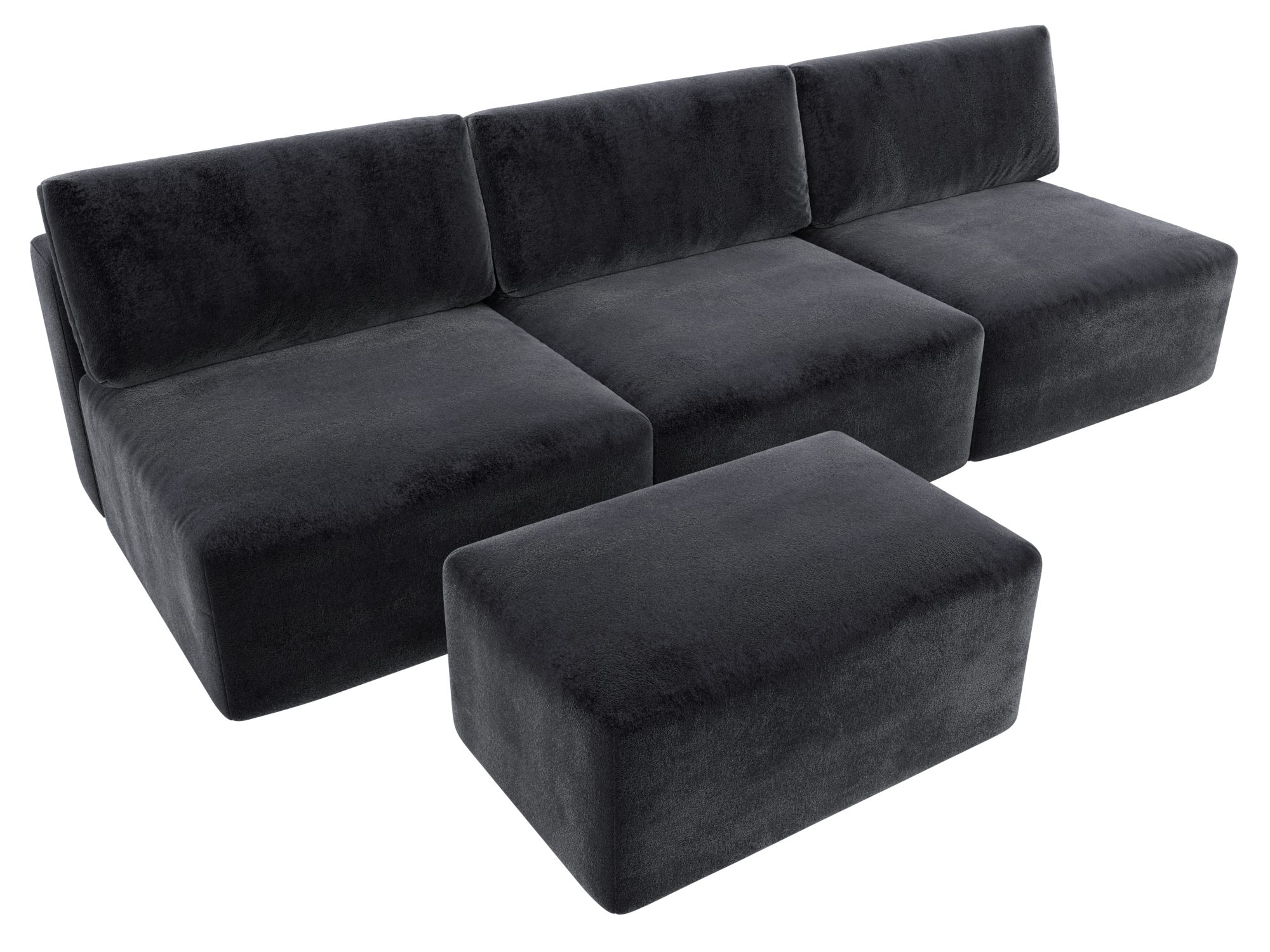 Диван прямой модульный с пуфом Лига-060 НПБ Лонг, TOWER 11 темно-серый, Велюр