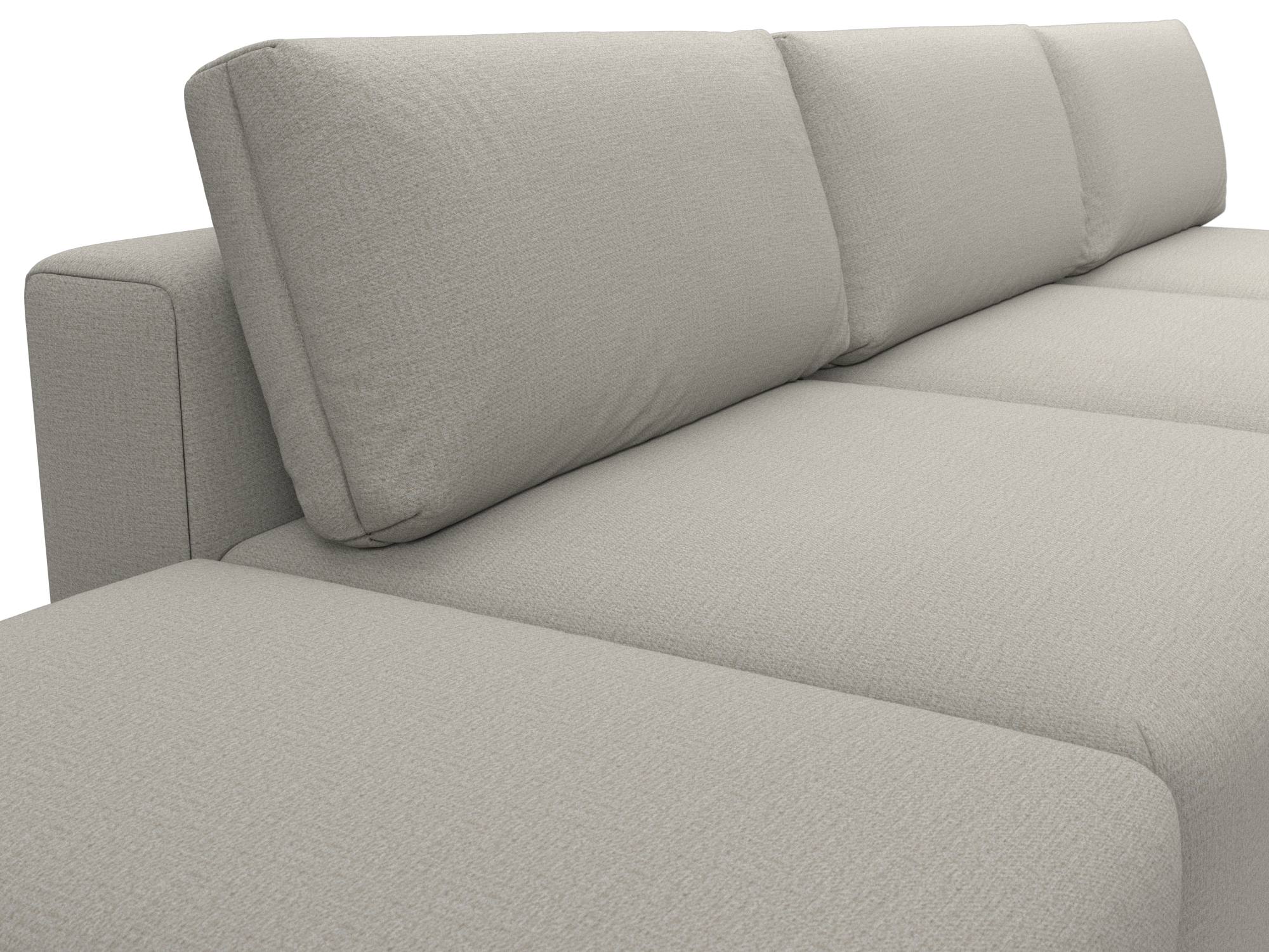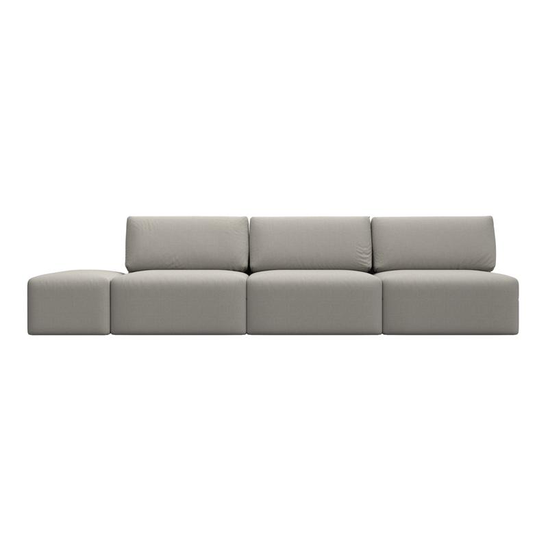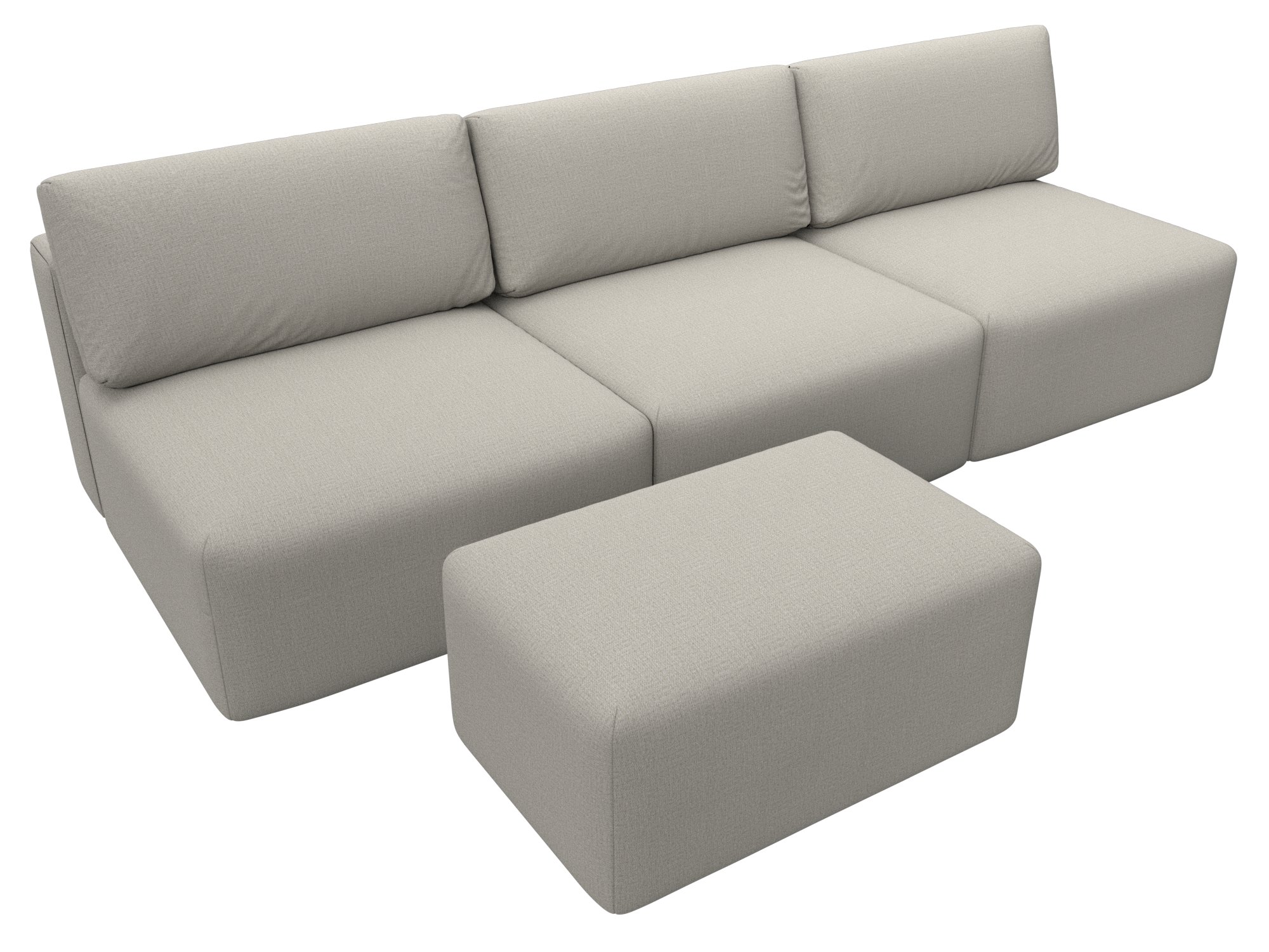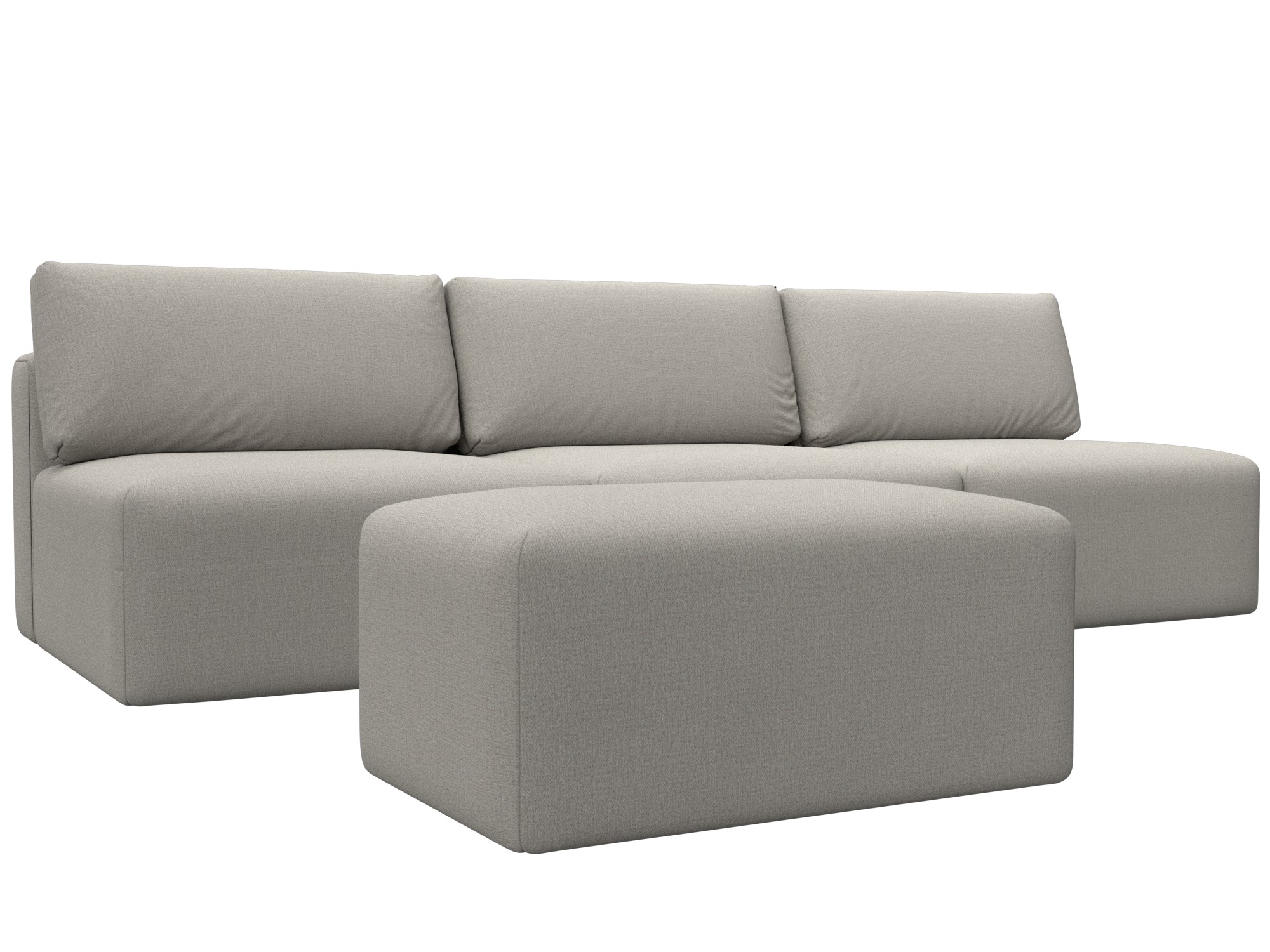 Диван прямой модульный с пуфом Лига-060 НПБ Лонг, Амур 02 бежевый, Рогожка