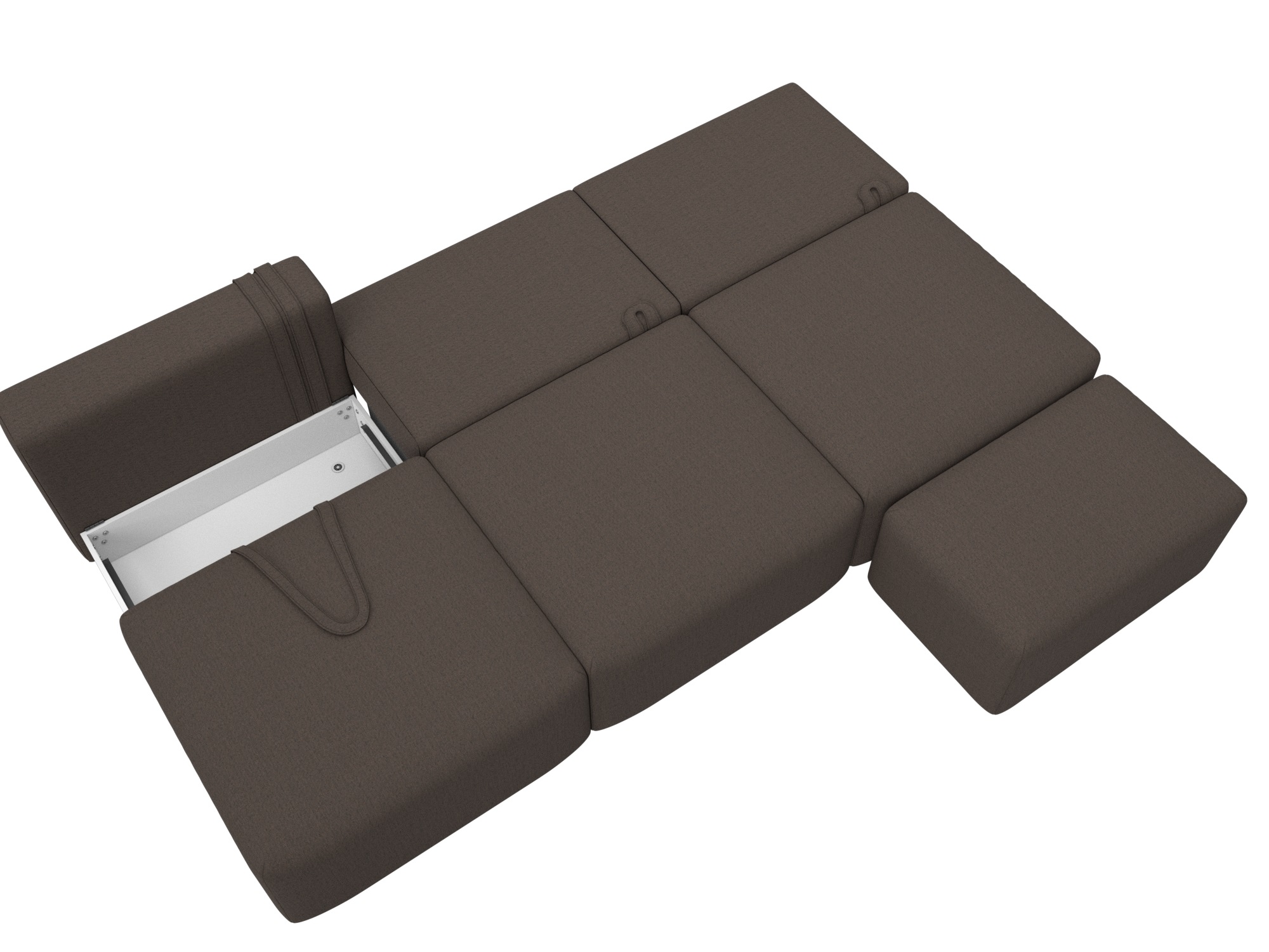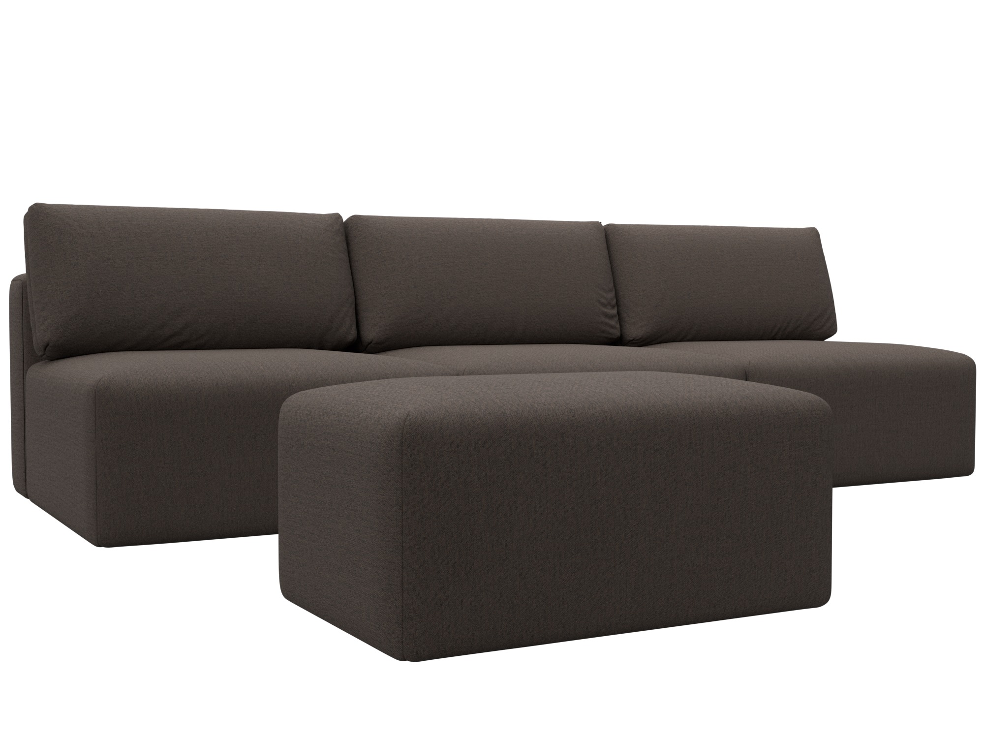 Диван прямой модульный с пуфом Лига-060 НПБ Лонг, Амур 05 коричневый, Рогожка
