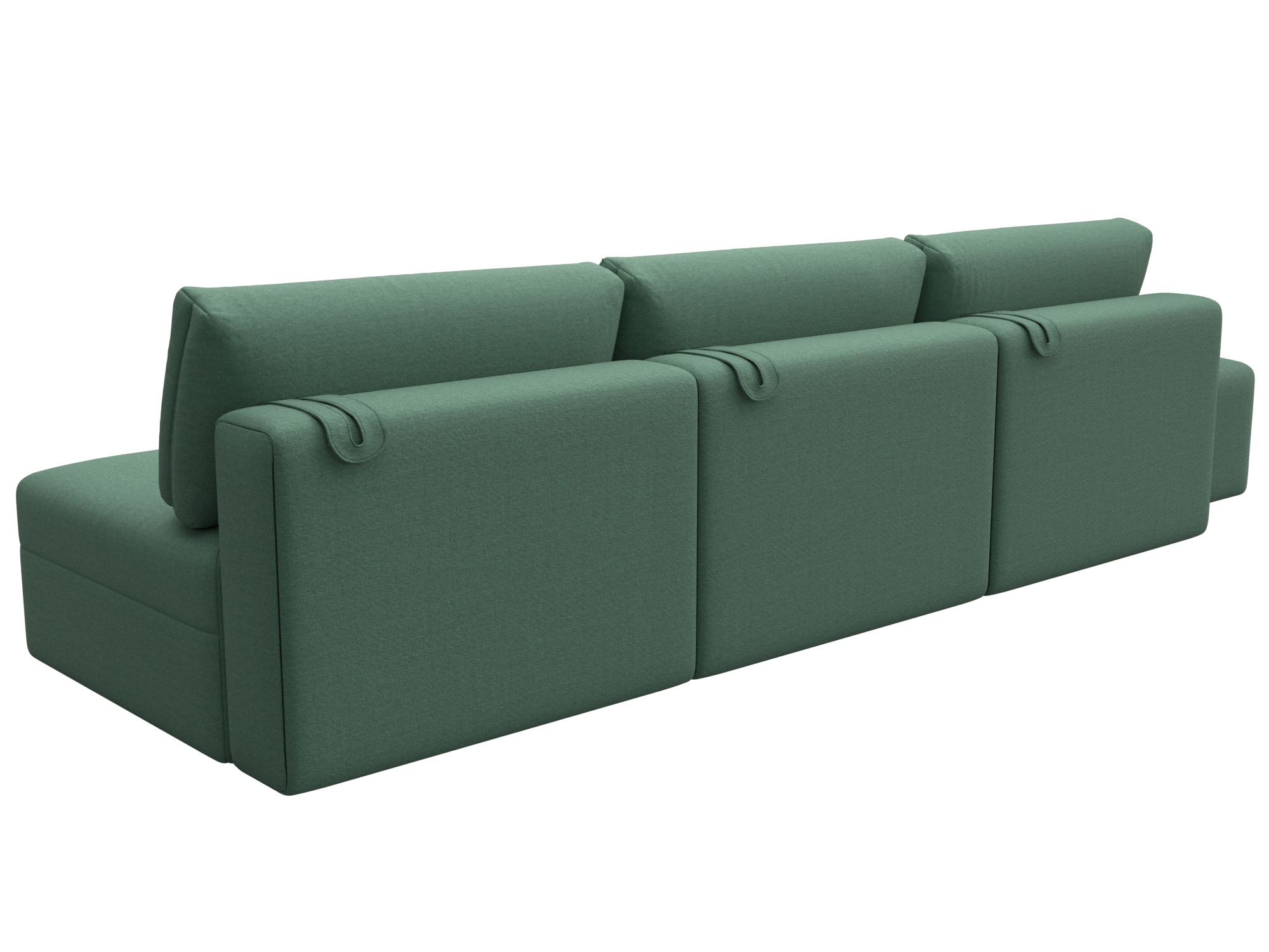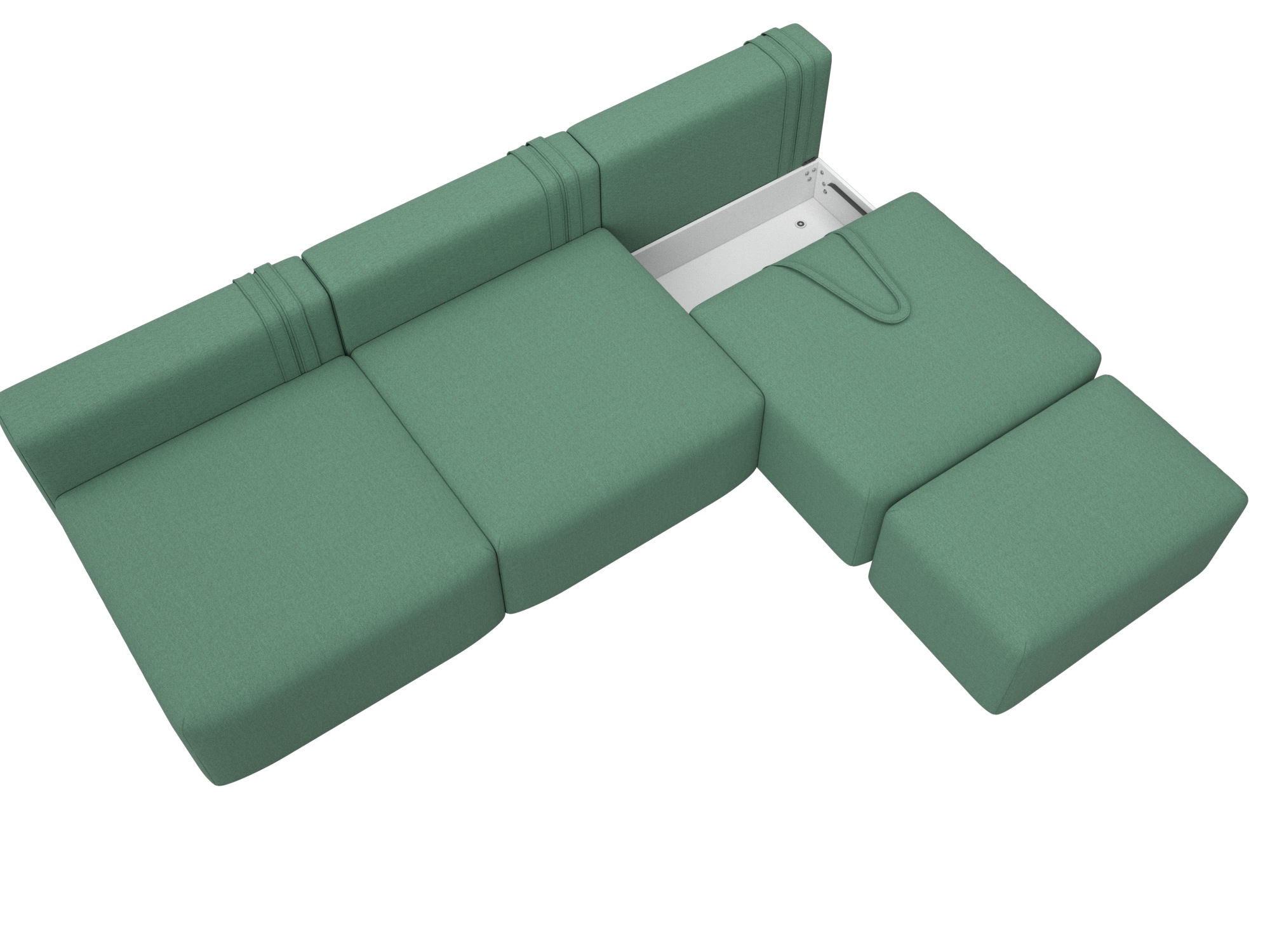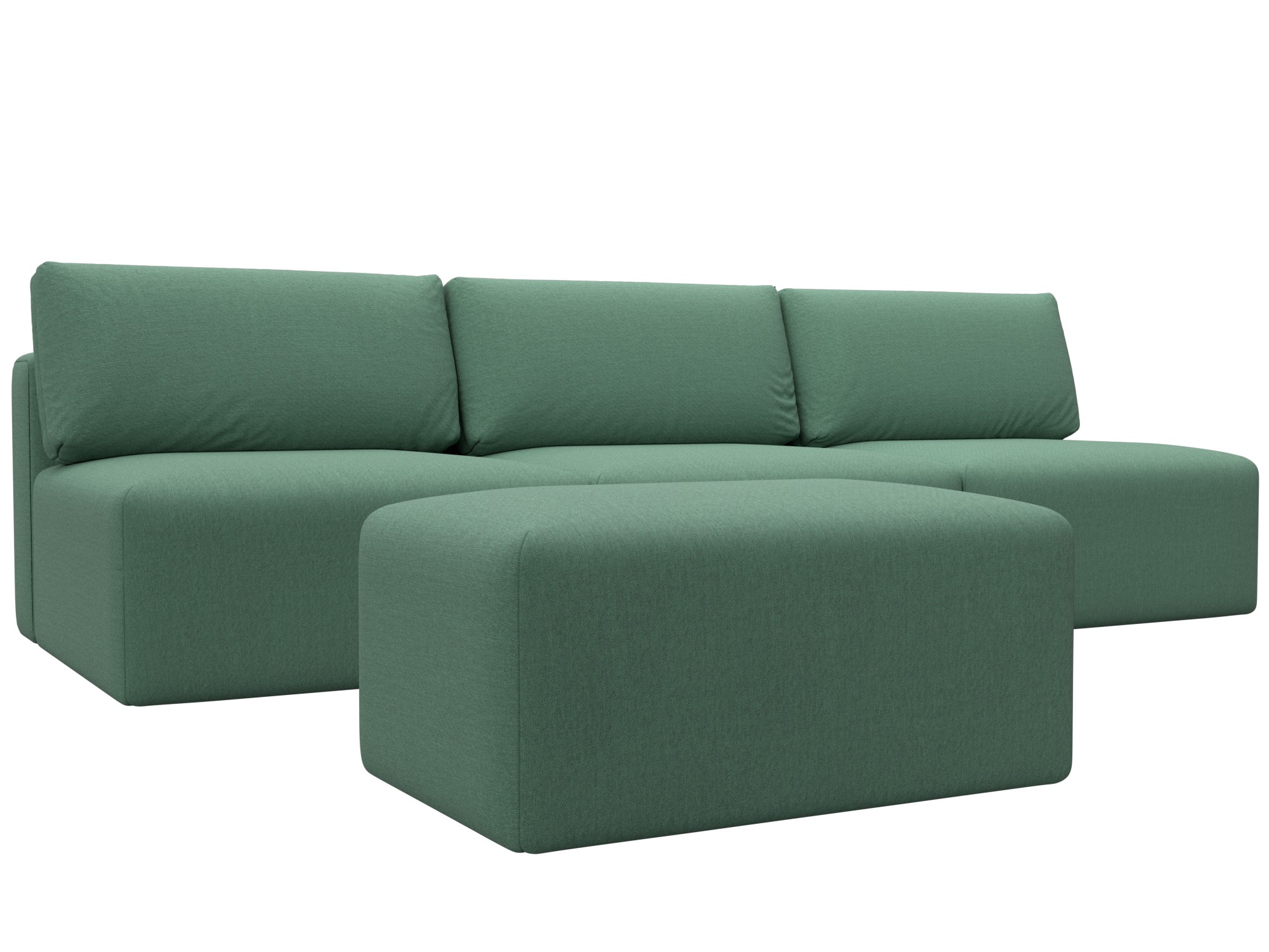 Диван прямой модульный с пуфом Лига-060 НПБ Лонг, Амур 11 зеленый, Рогожка
