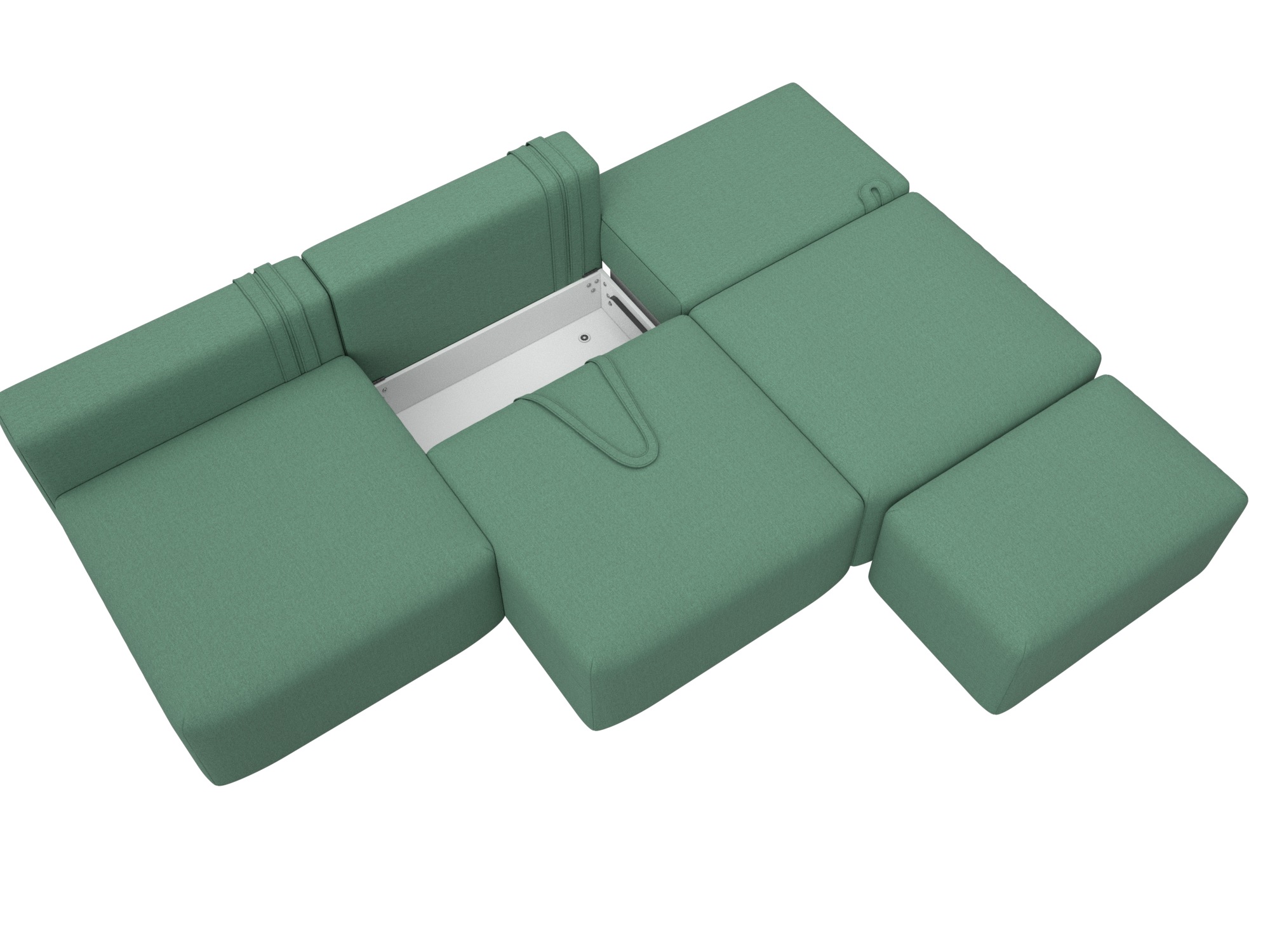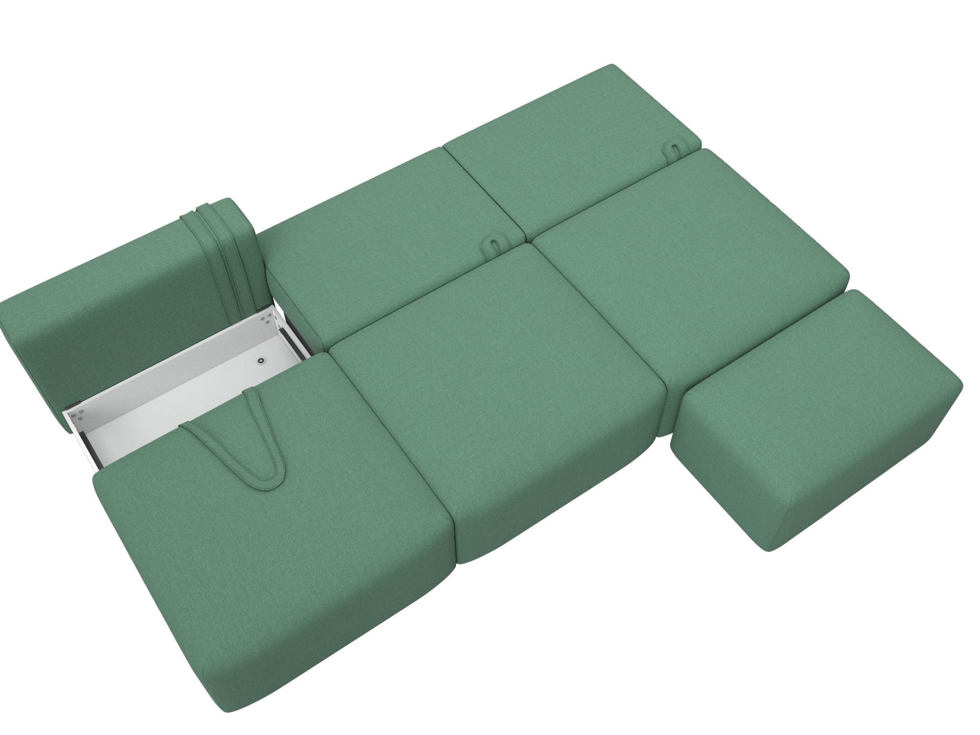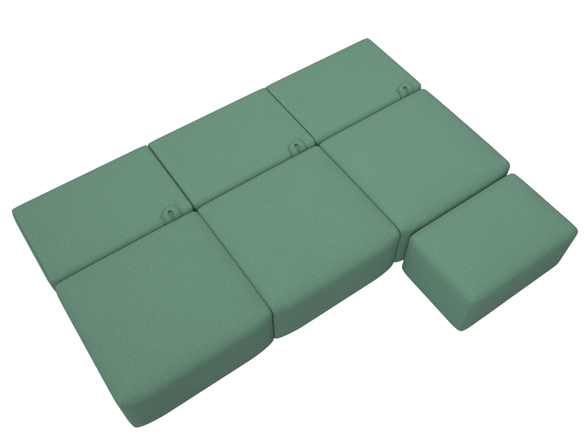 Диван прямой модульный с пуфом Лига-060 НПБ Лонг, Амур 11 зеленый, Рогожка
