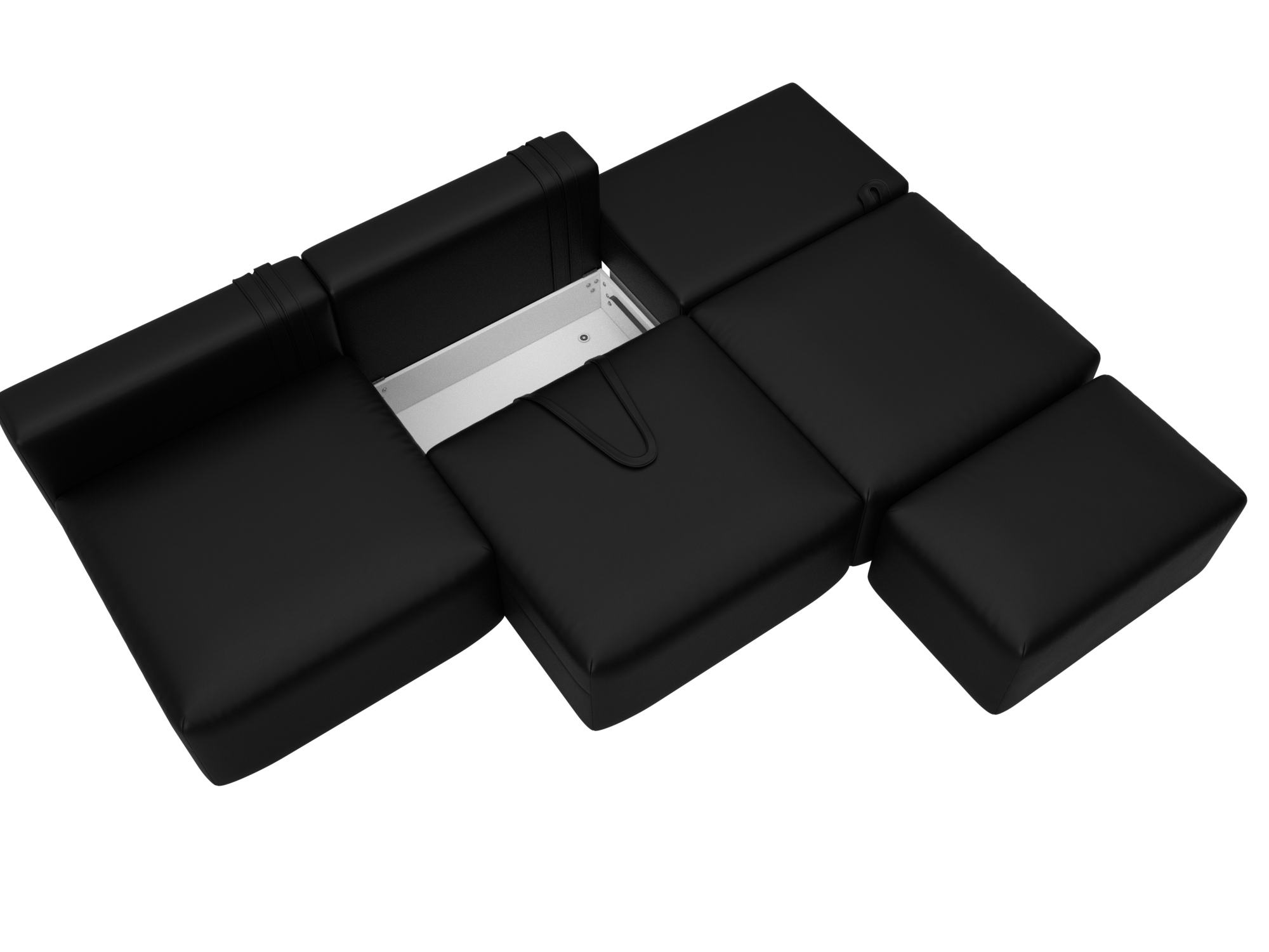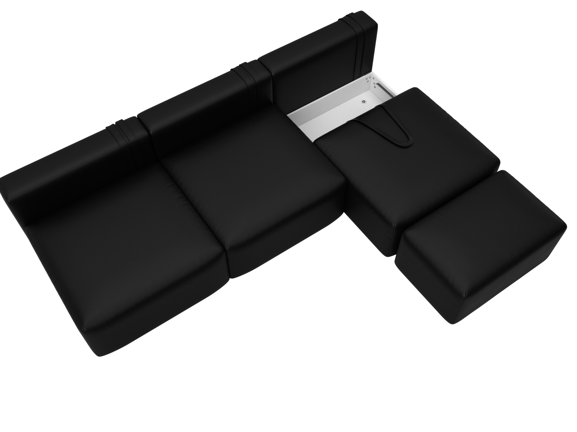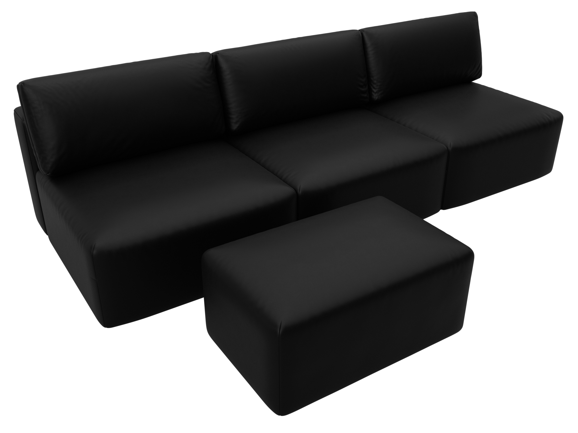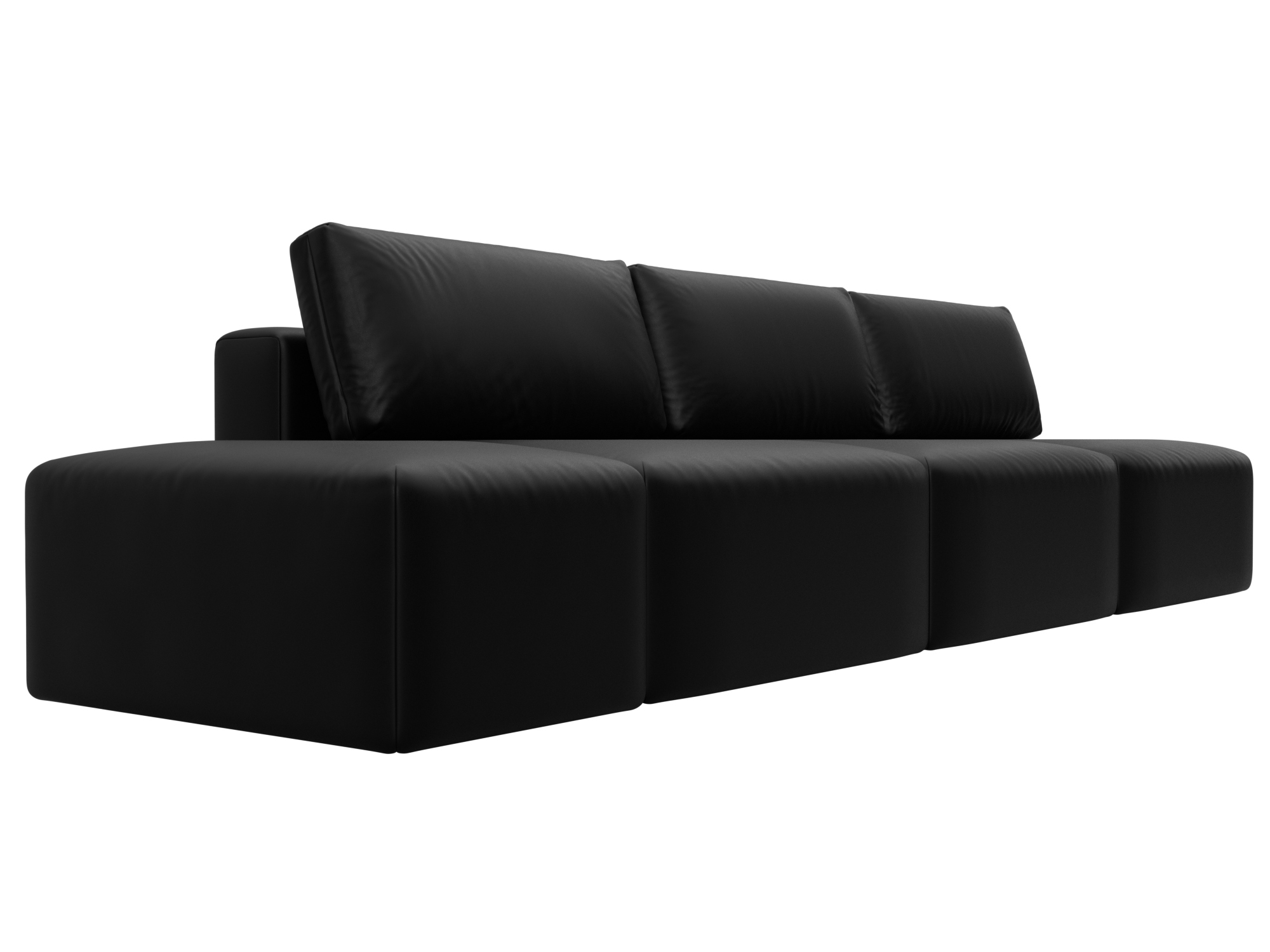 Диван прямой модульный с пуфом Лига-060 НПБ Лонг, GRIFON 18 черный, Экокожа