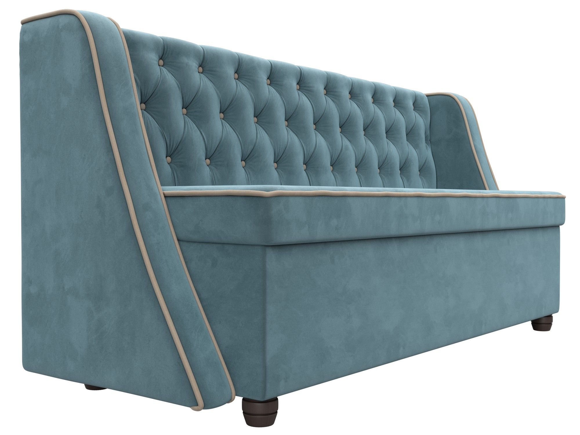 Диван кухонный прямой Лофт Бирюзовый\Бежевый, Велюр