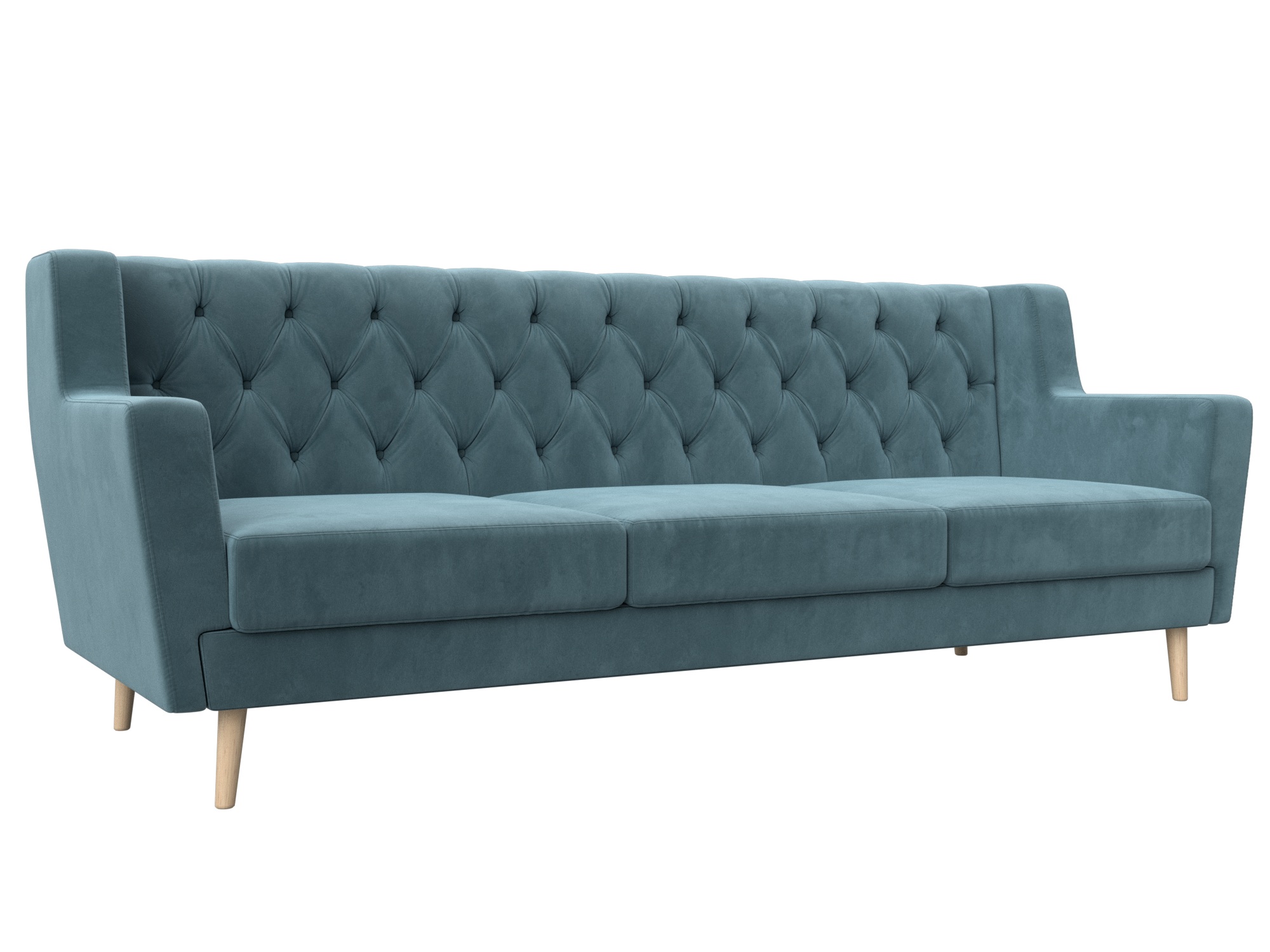 Диван кухонный прямой Брайтон 3 Люкс Бирюзовый, Велюр
