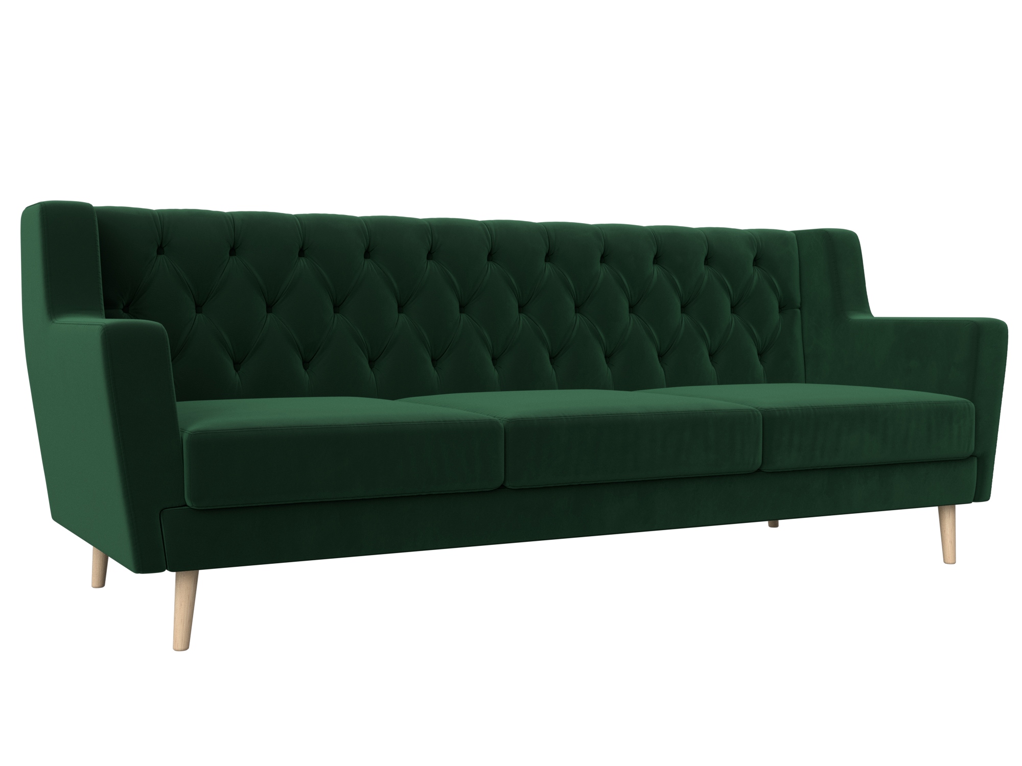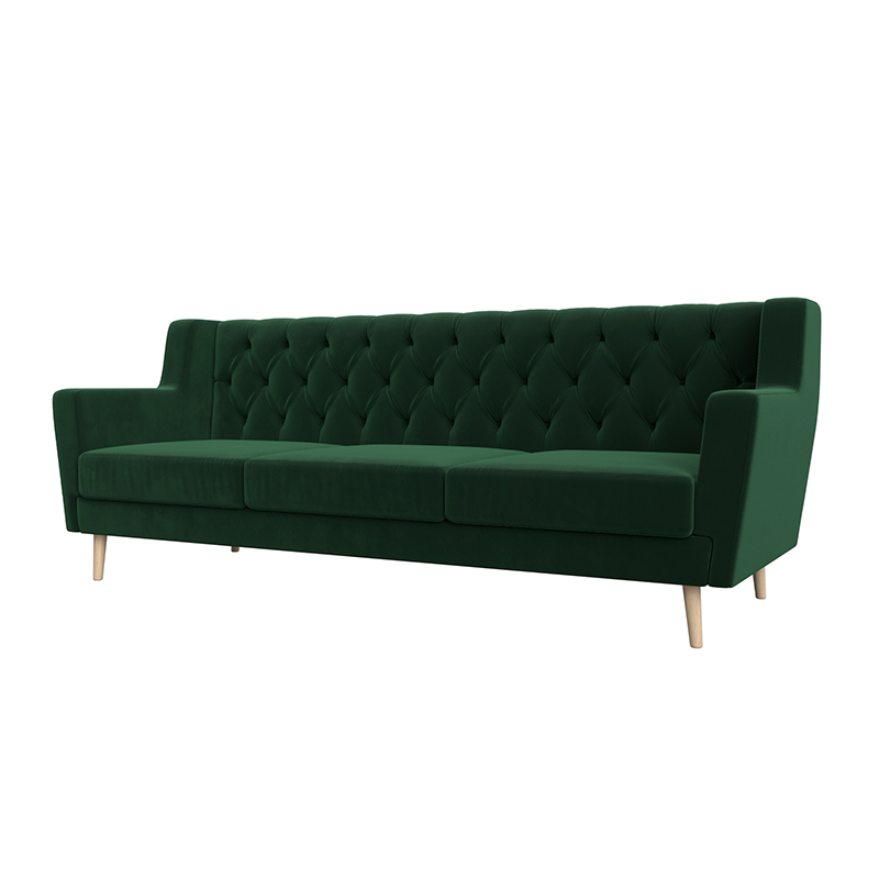 Диван кухонный прямой Брайтон 3 Люкс Зеленый, Велюр