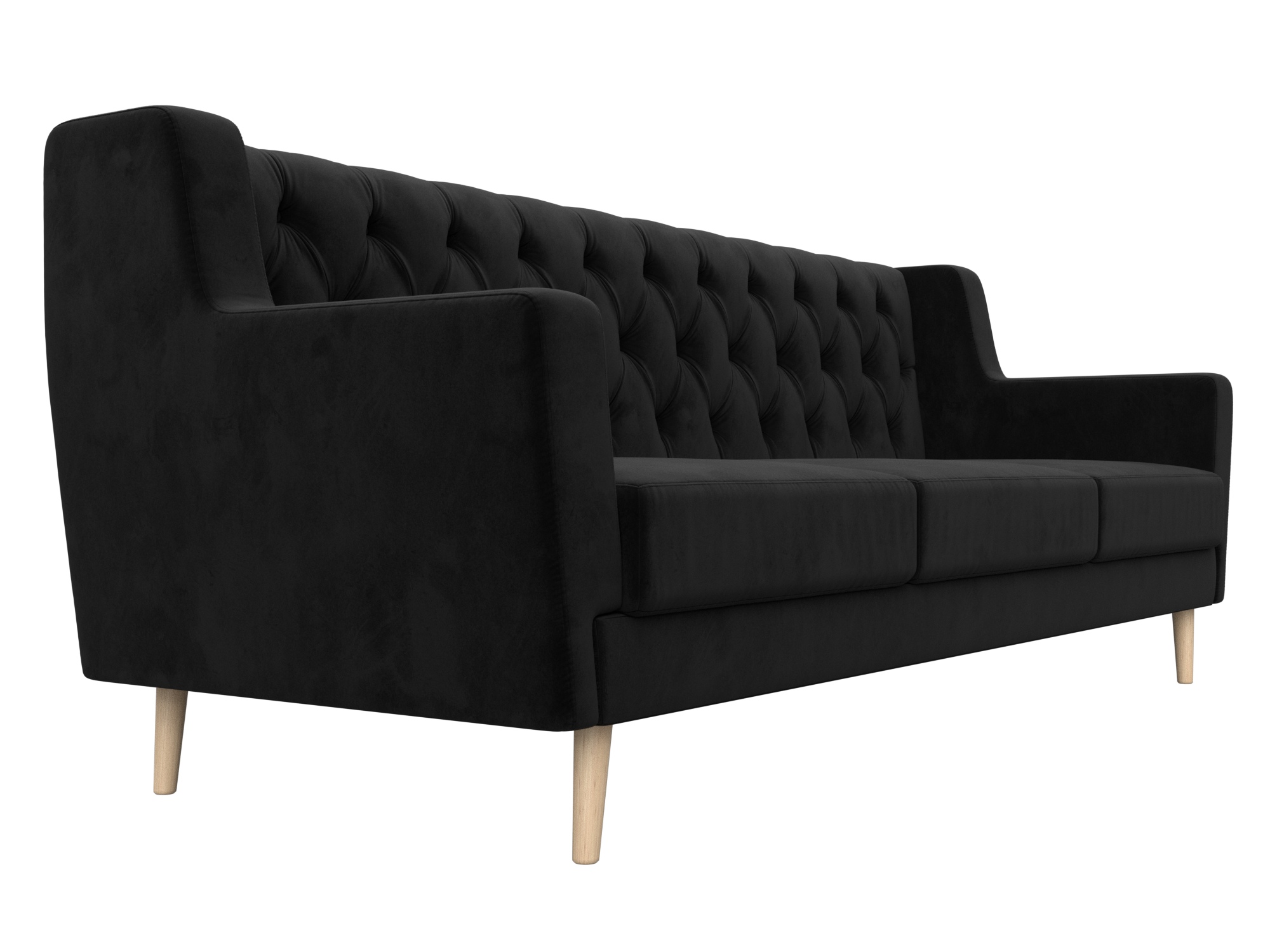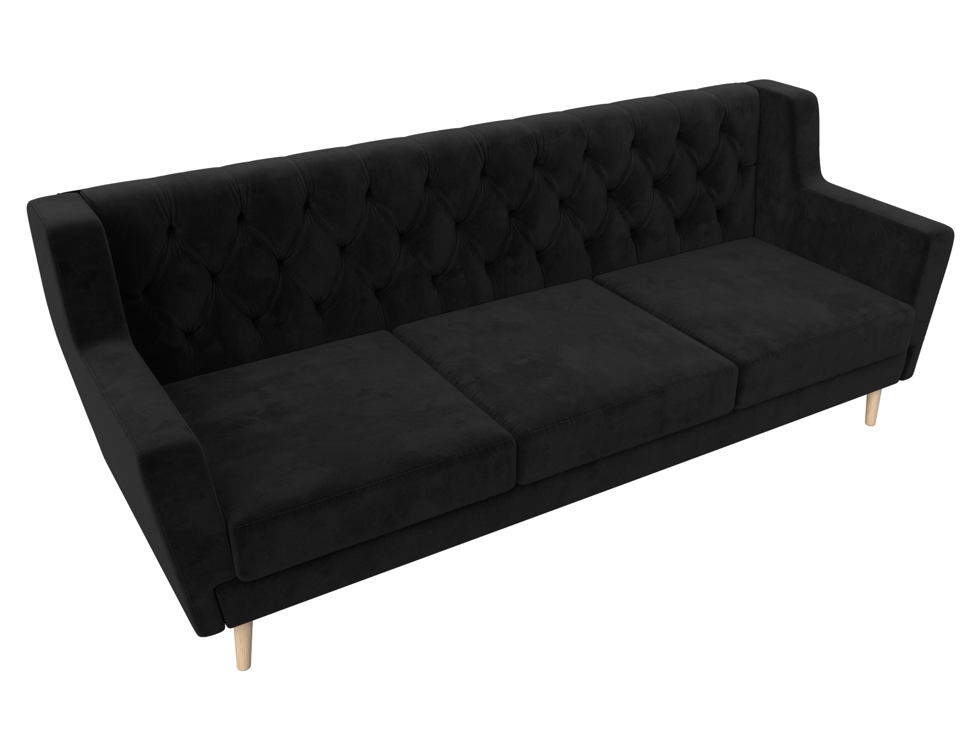 Диван кухонный прямой Брайтон 3 Люкс Черный, Велюр