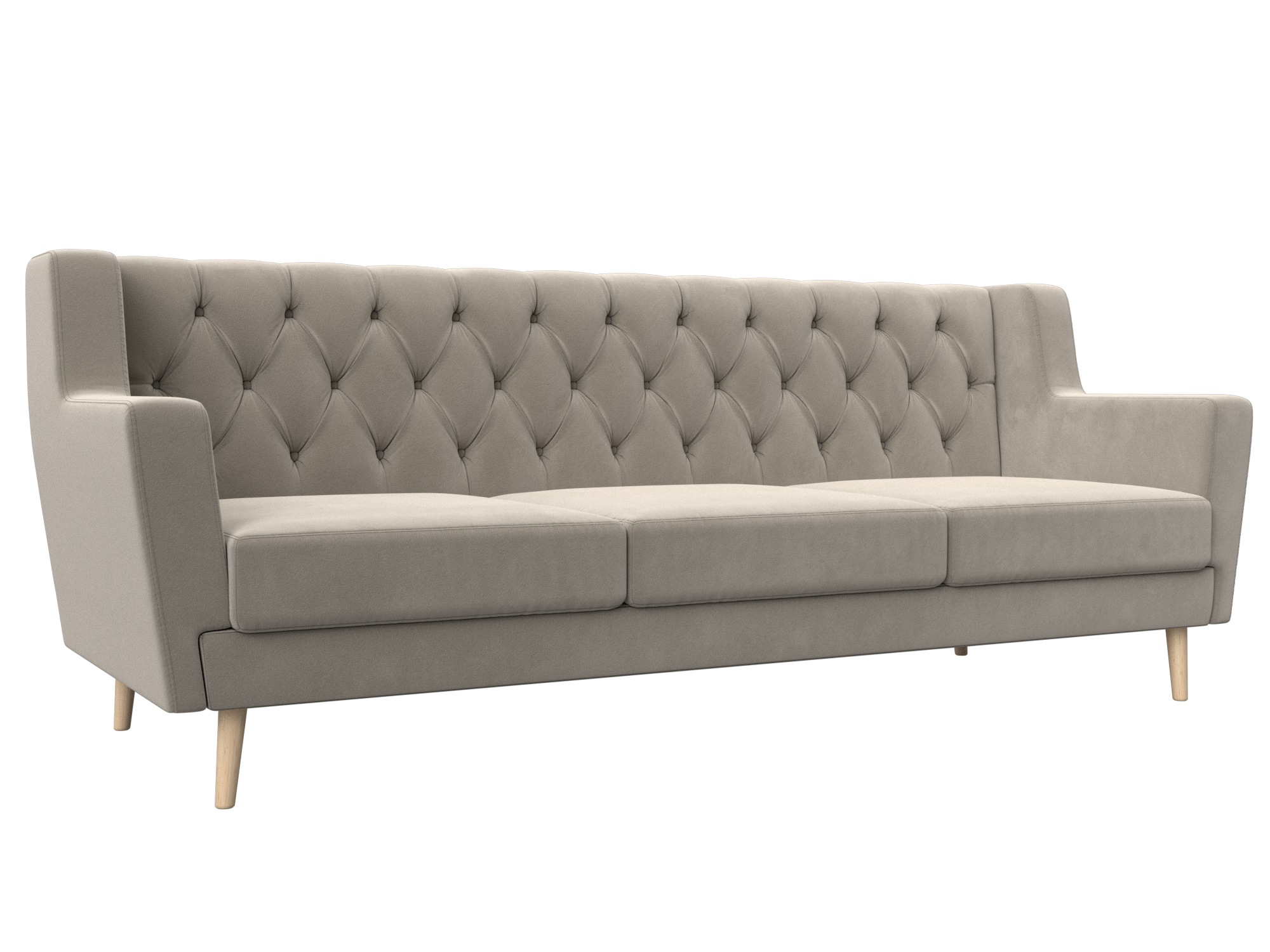 Диван кухонный прямой Брайтон 3 Люкс Бежевый, Микровельвет