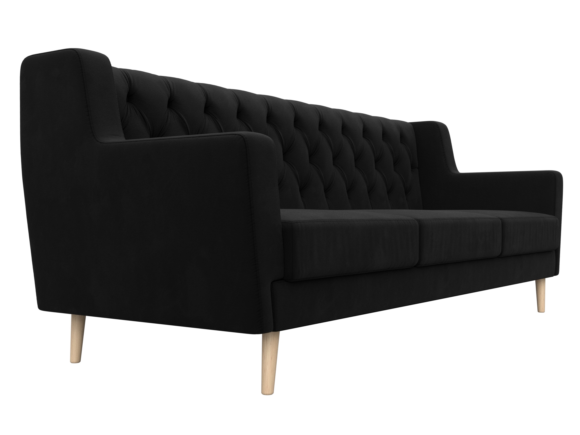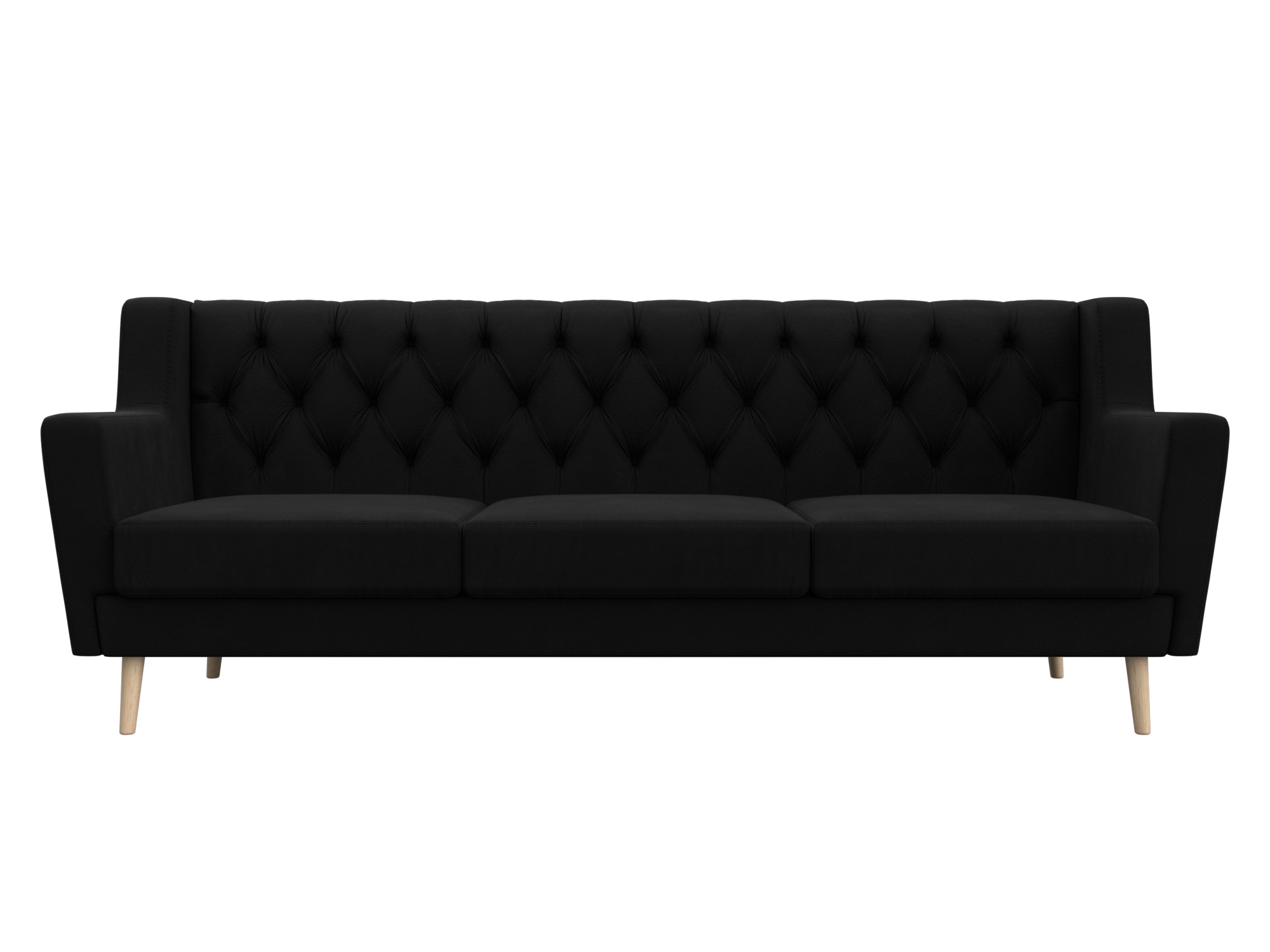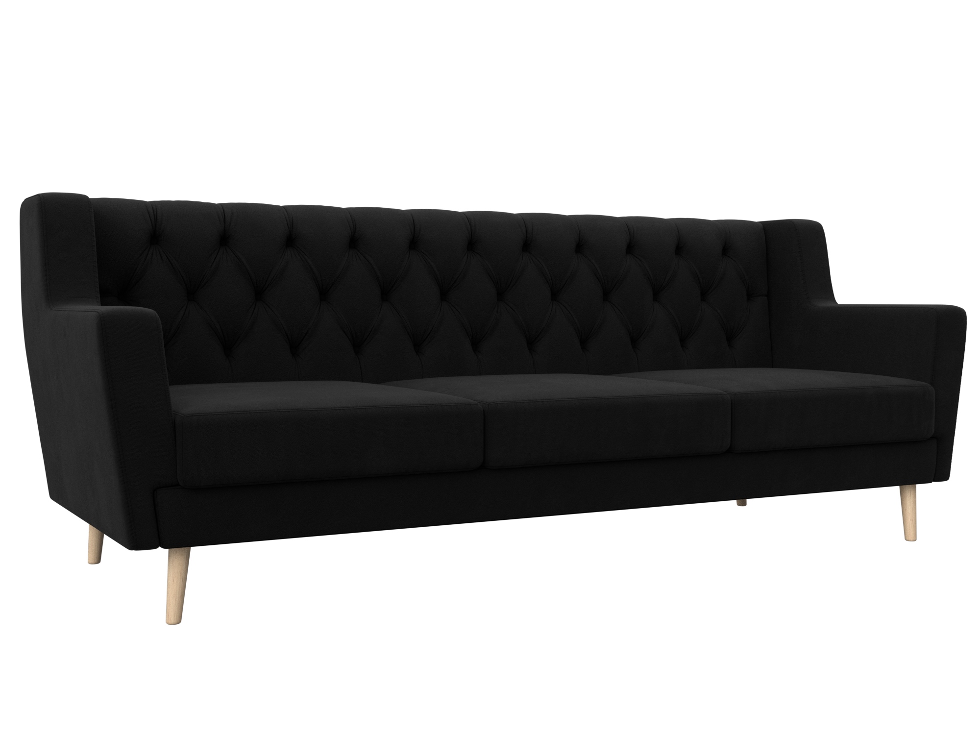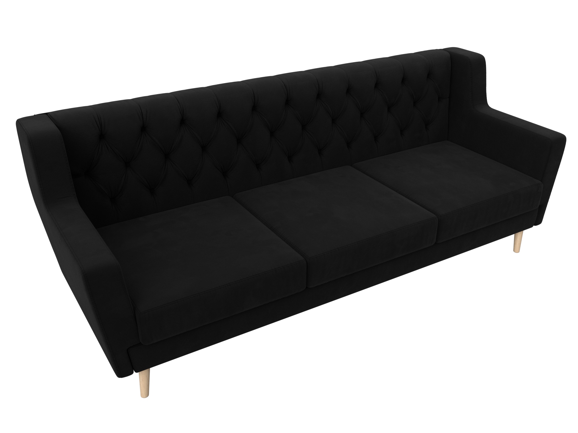 Диван кухонный прямой Брайтон 3 Люкс Черный, Микровельвет