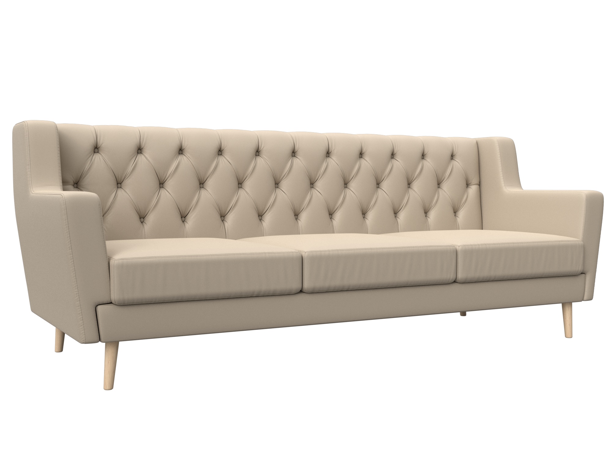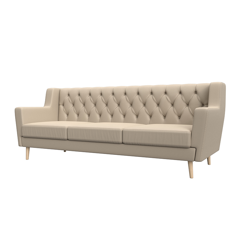 Диван кухонный прямой Брайтон 3 Люкс Бежевый, Экокожа