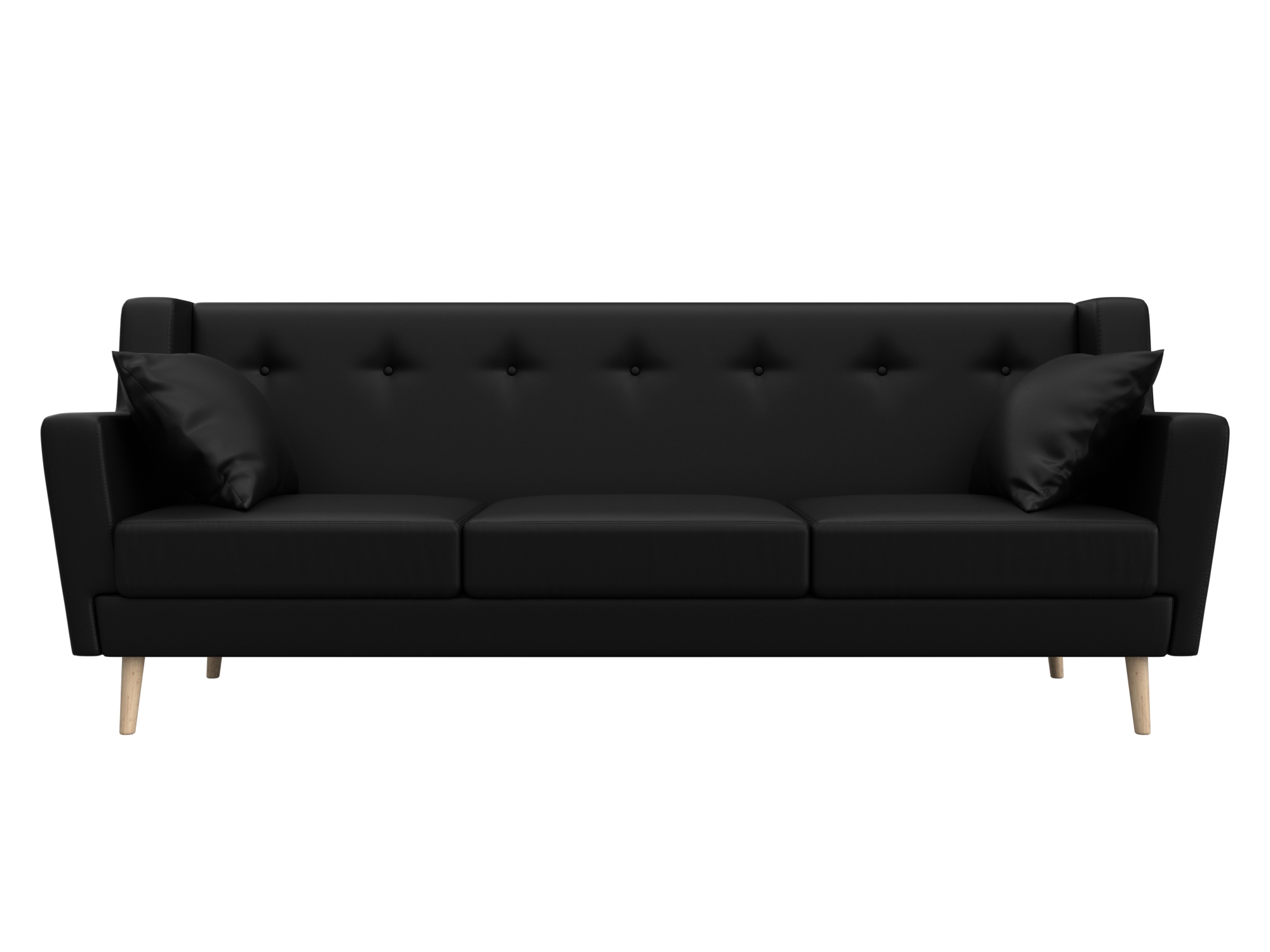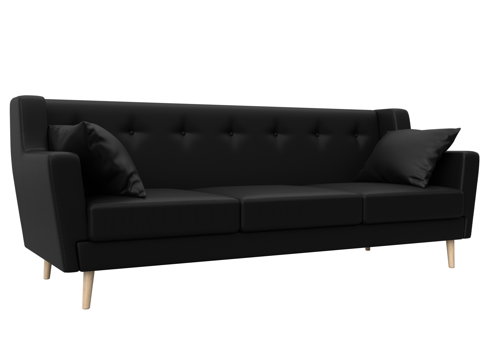 Диван кухонный прямой Брайтон 3 Черный, Экокожа
