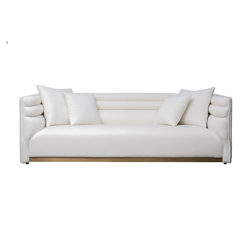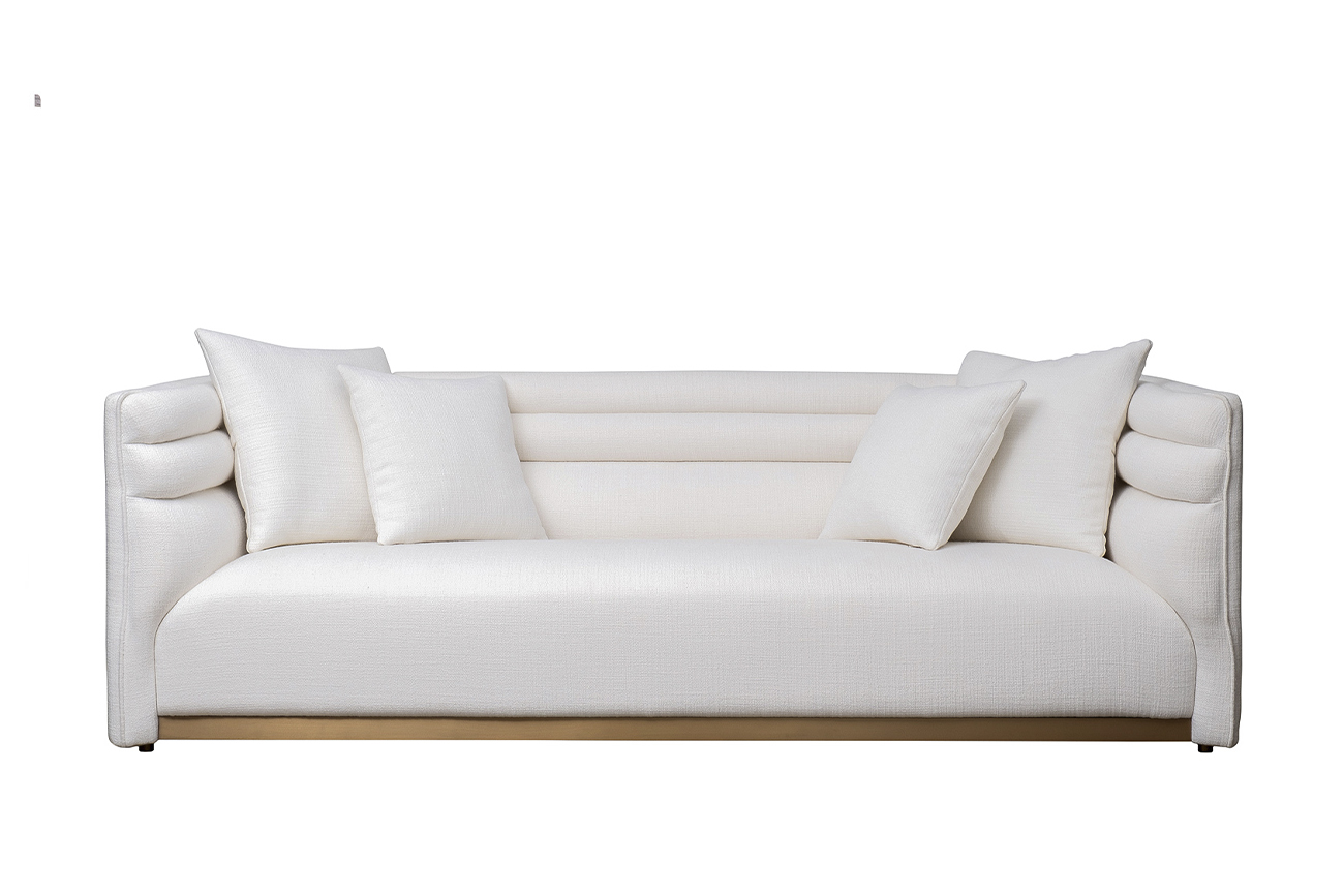 Запросить индивидуальное предложениеДиван трехместный TOLEDO без механизма трансформации.Диван на фото выполнен в ткани из коллекции Garda Decor- рогожка Norton SVBEG.В комплект дивана входят декоративные подушки 48*48см- 2шт, декоративные подушки 56*56см с клапаном-2шт. Габариты дивана: ширина-232,5см, глубина- 97см, высота-77см. Глубина посадочного места- 79см, высота сиденья- 42см. Опоры-металл (латунь)-35мм, латунный цоколь.