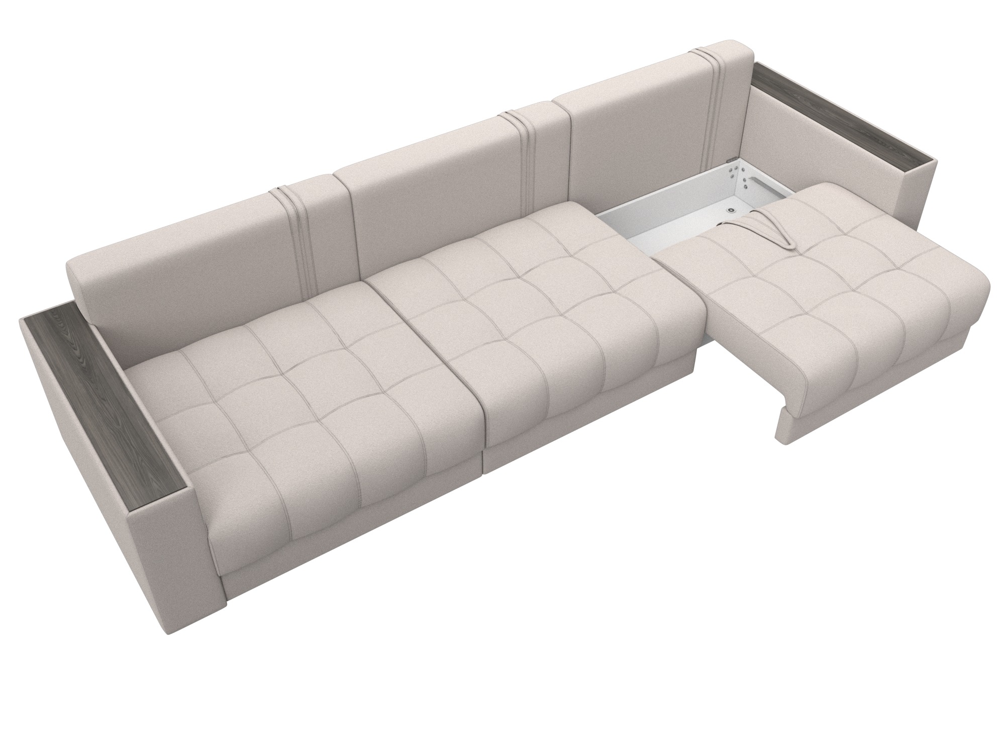 Диван прямой с декором Лига-049 НПБ Лонг, JOLY 05 бежевый, Замша