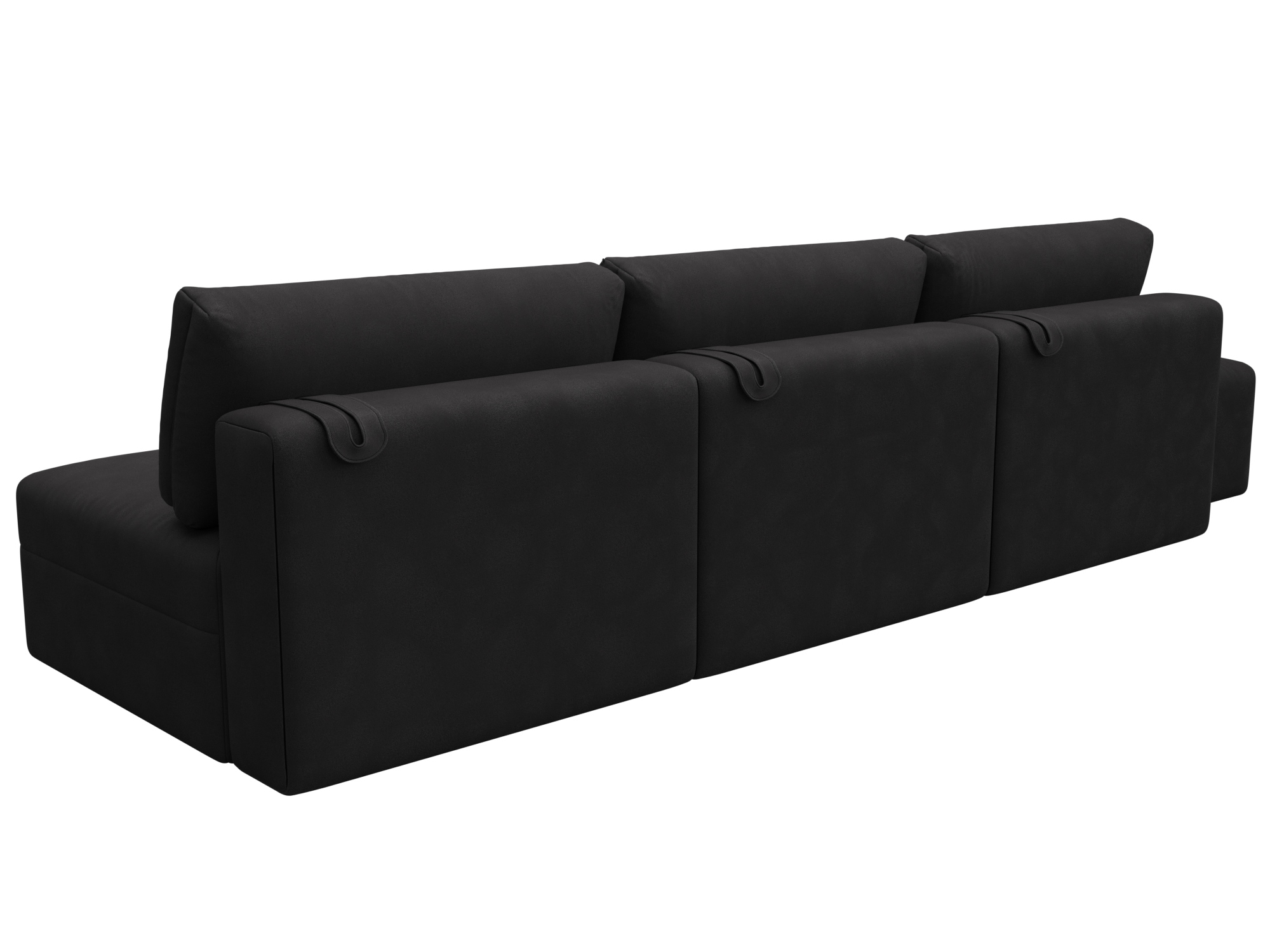 При габаритах: 367x84x118 см подойдет для комнат любых размеров, модули легко раскладываются, обеспечивая 2 спальных места для 3-х человек размерами 160x200 см и 100х227см.