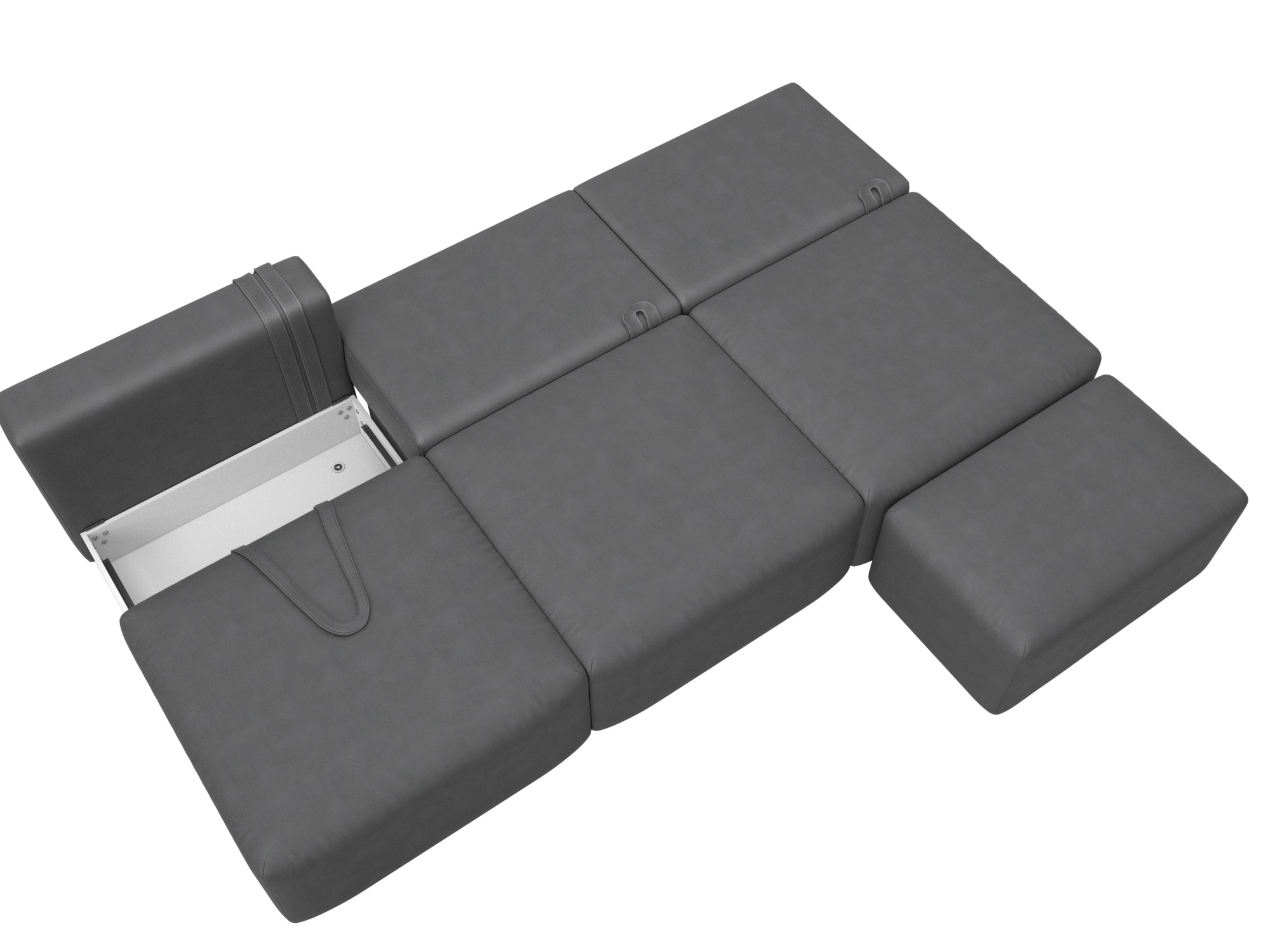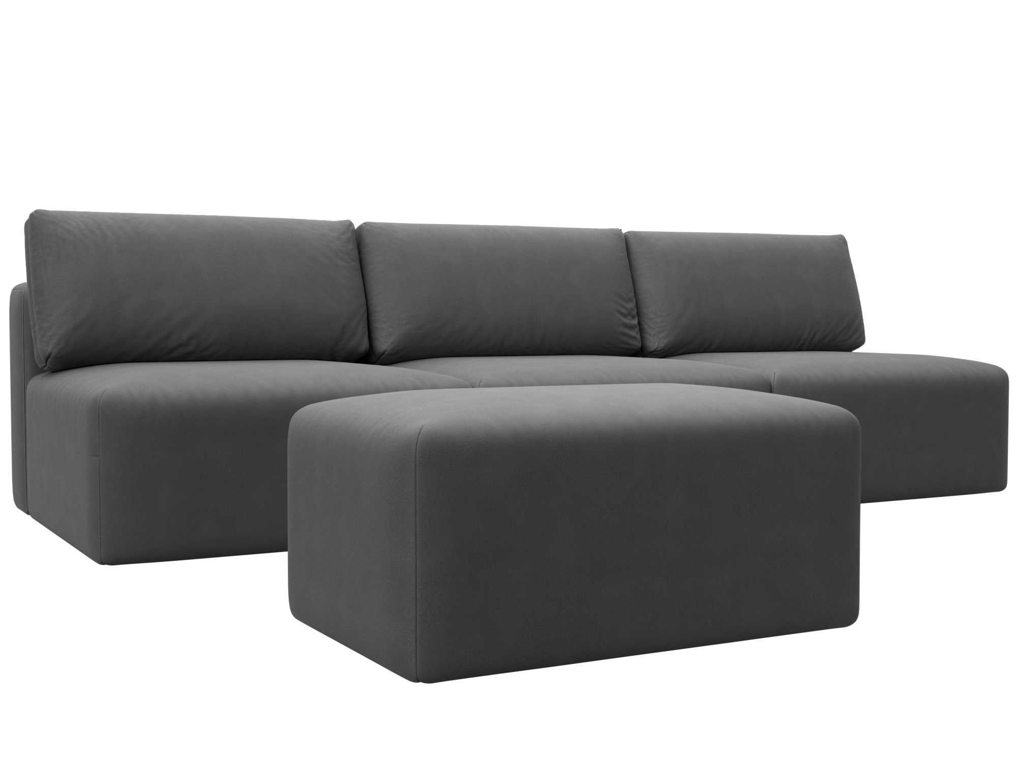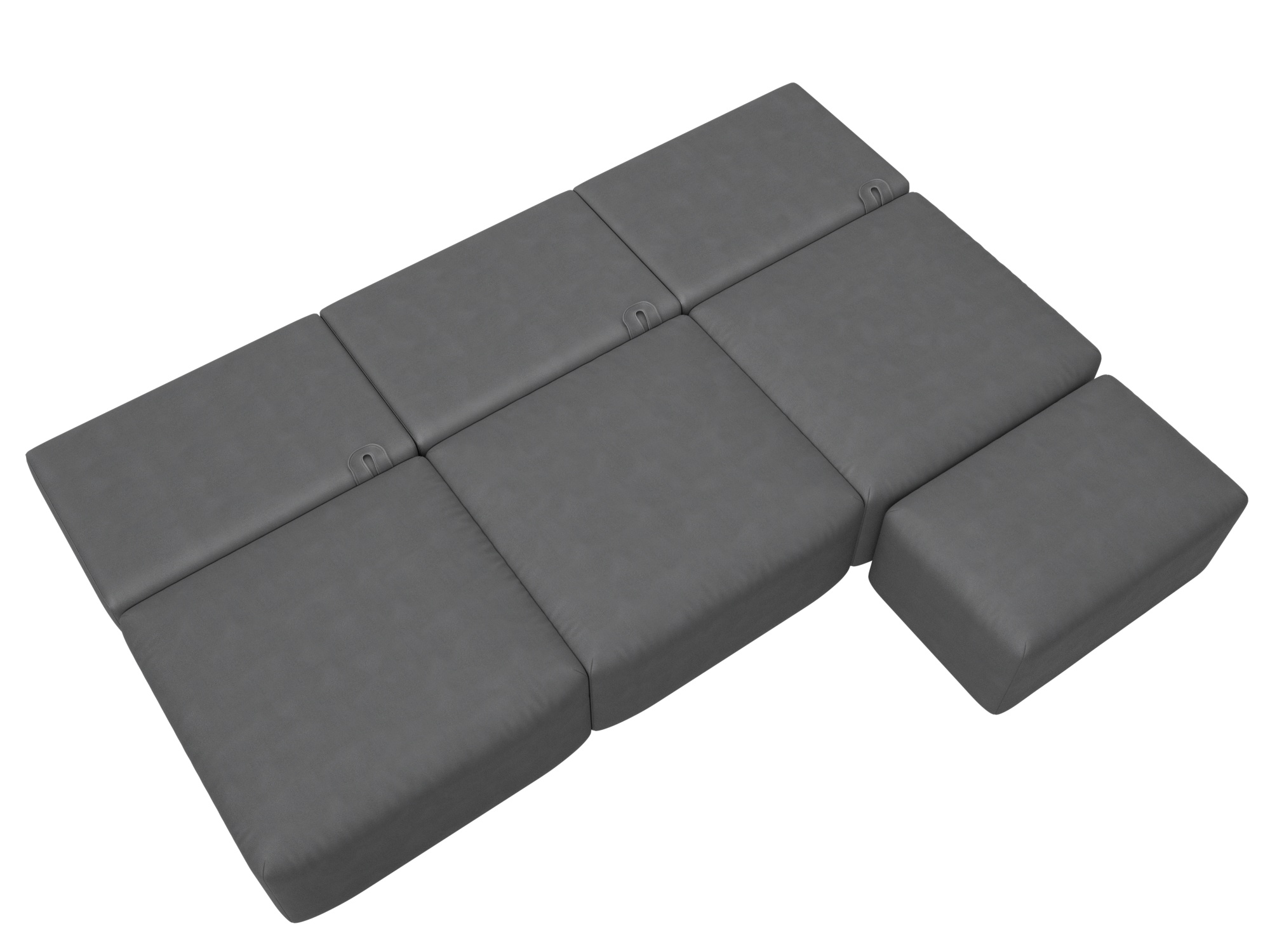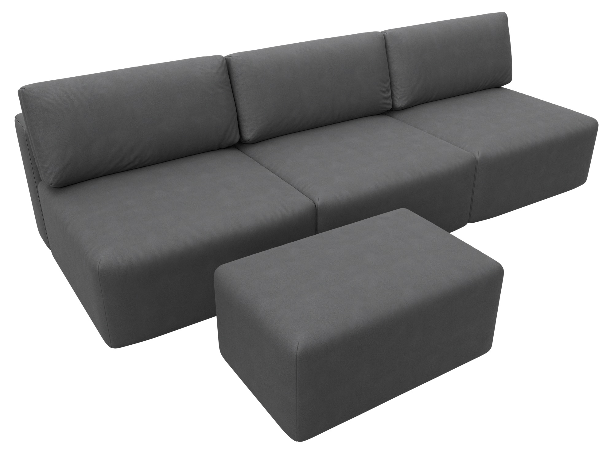 Диван прямой модульный с пуфом Лига-060 НПБ Лонг, JOLY 13 серый, Замша