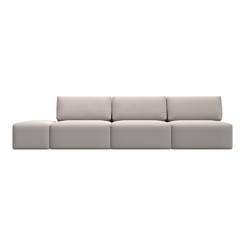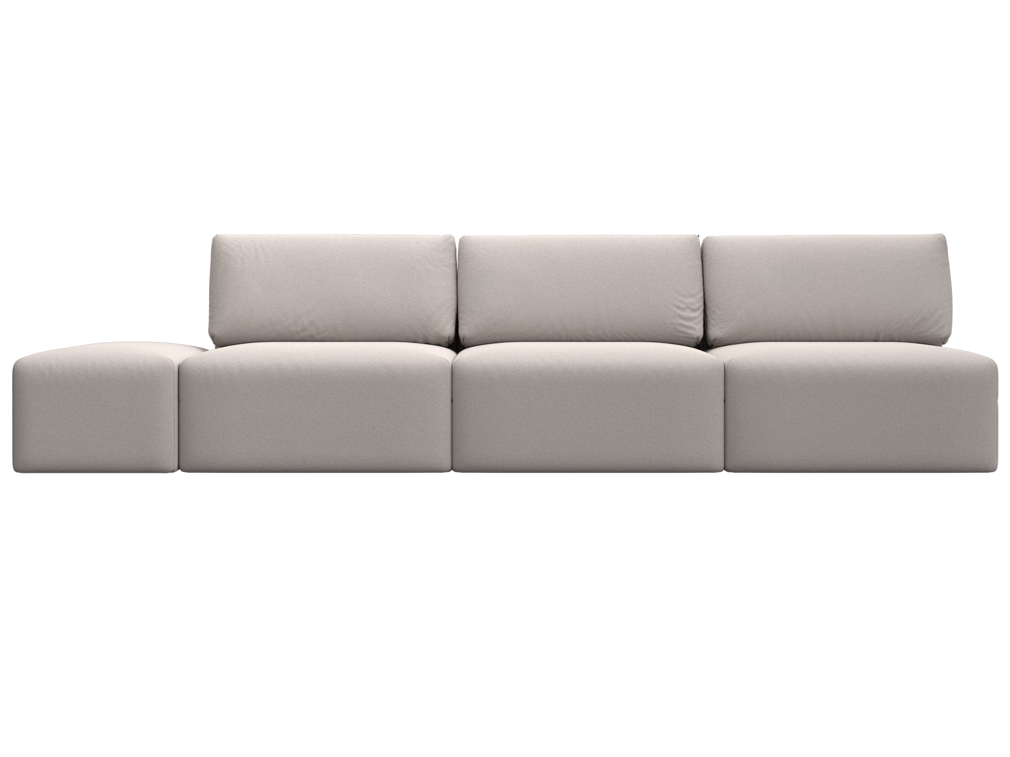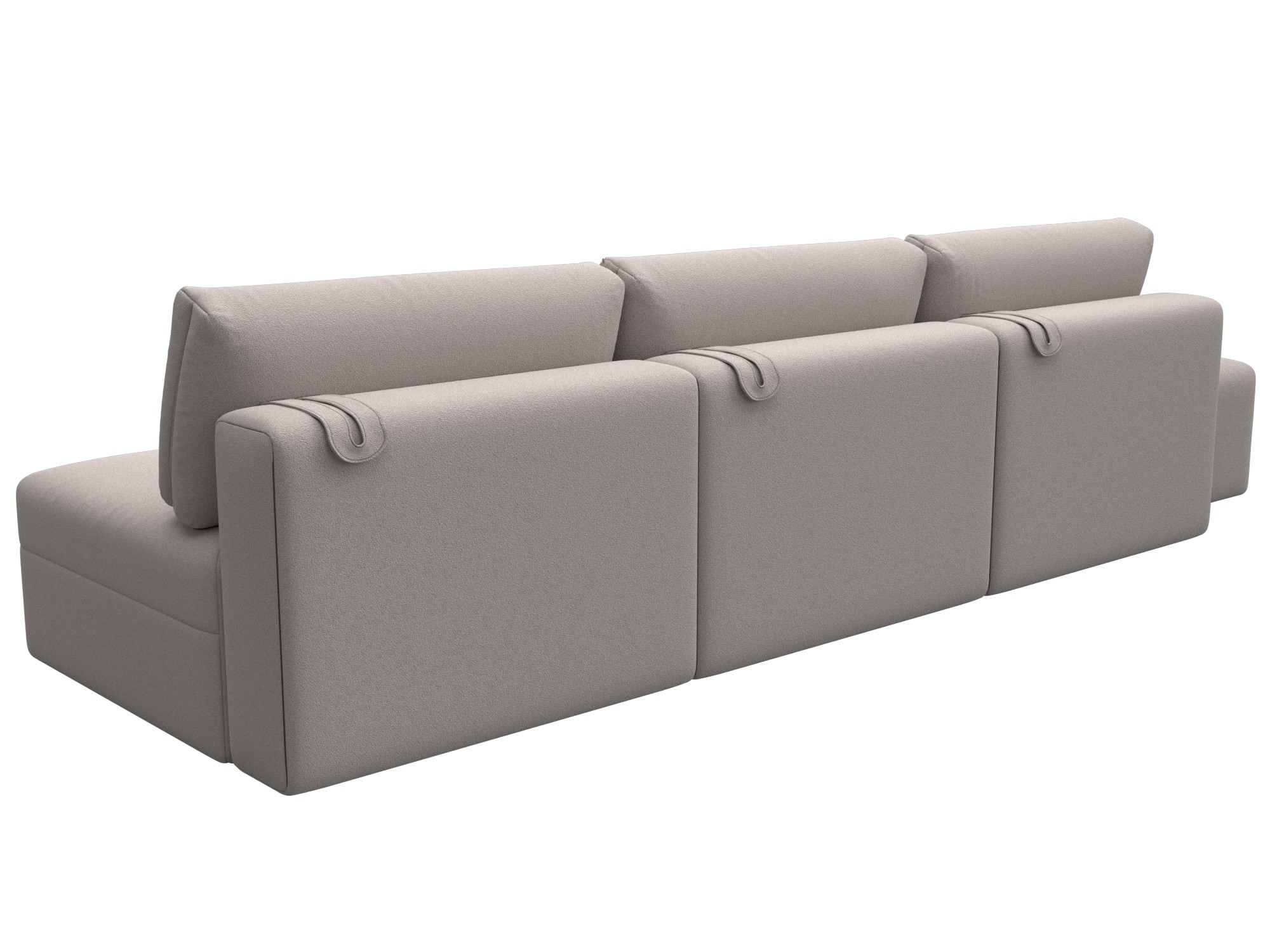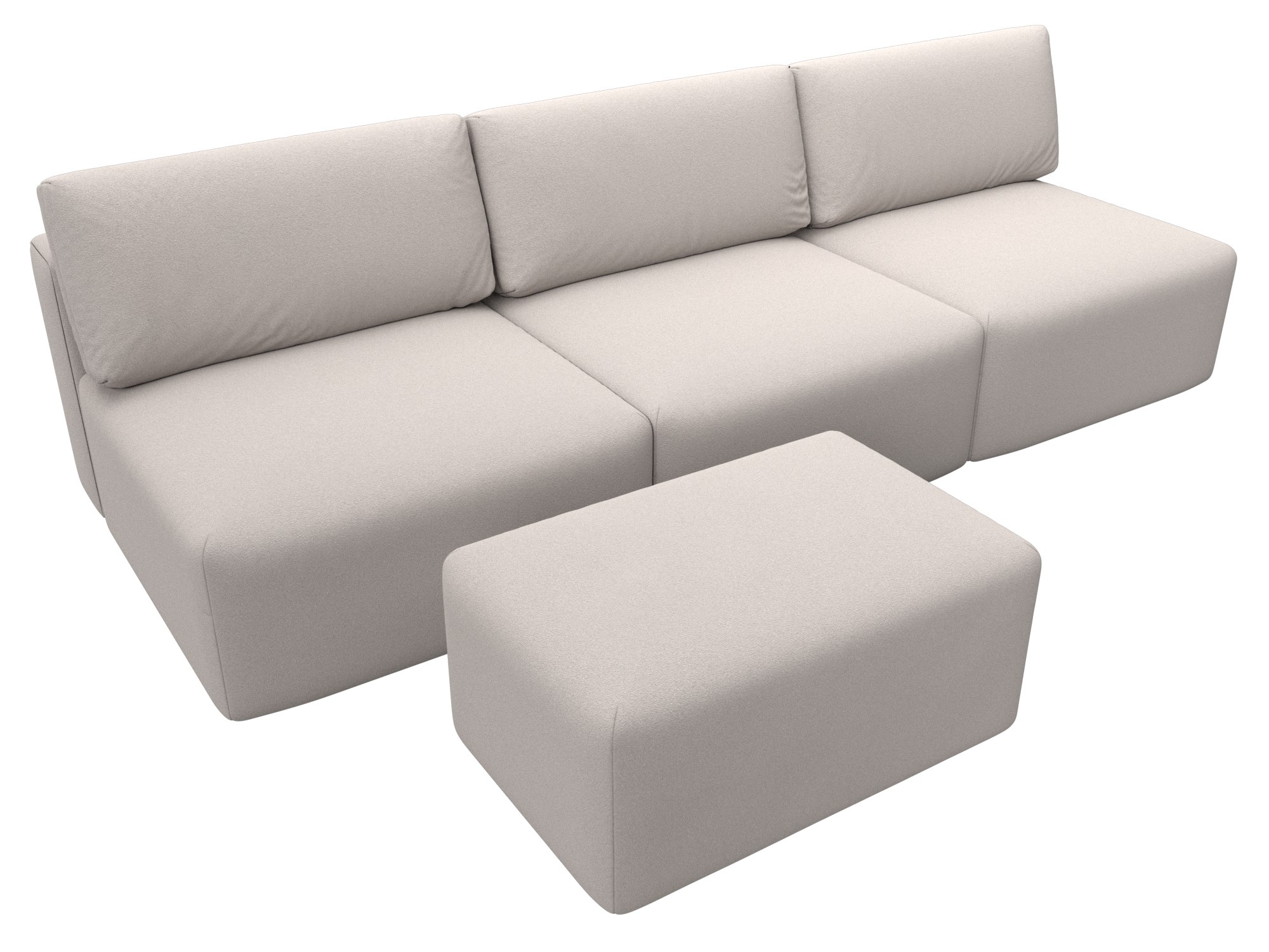 Диван прямой модульный с пуфом Лига-060 НПБ Лонг, JOLY 05 бежевый, Замша