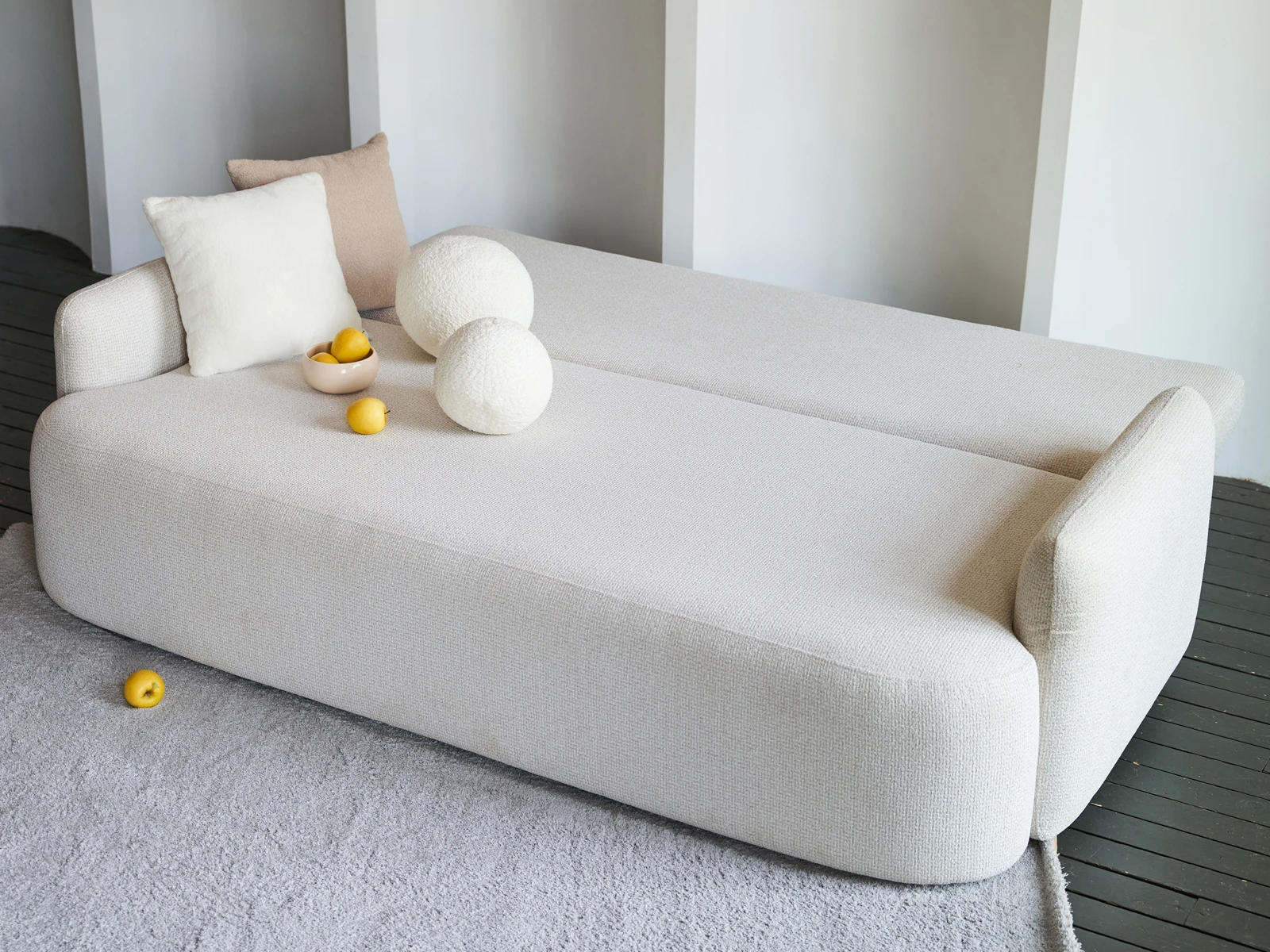 Компактные подлокотники придают модели аккуратный внешний вид, а также позволяют сэкономить пространство в комнате. Плавная геометрия подчеркивает настроение спокойствия. Закругленные элементы добавляют эргономики. Фактурная обивка отвечает за уют и тактильность. Диван подружится с разными компаньонами — пуфами, креслами, столиками. Идеально подходит для обустройства пространств, где важна рациональность, функциональность и эстетика.