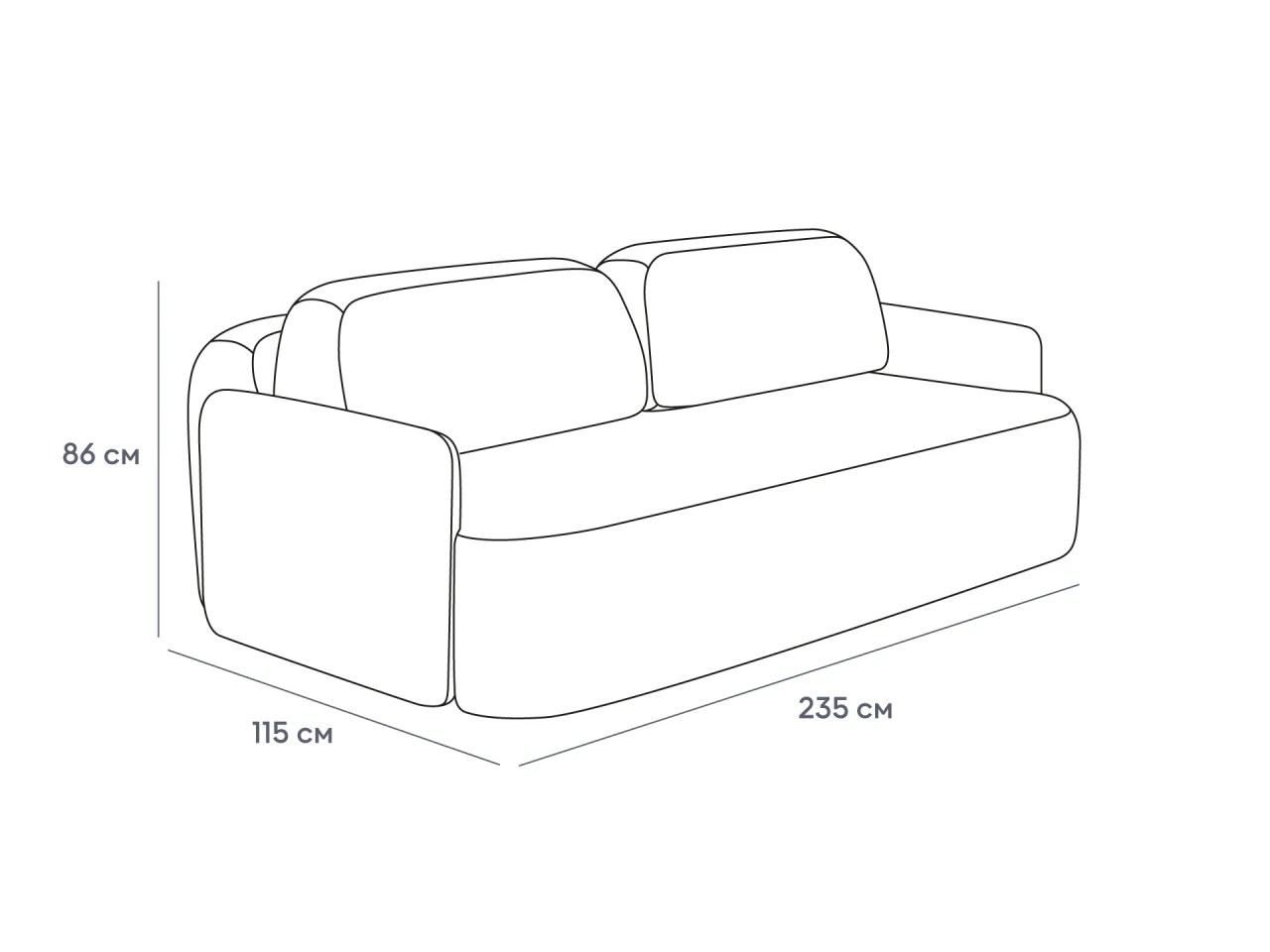 Прираскладывании диван трансформируется в кровать с размером спального места 2150х1660 мм.