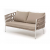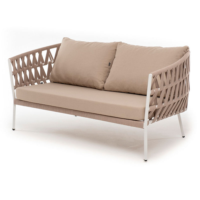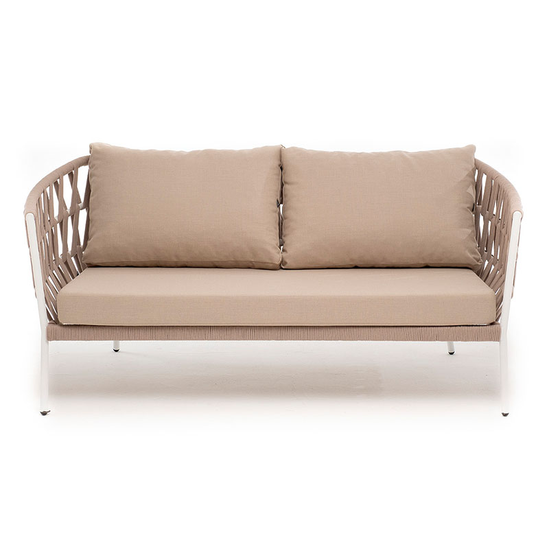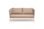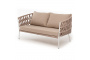 "Диего" диван 2-местный плетеный из роупа, каркас алюминий светло-серый (RAL7035) шагрень, роуп бежевый круглый, ткань бежевая 15052