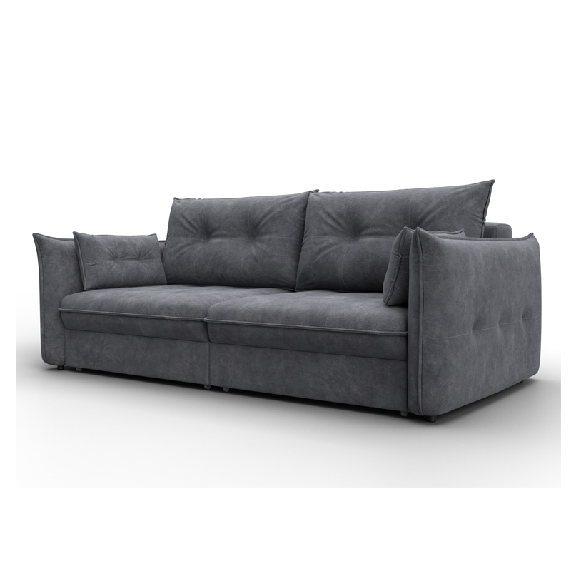 В сочетании с верхним слоем из пенополиуретана и блока независимых пружин наполнение дивана получается достаточно мягким, чтобы сделать посадку комфортной. Конструкция легко выдержит значительные нагрузки, сохраняя форму. Эксплуатация бесшумная. Верхняя мебельная ткань имеет эффектный внешний вид и отличается простотой в уходе. - Компактность
