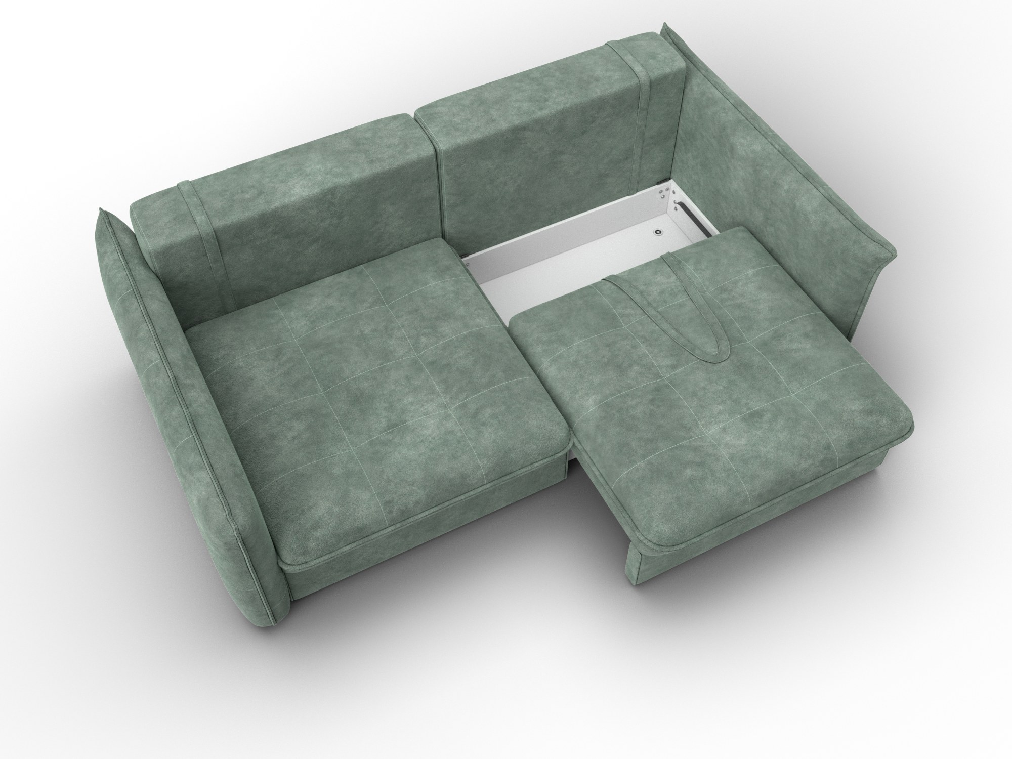 В сочетании с верхним слоем из пенополиуретана и блока независимых пружин наполнение дивана получается достаточно мягким, чтобы сделать посадку комфортной. Конструкция легко выдержит значительные нагрузки, сохраняя форму. Эксплуатация бесшумная. Верхняя мебельная ткань имеет эффектный внешний вид и отличается простотой в уходе. - Компактность