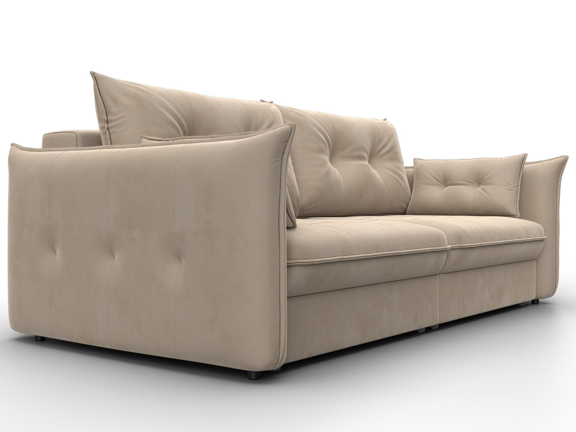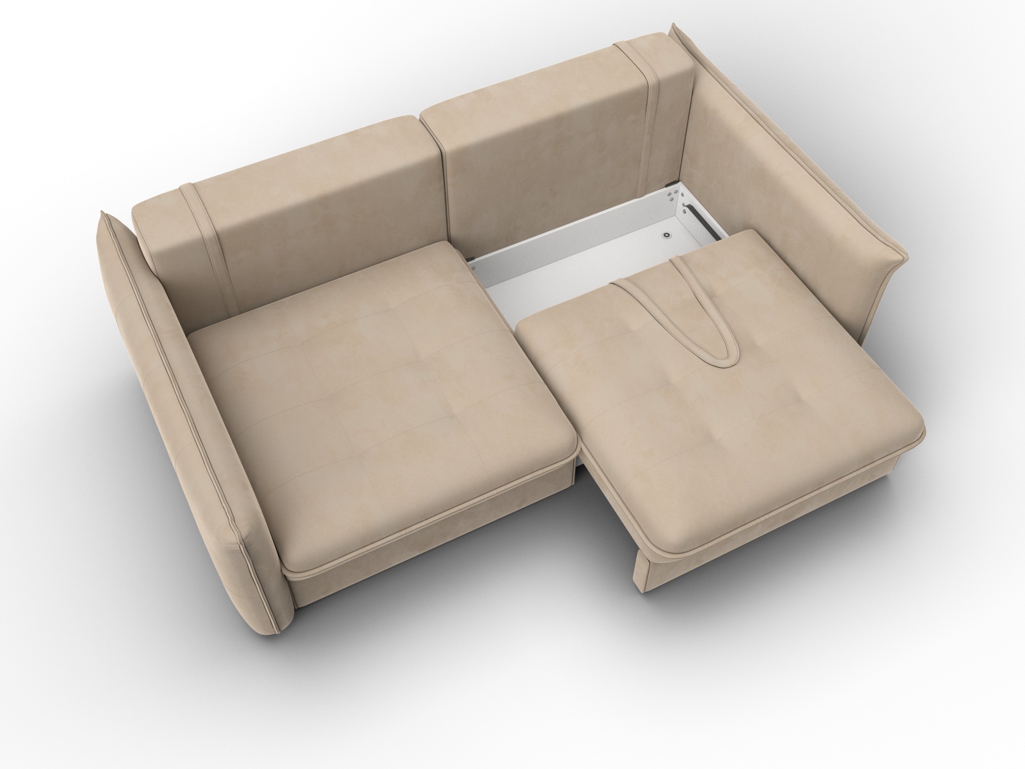 В сочетании с верхним слоем из пенополиуретана и блока независимых пружин наполнение дивана получается достаточно мягким, чтобы сделать посадку комфортной. Конструкция легко выдержит значительные нагрузки, сохраняя форму. Эксплуатация бесшумная. Верхняя мебельная ткань имеет эффектный внешний вид и отличается простотой в уходе. - Компактность