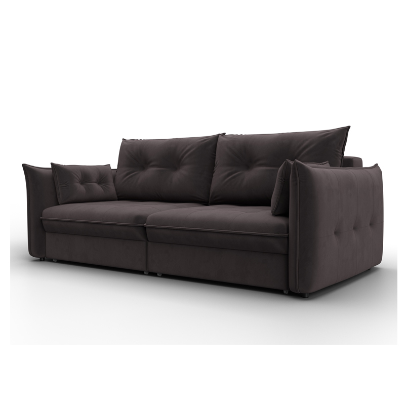 В сочетании с верхним слоем из пенополиуретана и блока независимых пружин наполнение дивана получается достаточно мягким, чтобы сделать посадку комфортной. Конструкция легко выдержит значительные нагрузки, сохраняя форму. Эксплуатация бесшумная. Верхняя мебельная ткань имеет эффектный внешний вид и отличается простотой в уходе. - Компактность