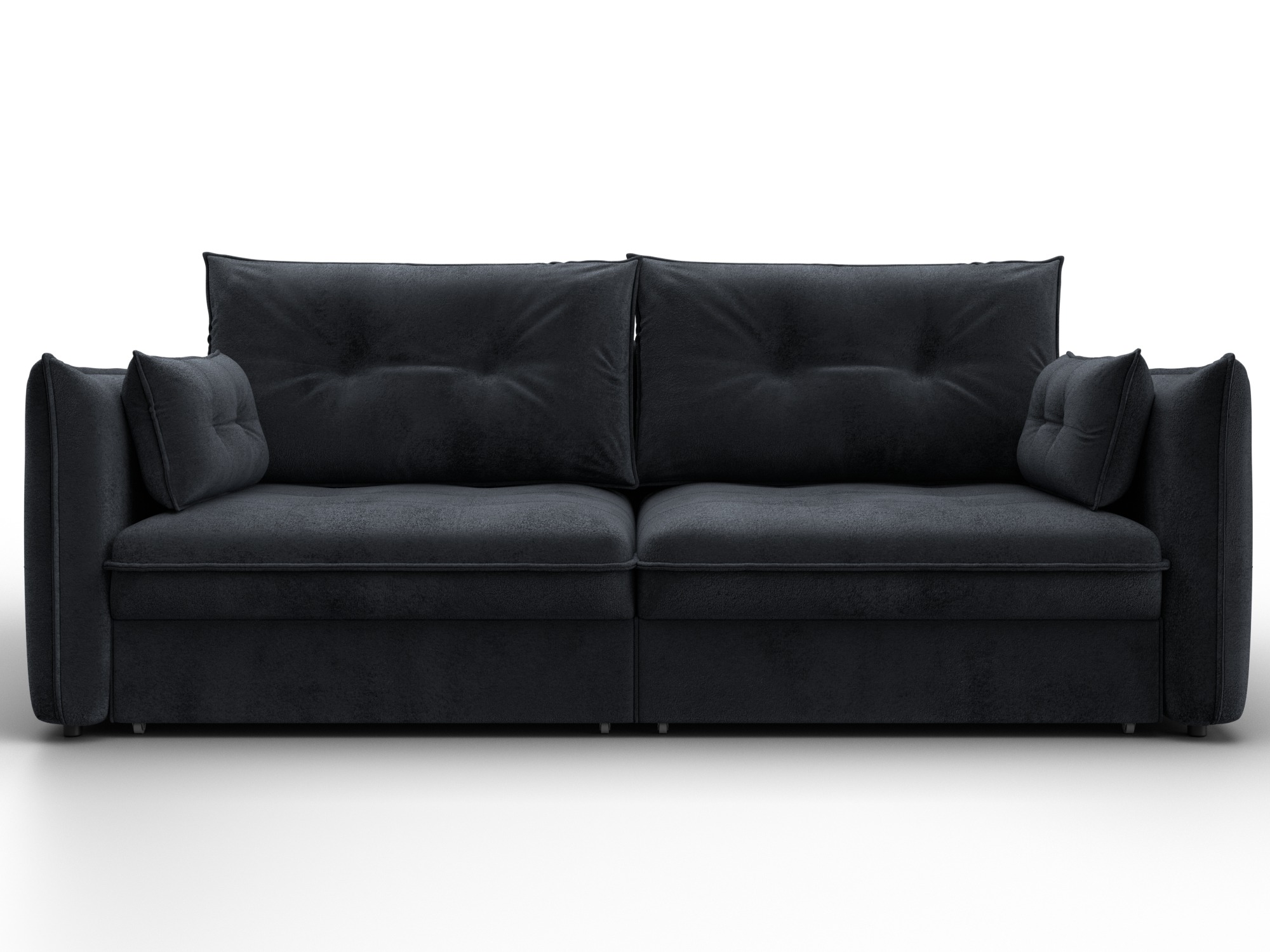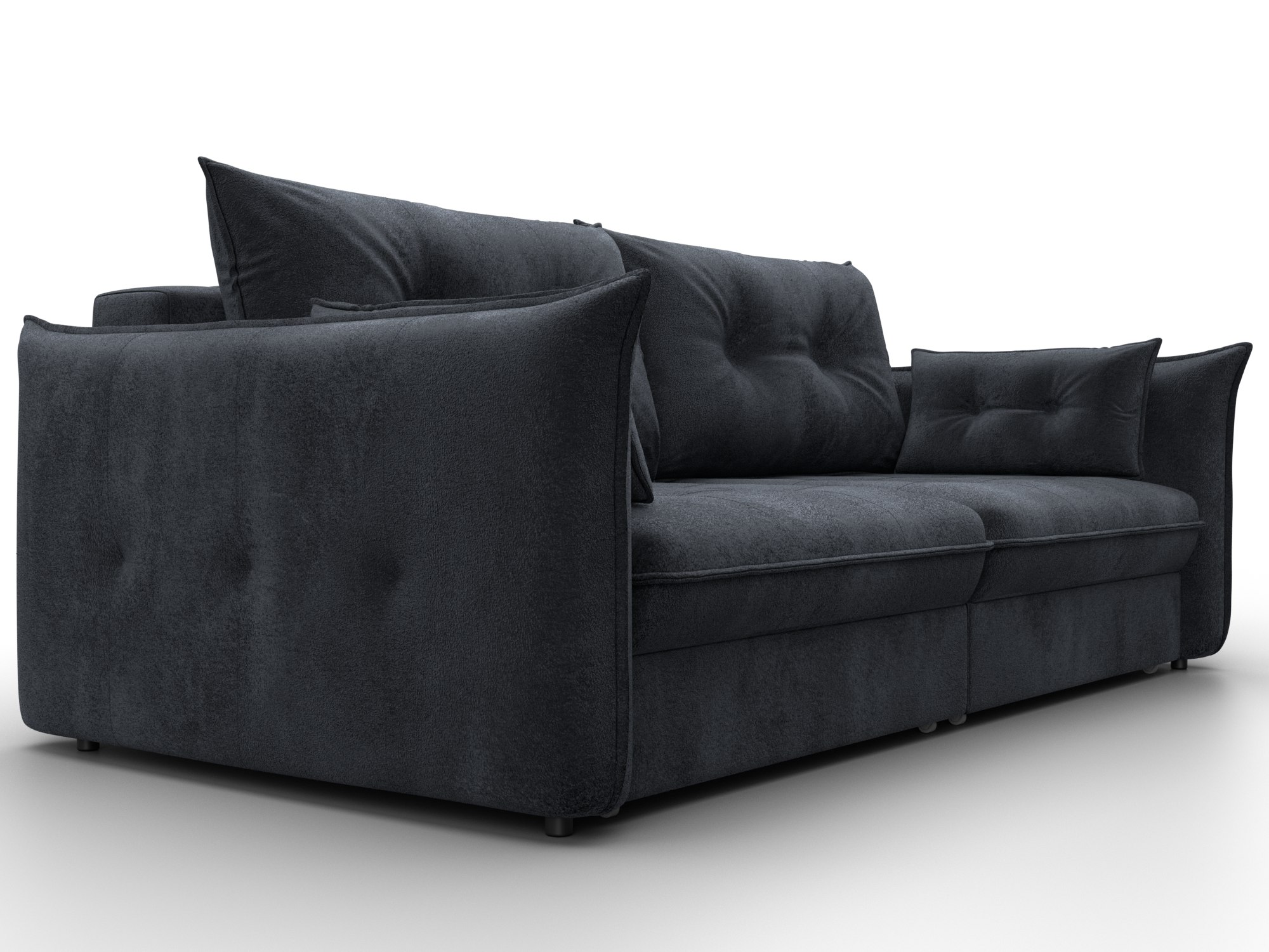 В сочетании с верхним слоем из пенополиуретана и блока независимых пружин наполнение дивана получается достаточно мягким, чтобы сделать посадку комфортной. Конструкция легко выдержит значительные нагрузки, сохраняя форму. Эксплуатация бесшумная. Верхняя мебельная ткань имеет эффектный внешний вид и отличается простотой в уходе. - Компактность
