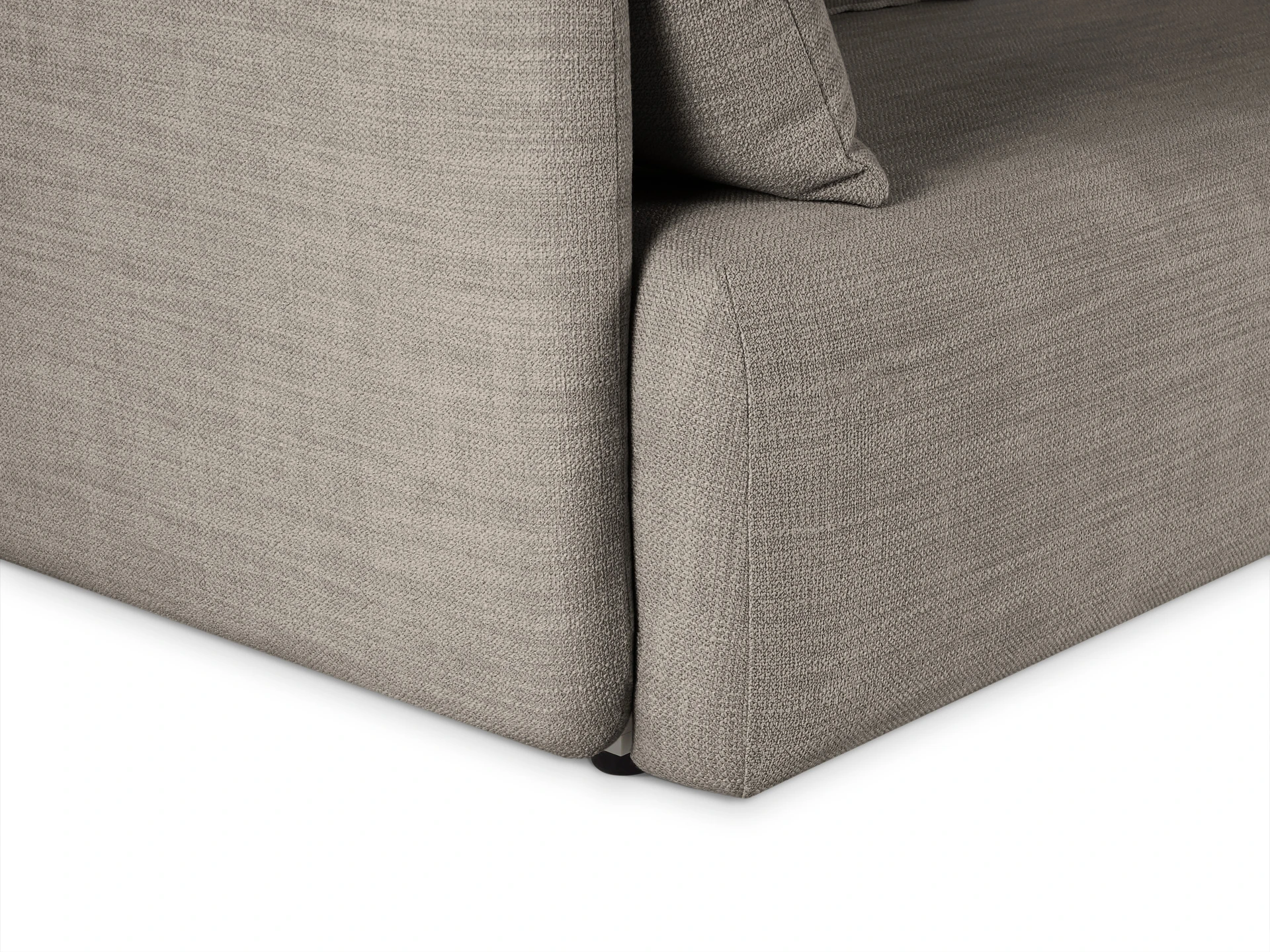 Силуэт модели играет элегантностью и простотой. Плавные линии, закругленные элементы, фактурная обивка, естественные оттенки поддержат высокий уровень комфорта и атмосферу дружелюбного притяжения в вашем пространстве. Диван обрадует просторным и удобным сиденьем, мягкими подушками спинки, подлокотников. Которые расположены практически на одном уровне со спинкой — такая геометрия создаёт ощущение уединённости, защиты.