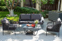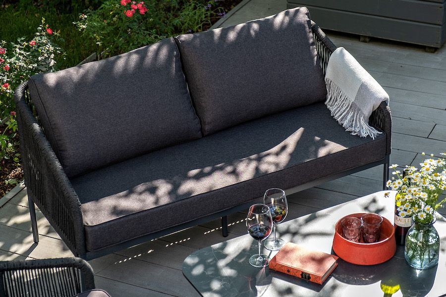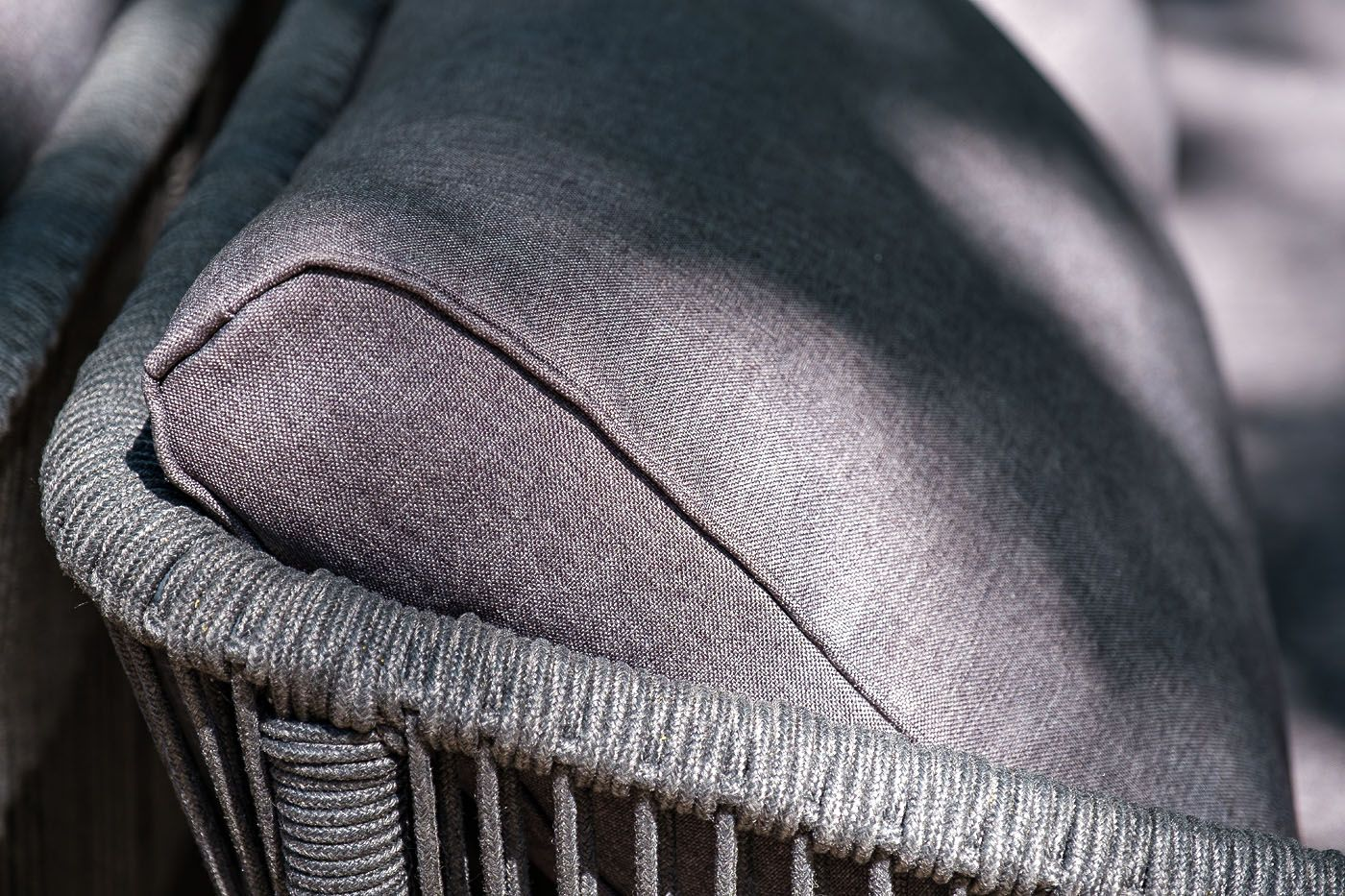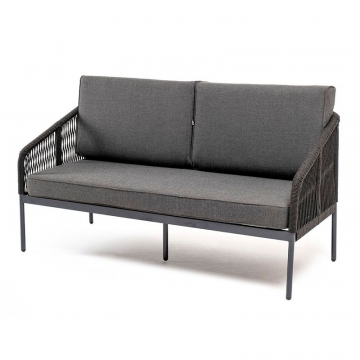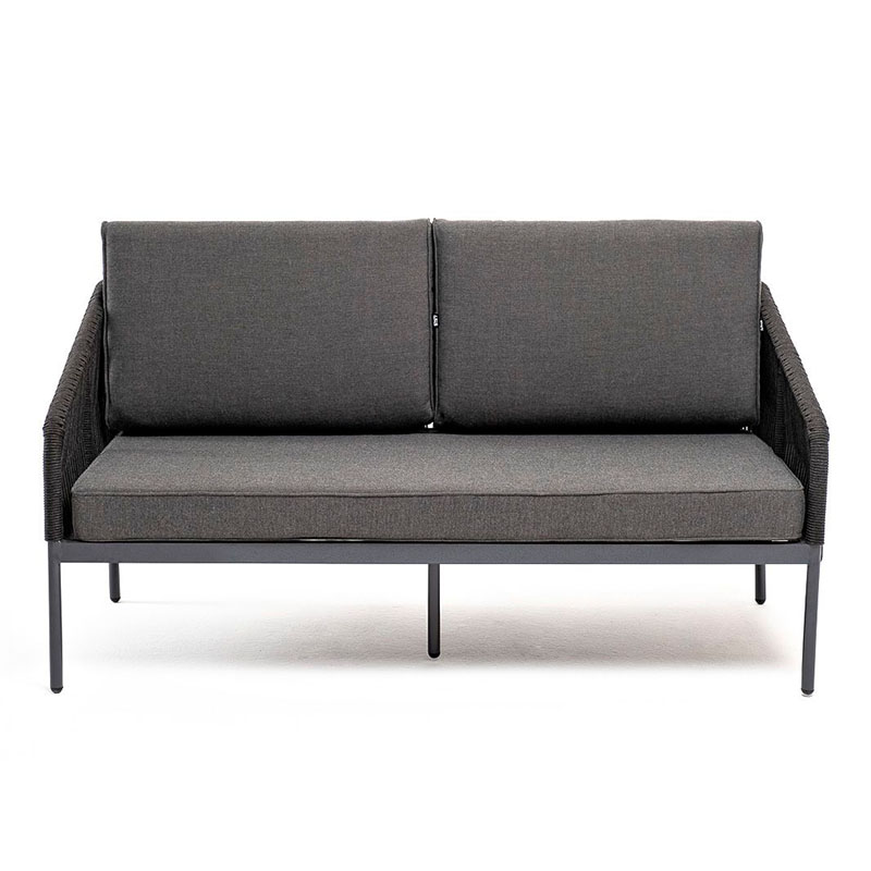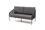 "Канны" диван 2-местный плетеный из роупа, каркас алюминий темно-серый (RAL7024) муар, роуп темно-серый круглый, ткань темно-серая 027, выс. посадки 45