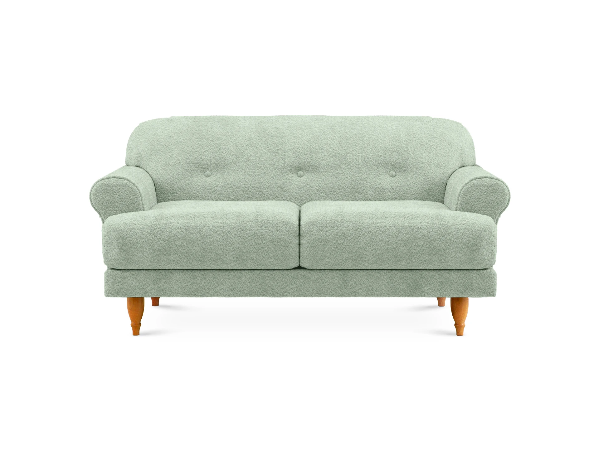 Запросить индивидуальное предложениеДвухместный диван Italia на деревянных ножках - модель классического европейского дизайна. Прямоугольное сиденье, образованное двумя подушками, обеспечивает комфортную посадку. Спинка с закругленными краями делает изделие гармоничным и плавным. Деревянные круглые ножки с фигурной обработкой создают ощущение невесомости и легкости, диван словно «парит» в пространстве. Невысокие подлокотники закруглены наружу, изюминку их формы по достоинству можно оценить при отдыхе лежа. Спинка украшена пуговицами стяжек – черта стилистики ретро.