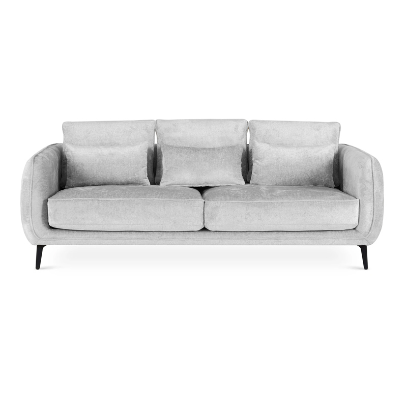 За устойчивость отвечают металлические опоры высотой 150 мм, окрашенные эмалью. Диван укомплектован шестью подушками, которые входят. Имеют силиконовые подпятники, поэтому не оставят «следов» на напольном покрытии. Ножки смотрятся изящно. Благодаря им, легко делать уборку под основанием дивана.