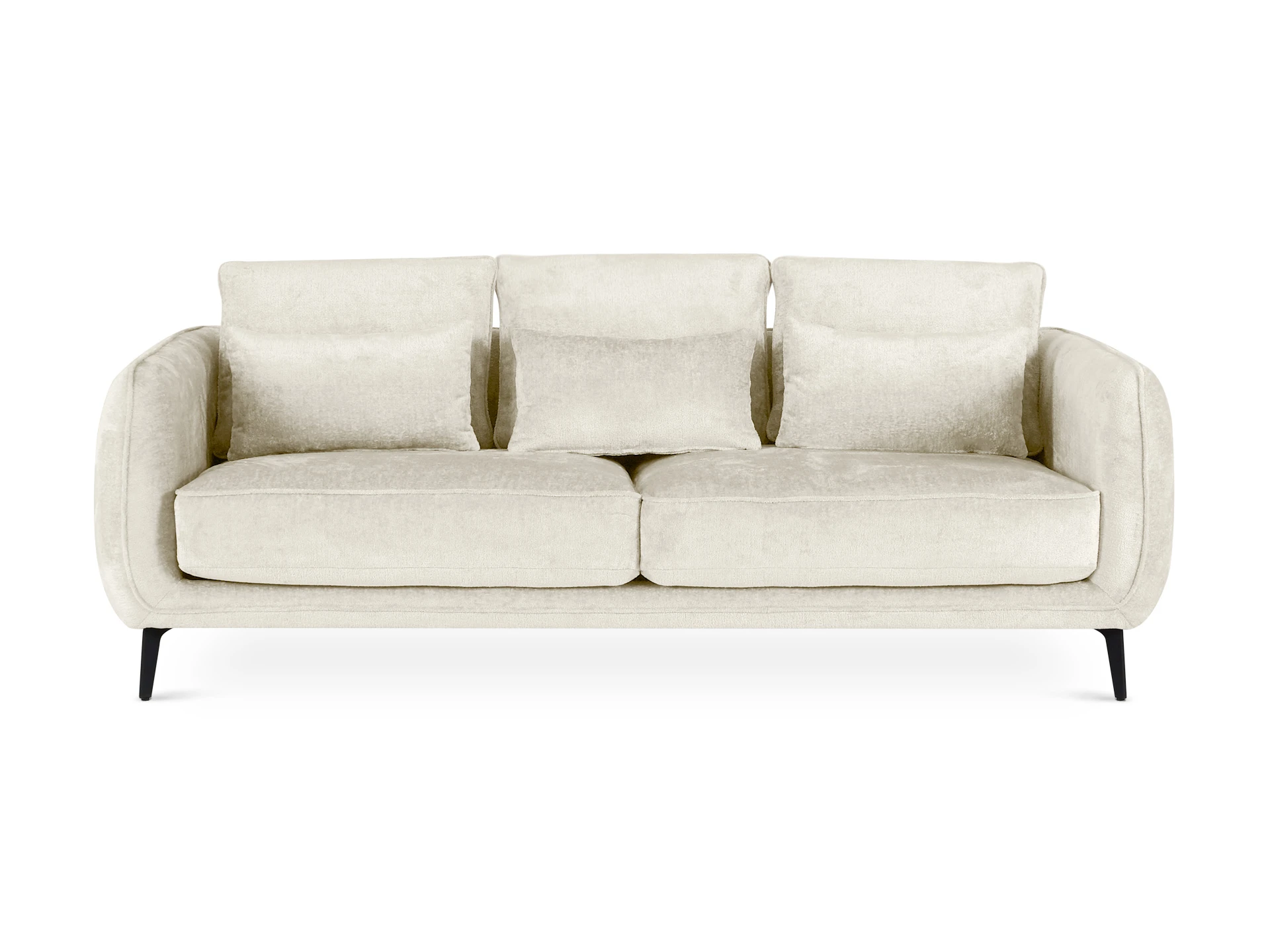 За устойчивость отвечают металлические опоры высотой 150 мм, окрашенные эмалью. Диван укомплектован шестью подушками, которые входят. Имеют силиконовые подпятники, поэтому не оставят «следов» на напольном покрытии. Ножки смотрятся изящно. Благодаря им, легко делать уборку под основанием дивана.